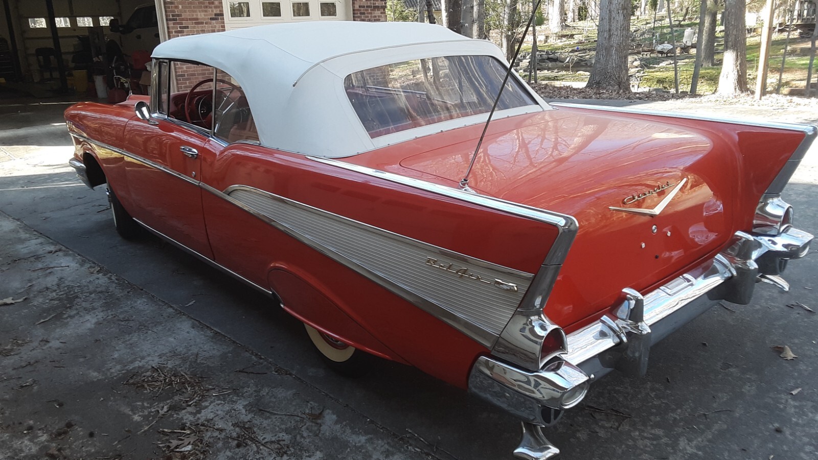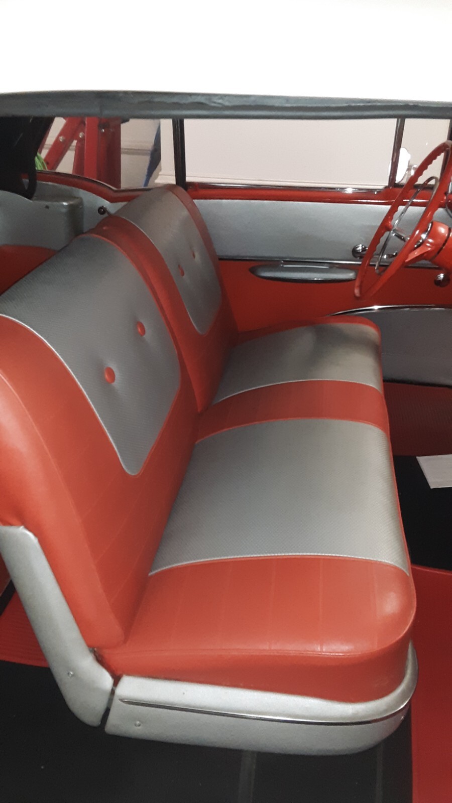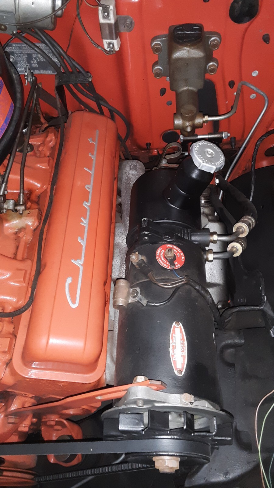 Runs good. Has been restored with NOS parts to make it look original. Even the hard to reach air vent couplings under the front fenders have been replaced. Power steering works to make this a nice driver. Extras are front and rear bumper guards, front bumper bullets, rear mounted antenna, side view mirror, finder skirts, wheel spinners, power top, padded dash