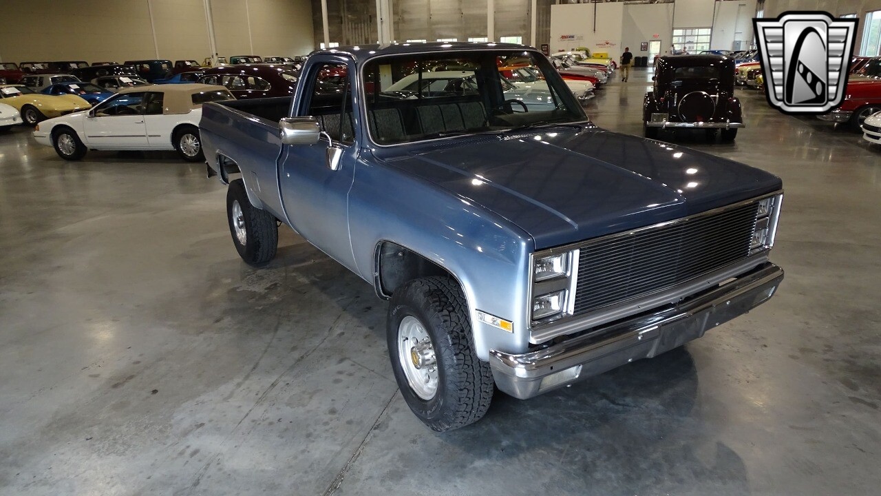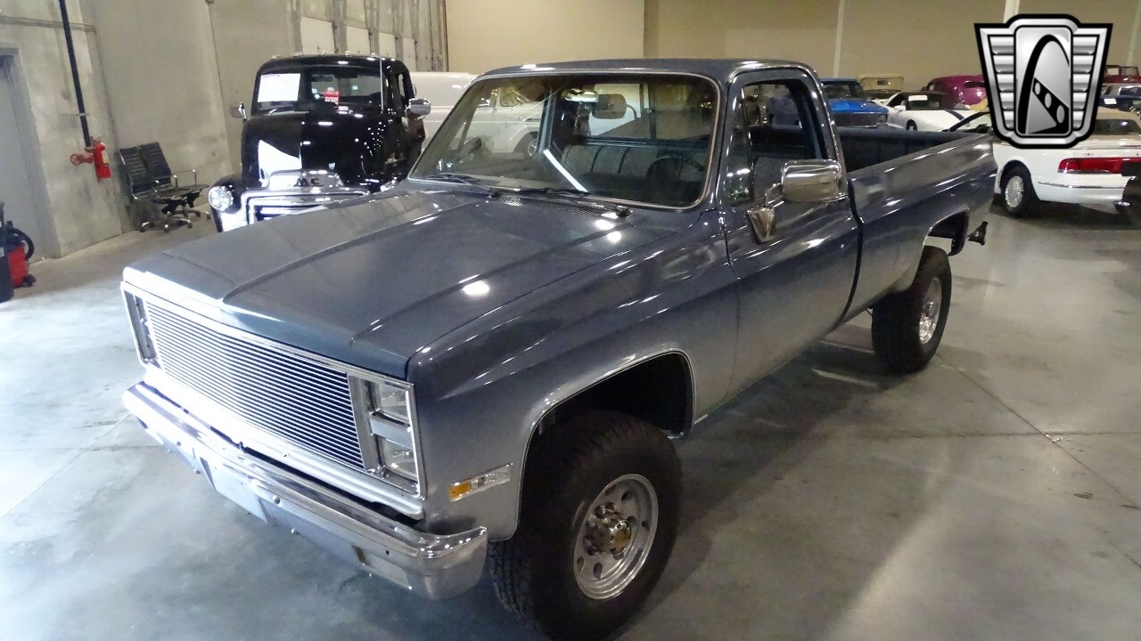Step into the past with this classic 1985 Chevrolet C/K K10. This vintage beauty is a standout with its striking blue exterior, complemented by a sleek black interior. The color combination is sure to turn heads and make a statement wherever you go.