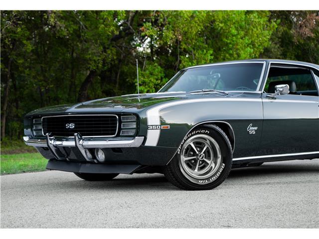 1969 Chevrolet Camaro RS/SS, #’s matching, original born with driveline, Very well documented! Has the Original Matching # 350 V8 Engine the car was born with, car comes with The 4-speed Muncie that is vin # matched to this car, however it currently has a 5 speed manual Tremec Transmission installed, it underwent a meticulous frame off rotisserie restoration, Original paperwork Includes protect-o-plate, invoice, order form, stock # decal and maintenance receipts by the original dealer, Beautiful Paint, The paint has been block sanded and polished to a mirror finish, The hockey stick stripe is painted to correct dimensions, has all new glass with the correct markings. All the weather stripping- window felts and gaskets have been replaced. All of the chrome and trim were replaced including stainless moldings, emblems etc, Features include the Rally Sport hideaway lights, relocated reverse lights, spoilers and exterior trim group, has reproduction Wide Oval tires with new SS wheels, Beautiful interior with the deluxe package, molded armrest door panels and rosewood trim across the dash and console. It also has the full gauge package with tachometer, gauges in the console and a clock. It still has an original AM radio, all of the Interior lights work. The engine compartment is factory correct down to the right fuel filter, smog equipment, Delco battery topper, spring clamp cables, GM hoses and clamps. The manifolds, valve covers, air cleaner are factory Stock, The motor is fresh looking with the Chevy orange paint, present are assembly stamps on the firewall, under hood insulation, washer bottle etc. The vacuum system for the hidden headlights looks to be all new. Has power brakes. As said before The 350 motor is vin # matching to the car, The trunk compartment looks very nice, The spatter finish looks great. Has a rubber mat that fits really well. The spare tire and rim are new and matches what's on the car. New correct jack, The bottom of the trunk lid and jamb look great , The undercarriage looks great and It is detailed to factory specs. The front suspension is completely rebuilt, proper finishes were used, Has all new correct disc brakes in front, Chevy orange overspray was correctly applied to the bell housing, New starter, the Driveshaft has assembly line markings, The rear end is original code BS 3.31 posi. New fuel tank, Rear suspension was restored and it has correct spiral shocks front and back. New correct exhaust system with transverse muffler. All new brake system including e-brake and brake lines. The body is very straight, the interior looks amazing (as seen in pics) the engine bay looks great (as seen in pics) the undercarriage looks great, This is the REAL DEAL with genuine documentation and again original Driveline, This is hard to find Camaro especially with such desirable equipment. OPTIONS AND ACCESSORIES,