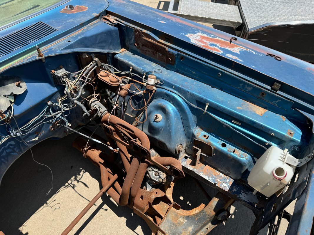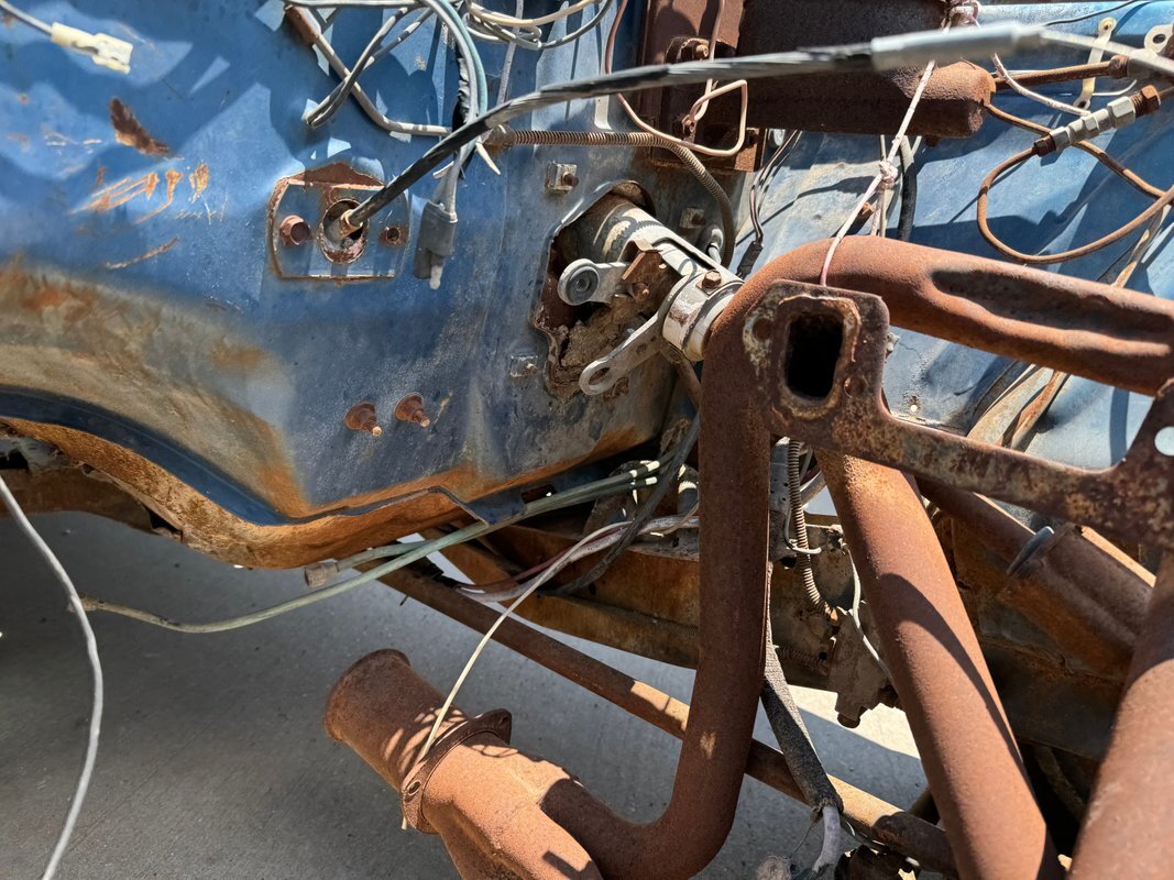 -Set up for a small block 4 speed, does not have engine or trans but has 8 3/4 rear end