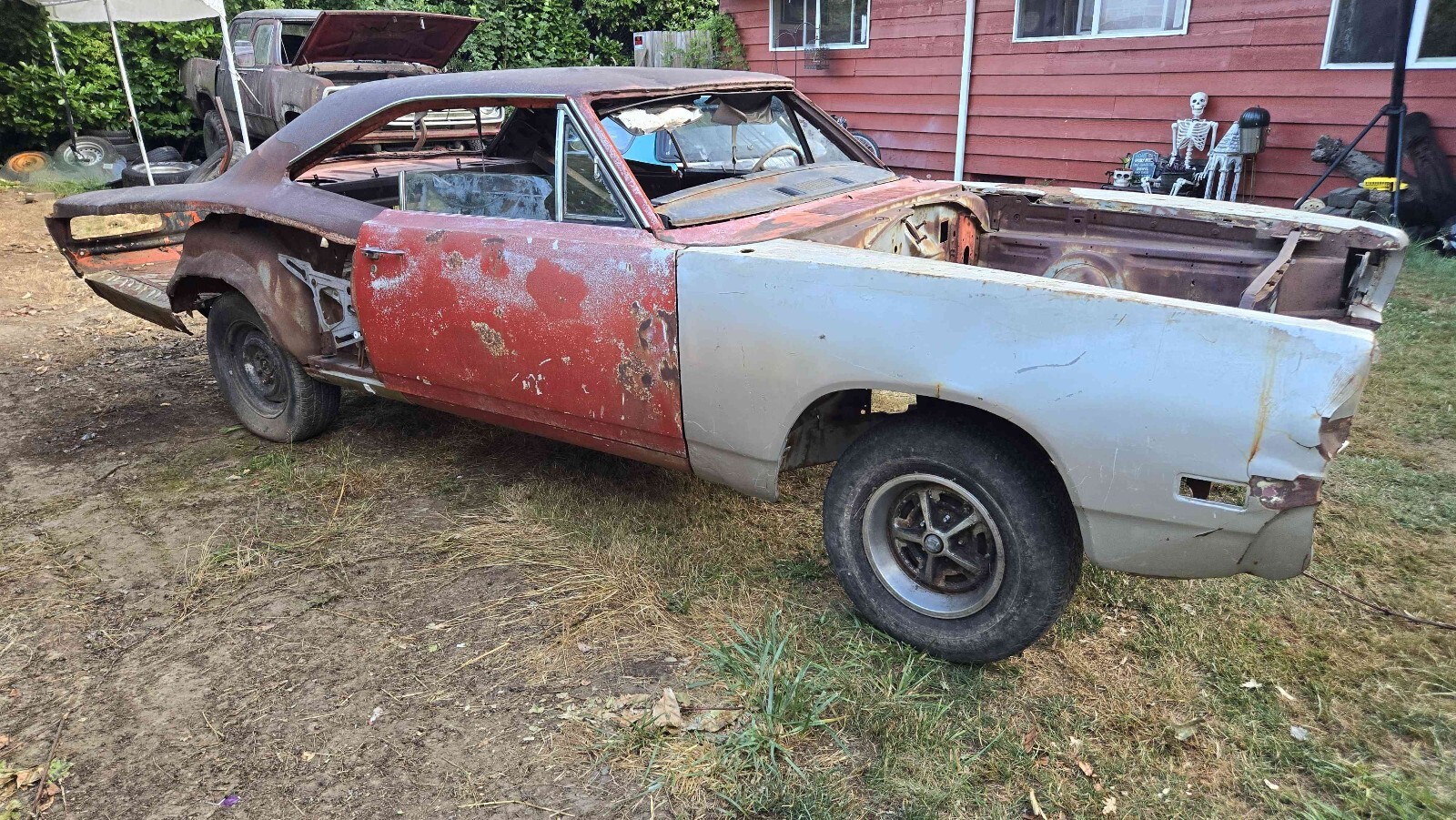 1970 dodge superbee project car. this is a real coded V-code 440 six pack N96 air grabber hood 4 speed car, factory ev2 hemi orange exterior with black interior, bucket seats and no console. The car unfortunately Spent it's life on the east coast and was parted decades ago. The rear frame rails have been replaced to make it a roller but needs finishing. front fenders are incorrect and from a 69 model. Rear window not pictured but is included. Has correct six pack k-frame, dash with cluster, steering column and 4 speed pedals, missing front and rear seats. Vehicle has its dash vin, door tag, fender tag, front and rear body numbers and clear oregon title in my name. Rolls, steers and ready for transport. Front wheels are not included in the sale but I will include rollers to get the vehicle onto a transport trailer. This vehicle is extremely rare and well worth restoring. Could possibly assist with transport depending on distance. Please feel free to ask any questions, thankyou.
