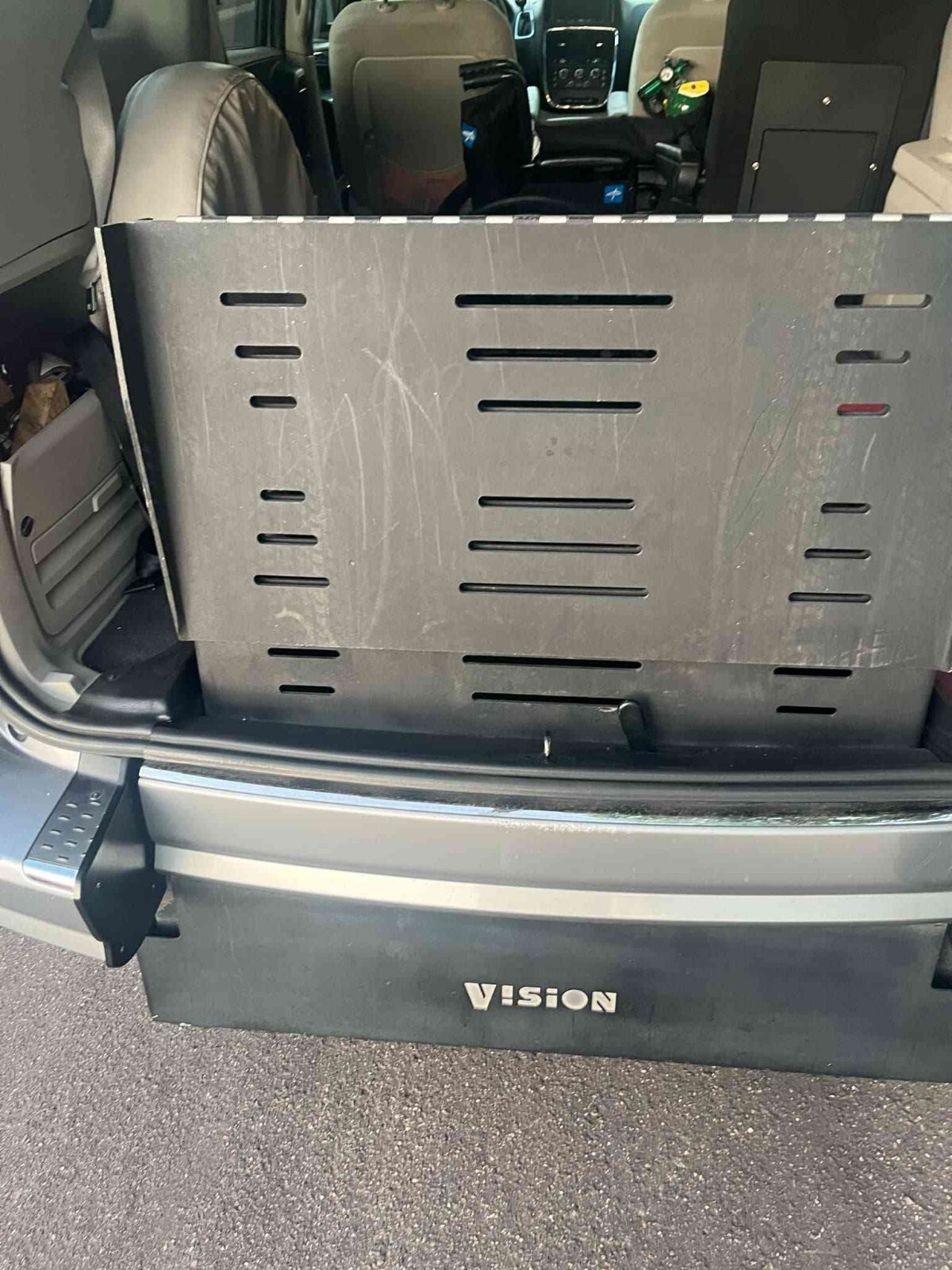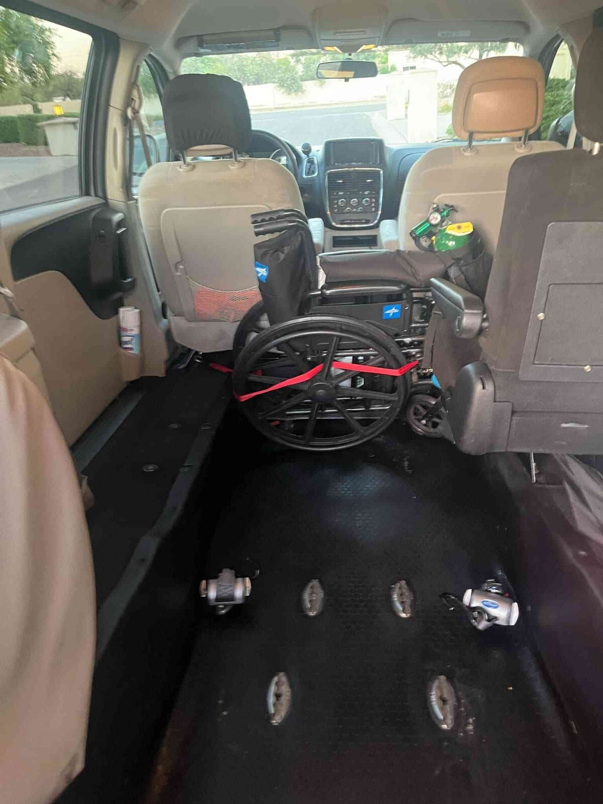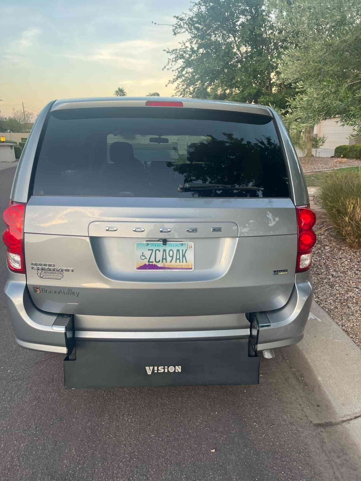 3.6 great running van. Garage kept brand new tires. AC was just rebuilt by dodge 94,402. Milege. Rear entry manual folding ramp comes with 4Q strengths to tie your wheelchair down and a lap seat belt. 7 inch blue tooth radio with back up camera.