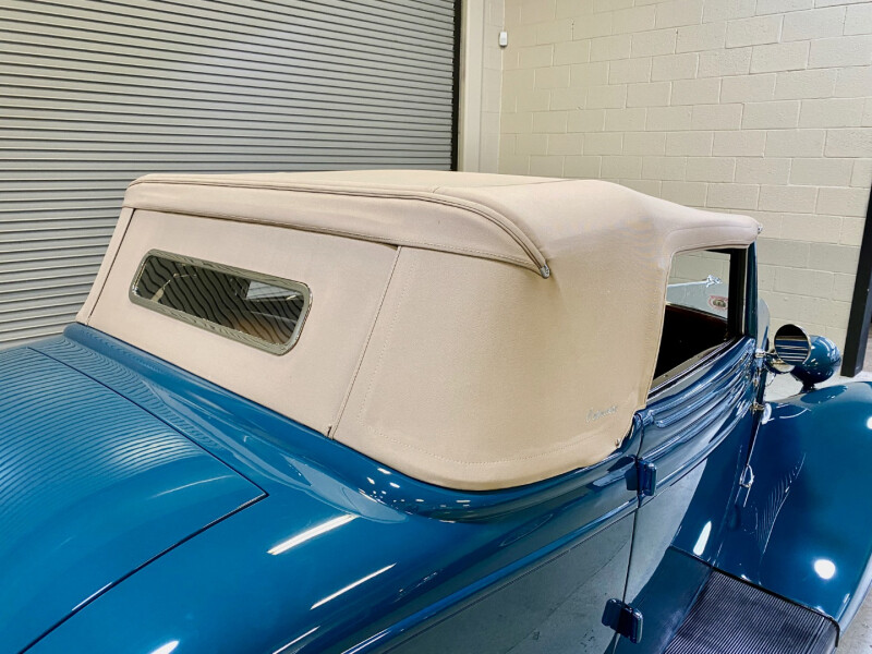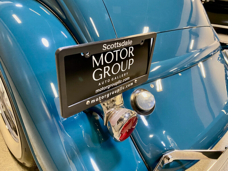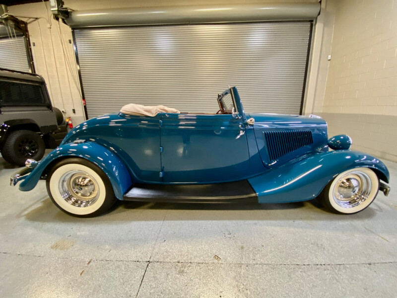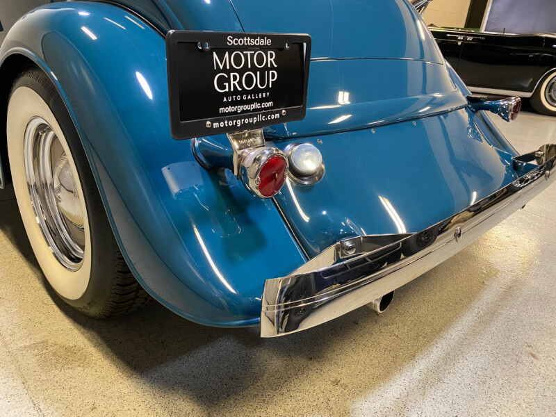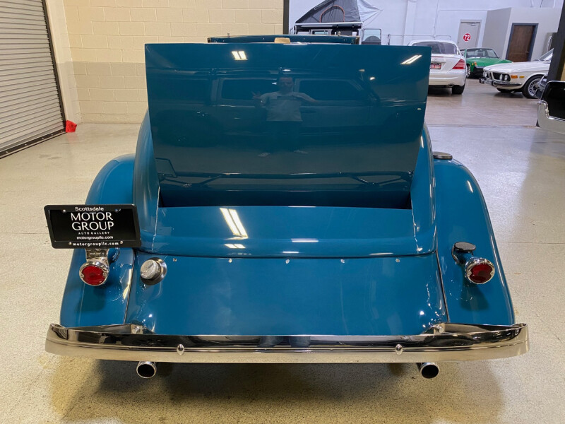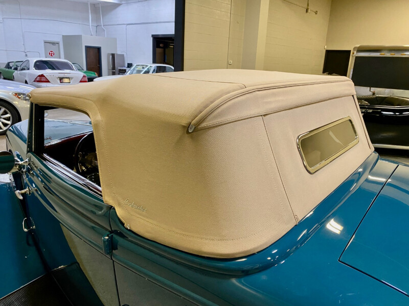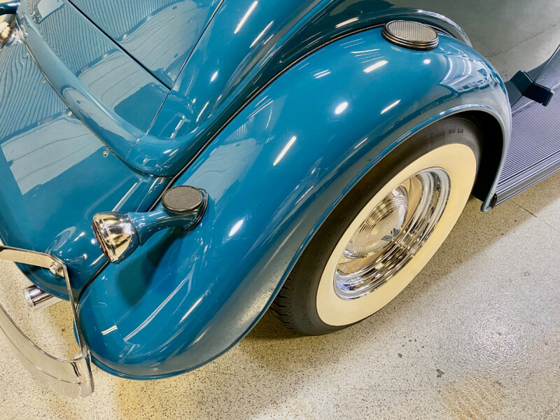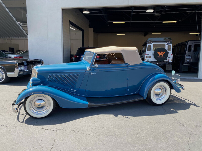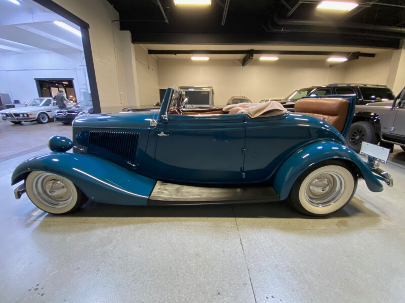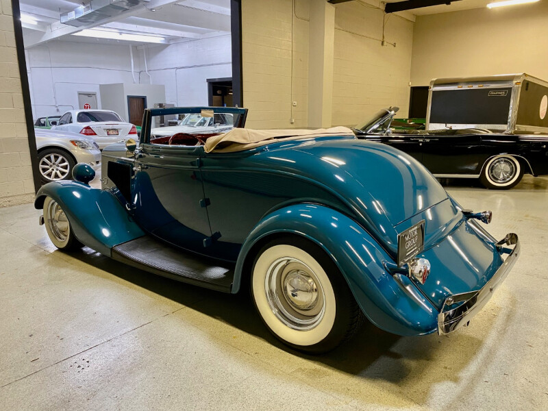 Beautiful 1934 Ford Deluxe Cabriolet, STUNNING Restoration, Show Quality. These were very limited production approximately 7852 were built in 1934, Iconic design: Its sleek, flowing style has become an icon of the era ! This car is Original frame and was an all original car purchased by the last owner from a 40 year owner in a small Minnesota town after being stored over 40 years, car was complete and still had it’s flathead V8 Engine, shipped to North Dakota and then shipped to Arizona Street Rods for it’s build. Car was completed in 2005, now showing 7,409 miles since completion. No expense spared, truly an expensive build nearly impossible to duplicate at todays prices. This car is very custom featuring Heidts independent front and rear suspension with all components chromed. Wildwood Brakes, Coker White Wall Tires mounted on Wheelsmith Smoothies, Chrome and Painted finish. Chevrolet 350 Ramjet Fuel Injected V8 engine with GM 700R Automatic Transmission. Vintage Air/ Air Conditioning. Original Steel “Henry” body, windshield chopped 2 inches and laid back 1 1/2 inches, PPG Avon Blue paint, Distressed Leather Interior and Convertible Top by Vic Kitchens (Boyd Coddington upholsterer) Classic Instrument Gauges, Original Dash, Ford Woodgrain throughout with matching 1939 Banjo Steering Wheel. Winner of several local awards including Street Rodder’s 2008 Top 100 Pick…If you see it in person, you will WANT this amazing Ford Cabriolet !