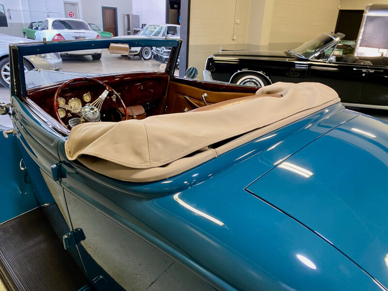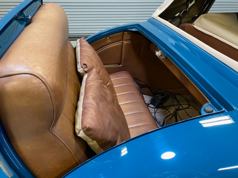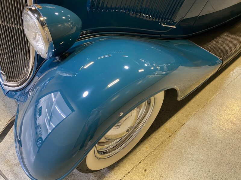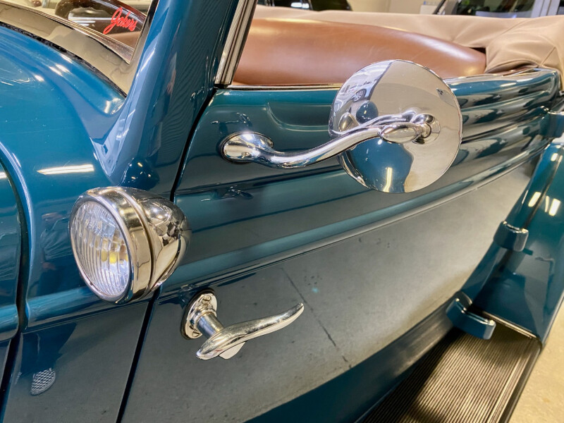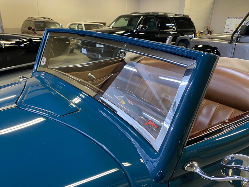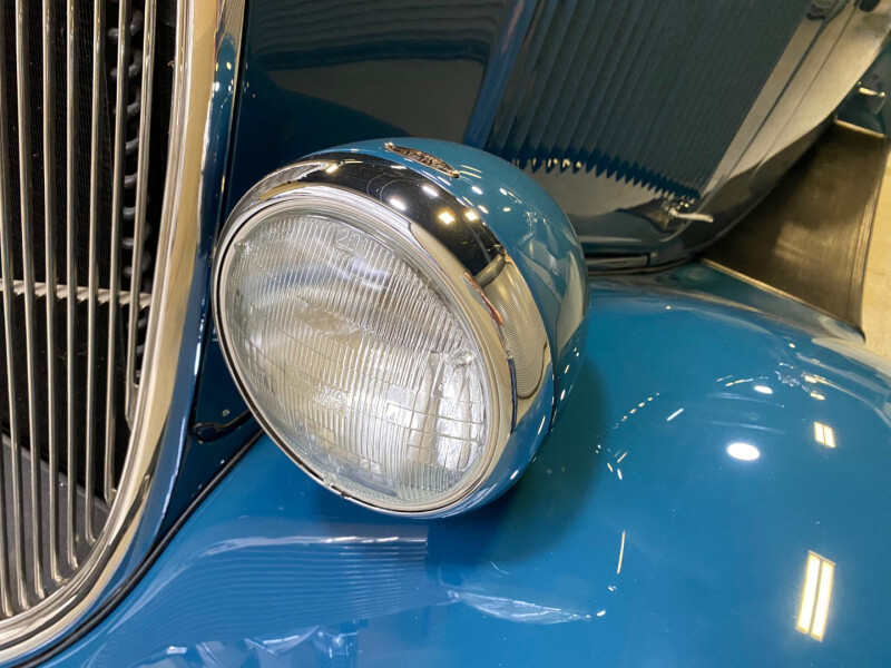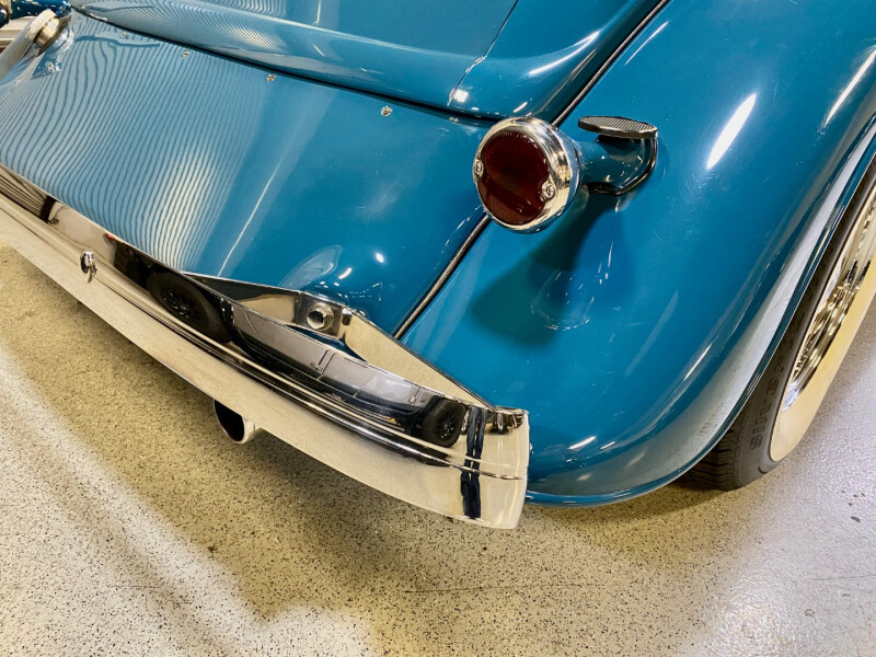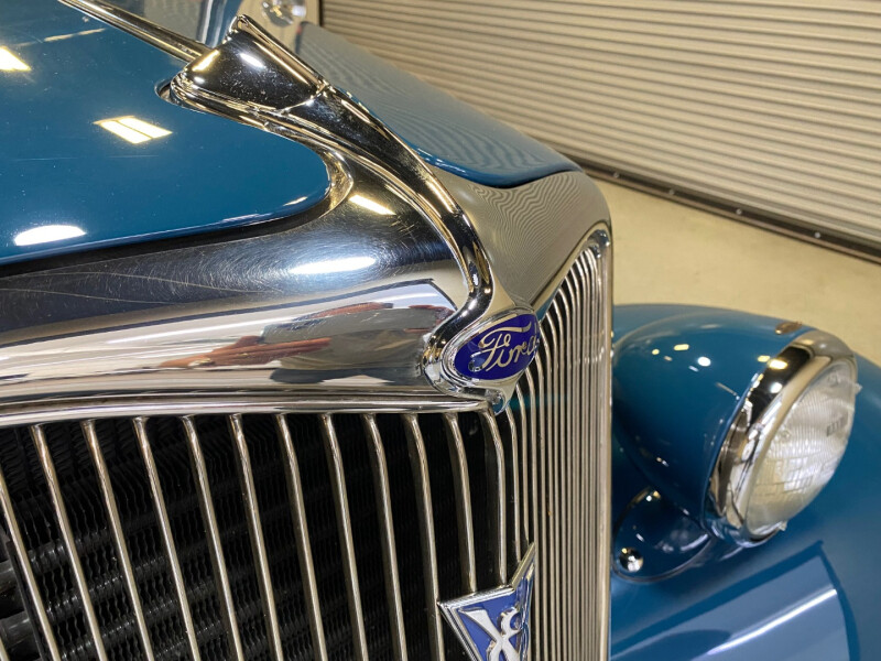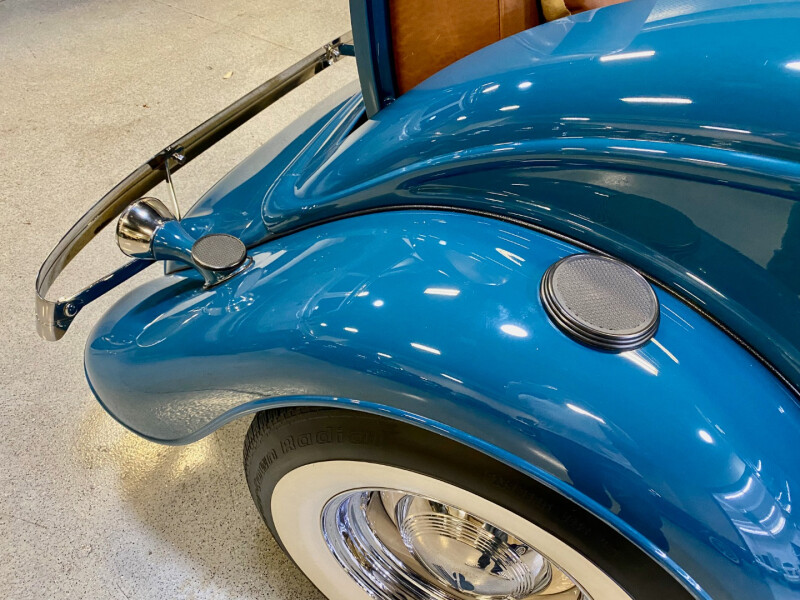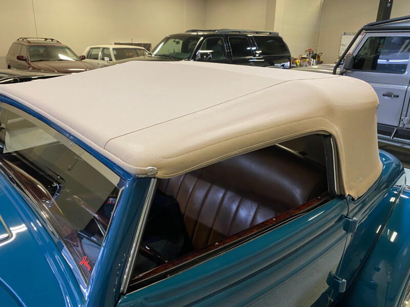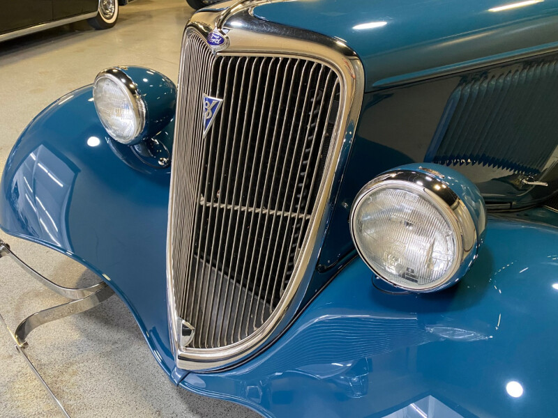 Beautiful 1934 Ford Deluxe Cabriolet, STUNNING Restoration, Show Quality. These were very limited production approximately 7852 were built in 1934, Iconic design: Its sleek, flowing style has become an icon of the era ! This car is Original frame and was an all original car purchased by the last owner from a 40 year owner in a small Minnesota town after being stored over 40 years, car was complete and still had it’s flathead V8 Engine, shipped to North Dakota and then shipped to Arizona Street Rods for it’s build. Car was completed in 2005, now showing 7,409 miles since completion. No expense spared, truly an expensive build nearly impossible to duplicate at todays prices. This car is very custom featuring Heidts independent front and rear suspension with all components chromed. Wildwood Brakes, Coker White Wall Tires mounted on Wheelsmith Smoothies, Chrome and Painted finish. Chevrolet 350 Ramjet Fuel Injected V8 engine with GM 700R Automatic Transmission. Vintage Air/ Air Conditioning. Original Steel “Henry” body, windshield chopped 2 inches and laid back 1 1/2 inches, PPG Avon Blue paint, Distressed Leather Interior and Convertible Top by Vic Kitchens (Boyd Coddington upholsterer) Classic Instrument Gauges, Original Dash, Ford Woodgrain throughout with matching 1939 Banjo Steering Wheel. Winner of several local awards including Street Rodder’s 2008 Top 100 Pick…If you see it in person, you will WANT this amazing Ford Cabriolet !