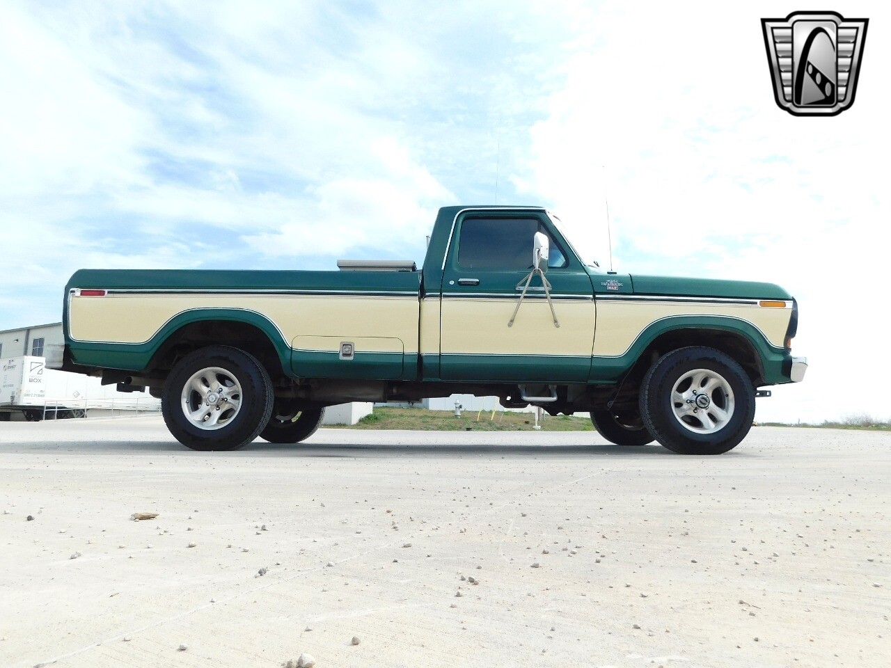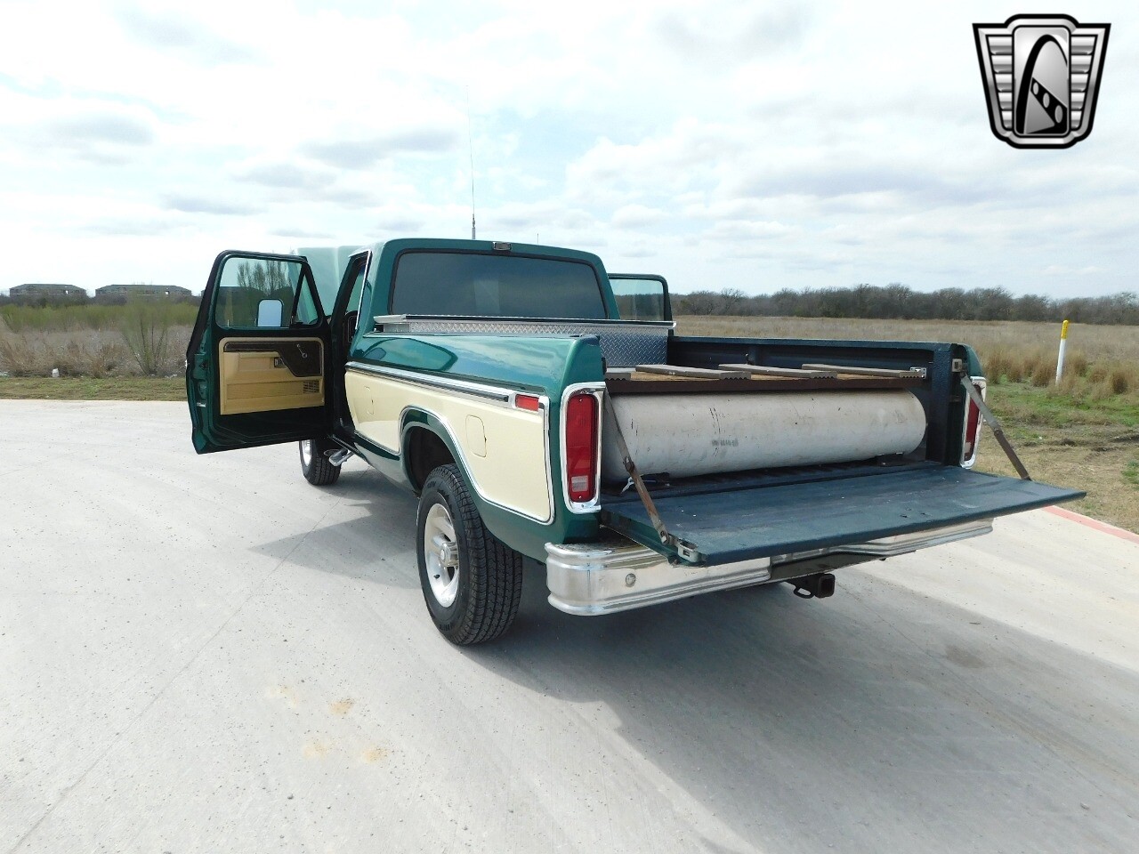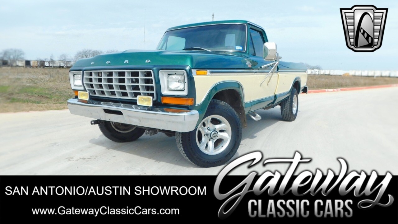 Gateway Classic Cars of San Antonio/Austin is proud to offer this one owner 1979 Ford F150. The sixth-generation Ford F-Series was introduced for the 1973 model year. Known by enthusiasts as the "Dentside," the F150 model series, which was new for the 1975 model year, was introduced to bridge the gap between the F100 and the F250. With a new paint job in 1990 with the original colors of Dark Jade Metallic and light sand, this truck still looks factory fresh. Under the hood is something you don't see every day, a 460CID V-8 that has a propane conversion. This motor was rebuilt around 12k miles ago in 2015 and received some upgrades in the form of being bored .030 over, new valve springs, Comp Cams, long tube headers with Magnaflow dual exhaust. Helping all this power get to the ground is a C6 automatic transmission that has extra clutch plates and a shift kit as well as a gear vendors over drive and four-wheel drive. With a combined total of 48 gallons of gasoline and 80 gallons of propane on board this truck is meant for the long hauls. Additional drivetrain modifications include rear suspension overload springs for those heavy loads and the upgrade to rear disc brakes. The cabin features a bench seat that was redone in 1990 and is upholstered in tan cloth along with the original dash and door panels in coordinating colors. Features include cold blowing air conditioning, an AM/FM/Cassette radio, new carpet, and a Midland CB radio. The two-spoke steering wheel with wood accents frames an 85-mph speedometer as well as gauges for fuel level, coolant temperature, battery voltage and oil pressure. Big, fun, and very clean, this Ford 4x4 is the truck you always saw on the road after it was too late. Don't miss this chance to get one in the renewed prime of its life..