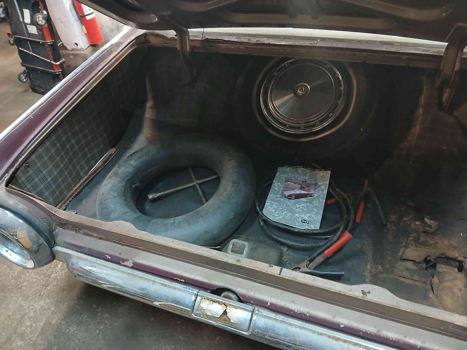Tires are from the late 60s and mid 70s but hold air. Power Steering, power brakes, power seat, swing away Steering column. Dome lights, headlights, wipers, and blower motor work. Horn does not. Transmission fluid looks good.
