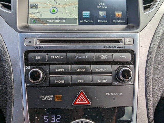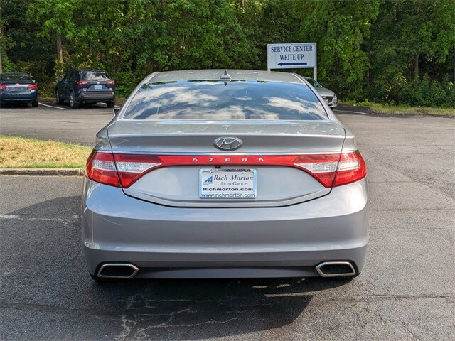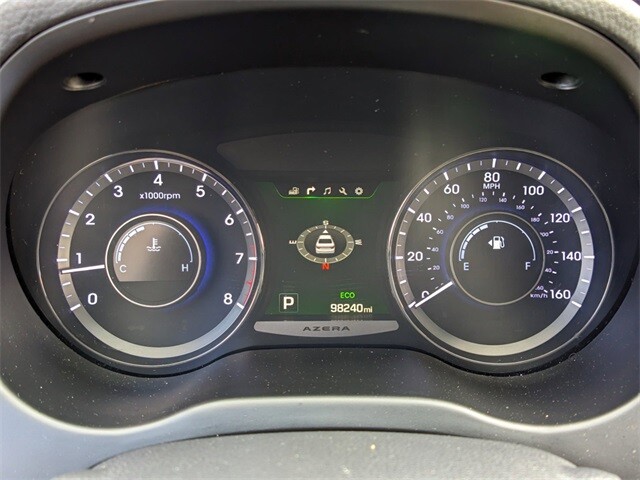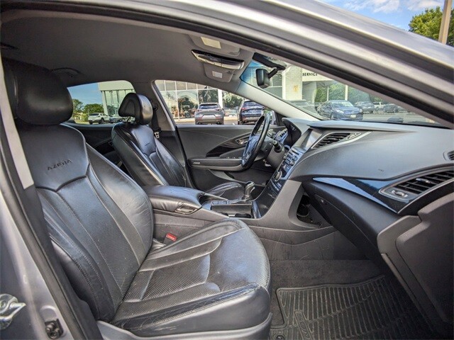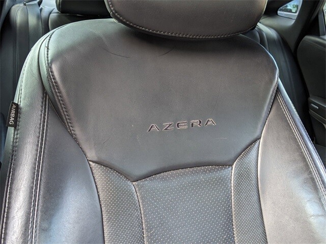 * The Hyundai Azera offers a complete performance profile delivering the comfort, power and handling that drivers value most. Azera combines a best-in-class interior space with cutting-edge interior design coming standard with a variety of premium luxury features that most competitive models only offer as options. Starting with a 12-way adjustable power driver seat featuring standard heated front and rear seats, the Azera provides plenty of entertainment and premium options for everyone such as ventilated front seats, rear side-window sunshades and a panoramic sunroof. Don't be afraid to stretch out as the Azera boasts one of the largest trunks in the sedan category with 16.3 cubic ft of space. The 3.3L V6 engine creates an effortless flow of power and surprising fuel efficiency using Gasoline Direct Injection and Dual Continuously Variable Valve Timing. At the push of a button, an innovative Active ECO feature modifies the 293-HP V6 engine and transmission controls for optimal fuel efficiency. Innovative Blue Link technology makes driving safer, easier and more fun. By keeping your car connected at all times, Blue Link can help you find a gas station or a shortcut, learn about mechanical issues, call for help and much more. The Azera's sophisticated navigation system delivers added convenience, safety and capability. Its centerpiece is the 6-inch, high-resolution color touchscreen display. The standard 550-watt Infinity Logic 7 Surround Sound audio system includes HD Radio technology with multicasting. Safety features include rear sensors providing audible warning signals when obstacles are detected as well as a rearview camera with parking guides displayed on the navigation touchscreen to increase your awareness. Source: The Manufacturer Summary