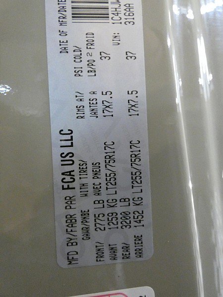 • Tires: LT255/75R17C BSW Off-Road