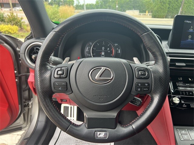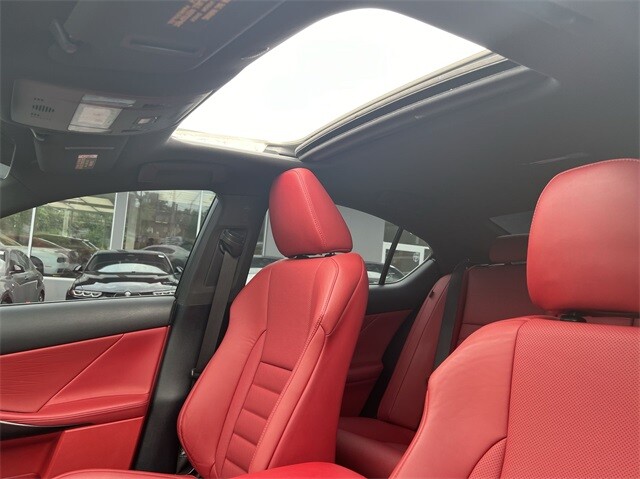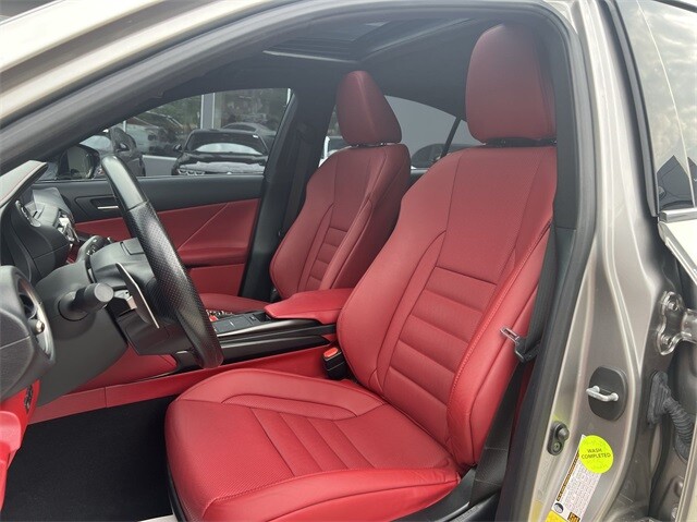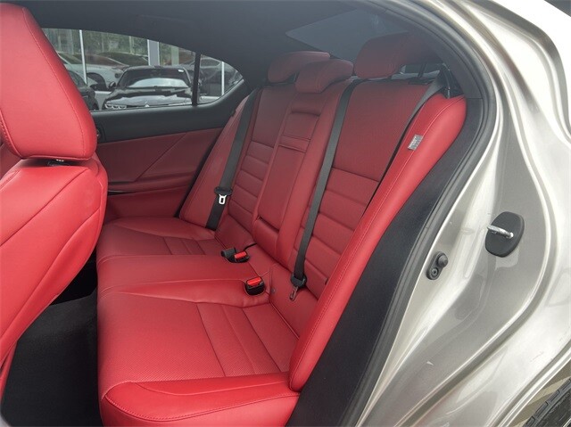 This IS 350 F SPORT is nicely equipped with AWD, Flare Red Artificial Leather, AM/FM/CD Player, Apple CarPlay/Android Auto, Auto High-beam Headlights, Auto-dimming door mirrors, Auto-dimming Rear-View mirror, Automatic temperature control, Brake assist, CD player, Compass, Electronic Stability Control, Exterior Parking Camera Rear, F SPORT NuLuxe Seat Trim, Four wheel independent suspension, Front dual zone A/C, Fully automatic headlights, Garage door transmitter: HomeLink, Heated & Ventilated F Sport Sport Seats, Heated door mirrors, Heated front seats, Heated steering wheel, Illuminated entry, Outside temperature display, Overhead console, Panic alarm, Power door mirrors, Power driver seat, Power passenger seat, Power steering, Power windows, Radio data system, Rain sensing wipers, Rear window defroster, Remote keyless entry, Security system, Speed control, Speed-sensing steering, Steering wheel mounted audio controls, Traction control, Turn signal indicator mirrors, 10 Speakers, 4-Wheel Disc Brakes, ABS brakes, Air Conditioning, Alloy wheels, AM/FM radio: SiriusXM, Bumpers: body-color, Delay-off headlights, Driver door bin, Driver vanity mirror, Dual front impact airbags, Dual front side impact airbags, Emergency communication system: Lexus Enform w/Safety Connect, Front anti-roll bar, Front Bucket Seats, Front Center Armrest, Front fog lights, Front reading lights, Knee airbag, Leather Shift Knob, Low tire pressure warning, Occupant sensing airbag, Overhead airbag, Passenger door bin, Passenger vanity mirror, Rear anti-roll bar, Rear reading lights, Rear seat center armrest, Rear side impact airbag, Speed-Sensitive Wipers, Split folding rear seat, Spoiler, Sport steering wheel, Tachometer, Telescoping steering wheel, Tilt steering wheel, Trip computer, Variably intermittent wipers, Ventilated front seats, and Wheels: 19 x 8.5J Front & 19 x 9.5J Rear.