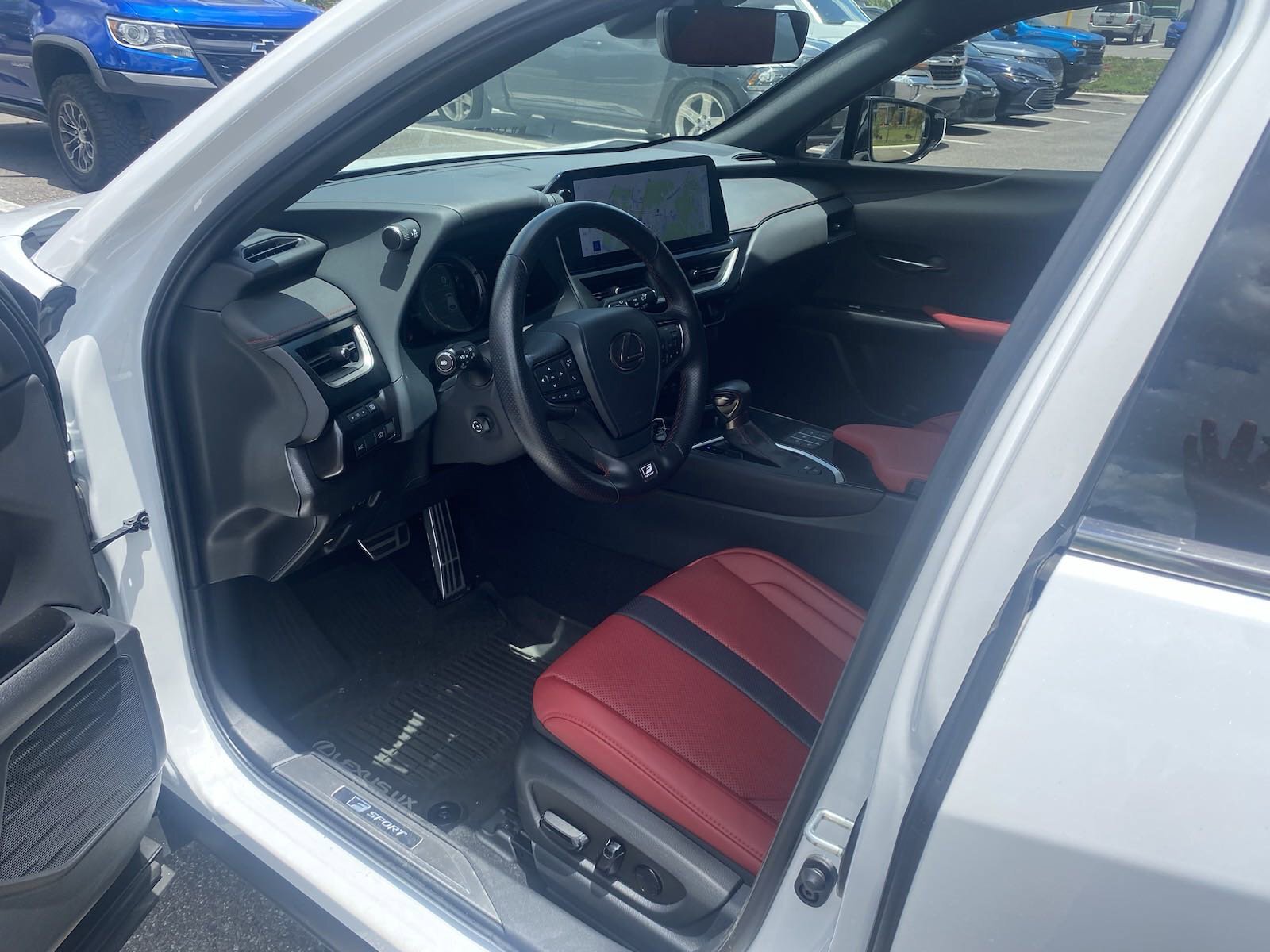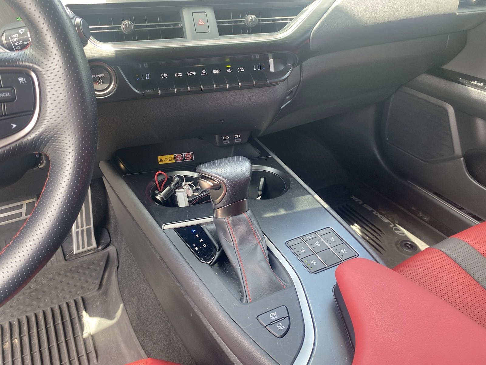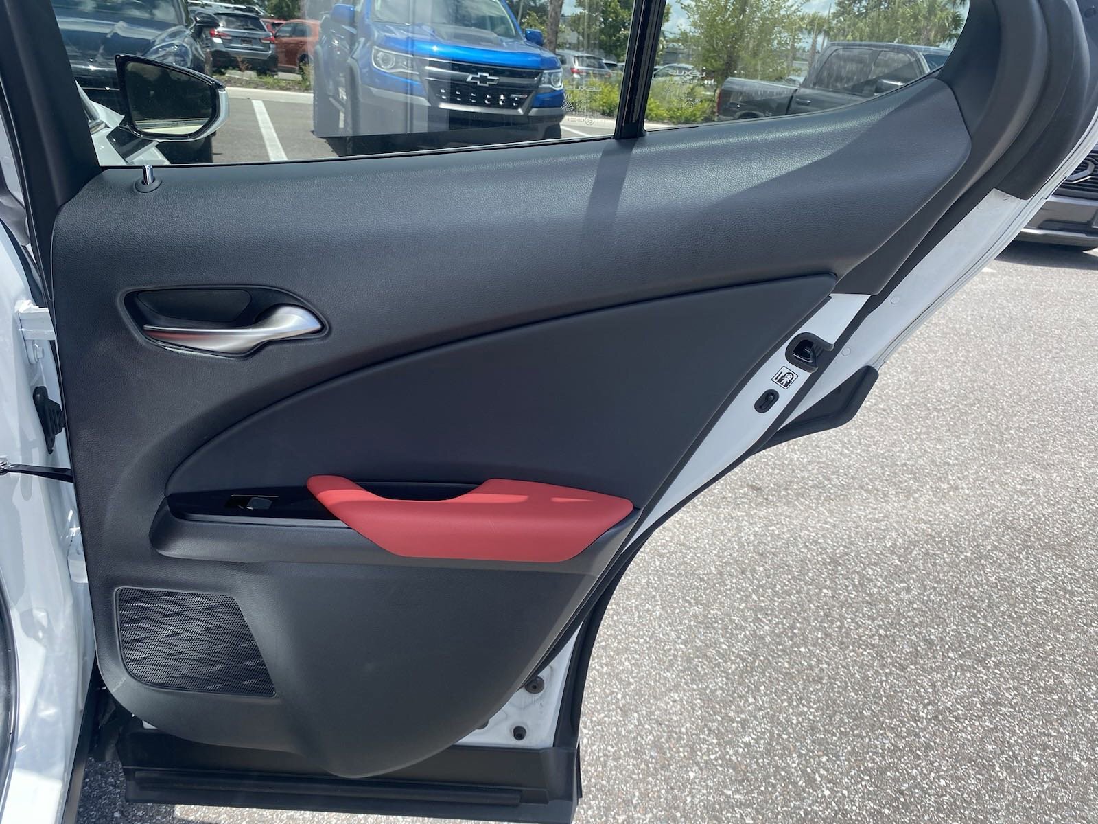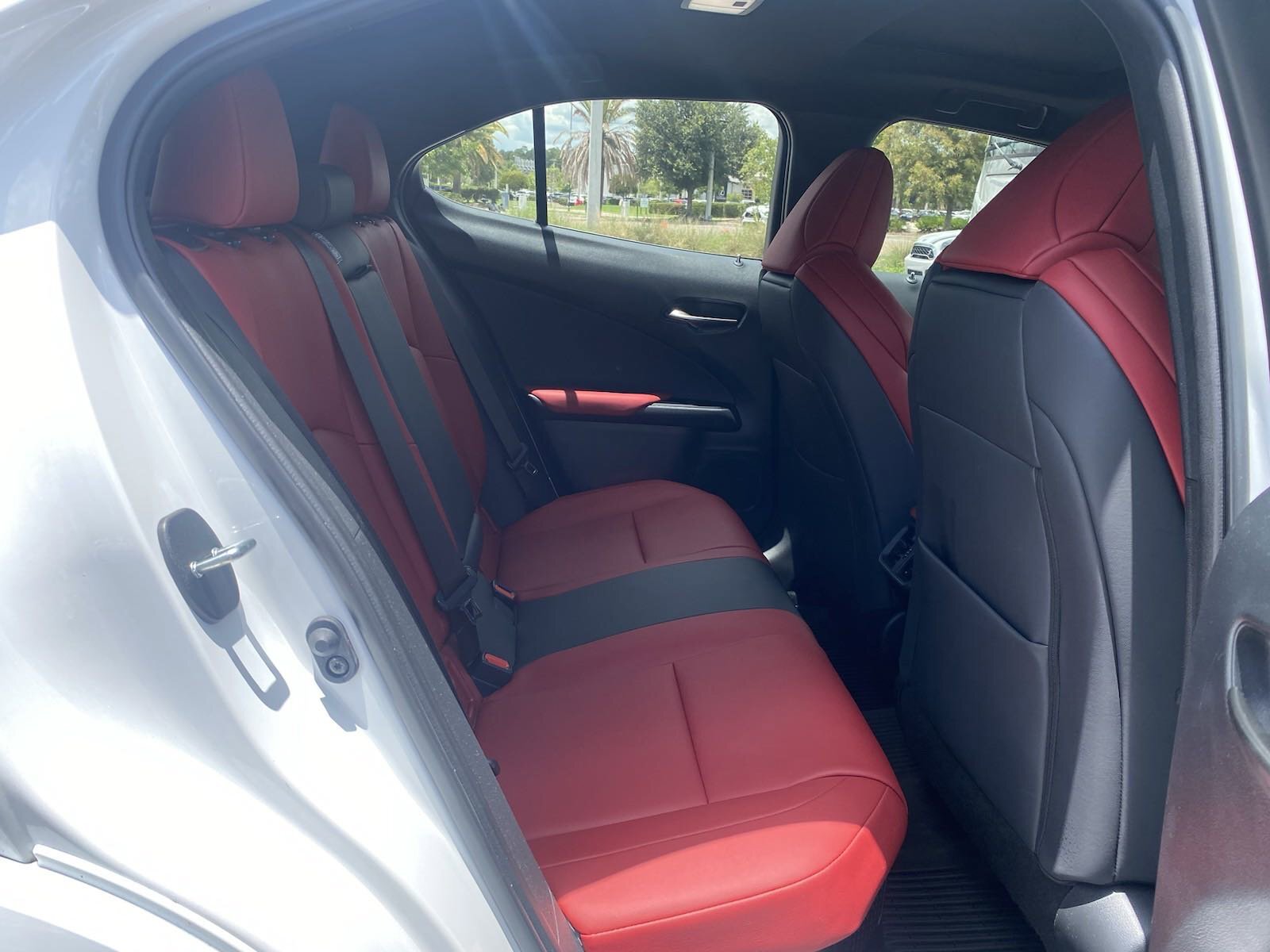 3.605 Front Axle Ratio, 4-Wheel Disc Brakes, 6 Speakers, ABS brakes, Active Sound Control, Adaptive suspension, Air Conditioning, Alloy wheels, AM/FM radio: SiriusXM, Apple CarPlay/Android Auto, Auto High-beam Headlights, Auto-dimming door mirrors, Auto-Dimming Rear-View Mirror, Auto-dimming Rear-View mirror, Automatic Headlamp Leveling, Automatic temperature control, Brake assist, Bumpers: body-color, Color-Keyed Overfenders, Compass, Delay-off headlights, Driver door bin, Driver vanity mirror, Dual front impact airbags, Dual front side impact airbags, Electronic Stability Control, Emergency communication system: Safety Connect (10-year trial), Exterior Parking Camera Rear, F SPORT Bolstered Front Bucket Seats, F SPORT Exterior Styling, F SPORT Interior Details, F SPORT NuLuxe Seat Trim, F SPORT-Tuned Suspension, Four wheel independent suspension, Front anti-roll bar, Front Bucket Seats, Front Center Armrest, Front dual zone A/C, Front fog lights, Front reading lights, Fully automatic headlights, Garage door transmitter: HomeLink, Heated & Ventilated Seats, Heated door mirrors, Heated front seats, Illuminated entry, Knee airbag, Leather Shift Knob, Leather steering wheel, LED Fog Lamps & Cornering Lamps, Lexus Premium Sound System, Low tire pressure warning, Memory seat, Occupant sensing airbag, Outside temperature display, Overhead airbag, Paint Wheel Arch Molding, Panic alarm, Passenger door bin, Passenger vanity mirror, Perf-Inspired Instrumentation w/Sliding Bezel, Power door mirrors, Power driver seat, Power moonroof, Power passenger seat, Power steering, Power Tilt & Slide Moonroof, Power windows, Radio data system, Rain Sensing Windshield Wipers, Rain sensing wipers, Rear anti-roll bar, Rear reading lights, Rear side impact airbag, Rear window defroster, Rear window wiper, Remote keyless entry, Roof rack: rails only, Roof Rails, Security system, Speed control, Speed-sensing steering, Split folding rear seat, Spoiler, Sport steering wheel, Steering wheel mounted audio controls, Tachometer, Telescoping steering wheel, Tilt steering wheel, Traction control, Trip computer, Turn signal indicator mirrors, Variably intermittent wipers, Ventilated front seats, Wheels: 18" x 7J Split 5-Spoke Dark Gray Metallic. 2023 Lexus UX 250h F SPORT Handling White AWD CVT 2.0L 16V DOHC Clean CARFAX. 41/38 City/Highway MPG