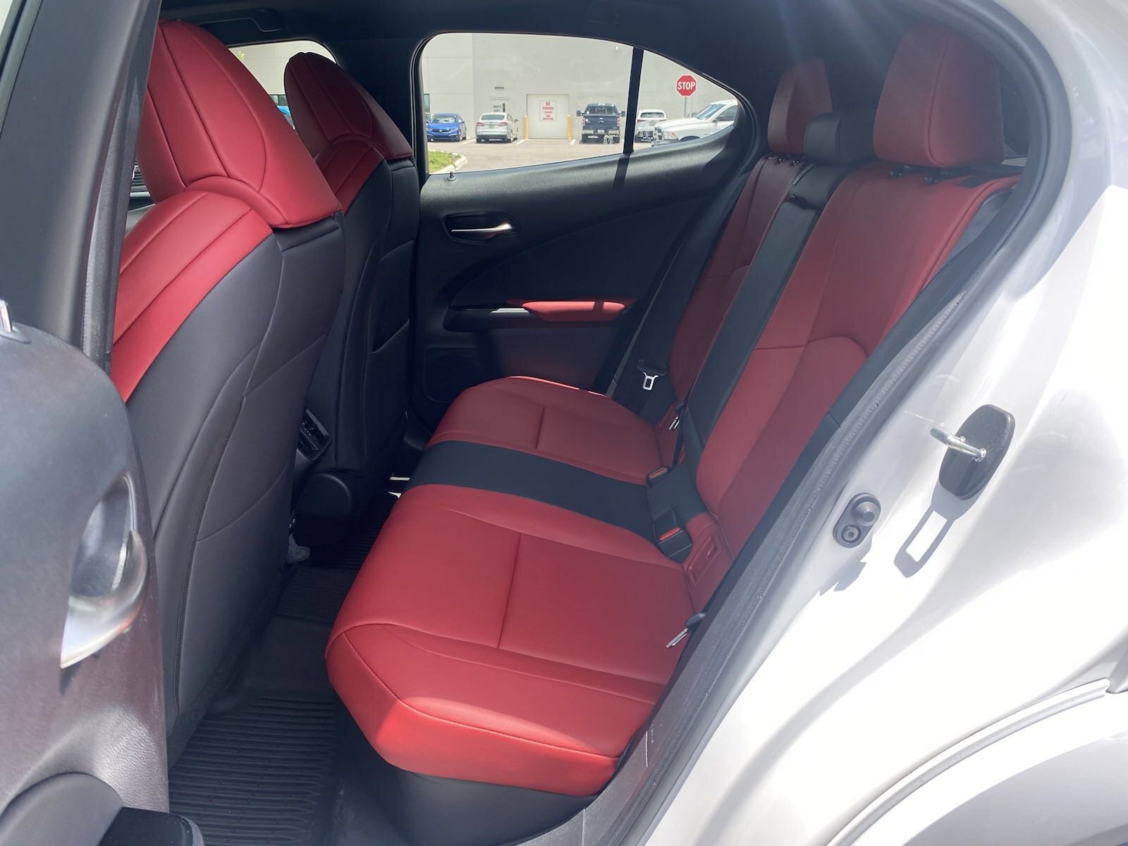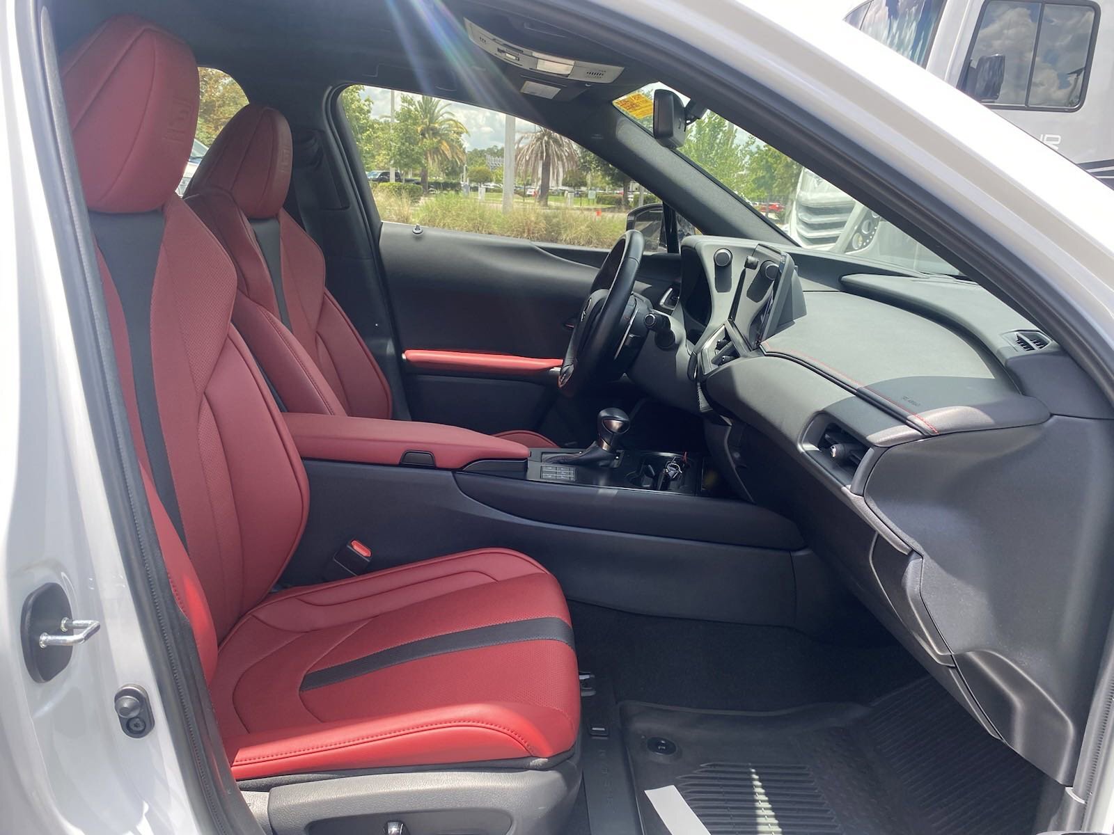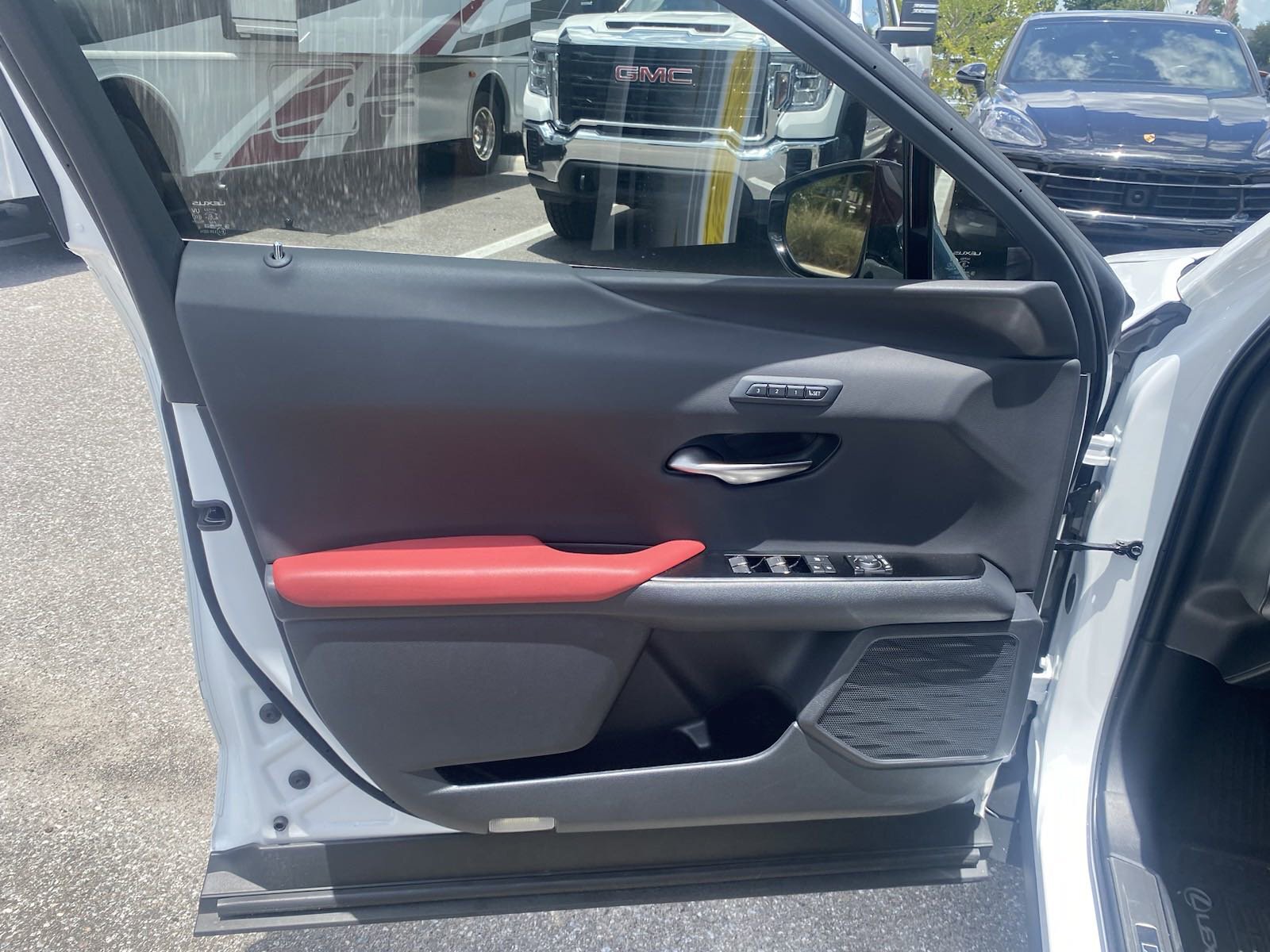 3.605 Front Axle Ratio, 4-Wheel Disc Brakes, 6 Speakers, ABS brakes, Active Sound Control, Adaptive suspension, Air Conditioning, Alloy wheels, AM/FM radio: SiriusXM, Apple CarPlay/Android Auto, Auto High-beam Headlights, Auto-dimming door mirrors, Auto-Dimming Rear-View Mirror, Auto-dimming Rear-View mirror, Automatic Headlamp Leveling, Automatic temperature control, Brake assist, Bumpers: body-color, Color-Keyed Overfenders, Compass, Delay-off headlights, Driver door bin, Driver vanity mirror, Dual front impact airbags, Dual front side impact airbags, Electronic Stability Control, Emergency communication system: Safety Connect (10-year trial), Exterior Parking Camera Rear, F SPORT Bolstered Front Bucket Seats, F SPORT Exterior Styling, F SPORT Interior Details, F SPORT NuLuxe Seat Trim, F SPORT-Tuned Suspension, Four wheel independent suspension, Front anti-roll bar, Front Bucket Seats, Front Center Armrest, Front dual zone A/C, Front fog lights, Front reading lights, Fully automatic headlights, Garage door transmitter: HomeLink, Heated & Ventilated Seats, Heated door mirrors, Heated front seats, Illuminated entry, Knee airbag, Leather Shift Knob, Leather steering wheel, LED Fog Lamps & Cornering Lamps, Lexus Premium Sound System, Low tire pressure warning, Memory seat, Occupant sensing airbag, Outside temperature display, Overhead airbag, Paint Wheel Arch Molding, Panic alarm, Passenger door bin, Passenger vanity mirror, Perf-Inspired Instrumentation w/Sliding Bezel, Power door mirrors, Power driver seat, Power moonroof, Power passenger seat, Power steering, Power Tilt & Slide Moonroof, Power windows, Radio data system, Rain Sensing Windshield Wipers, Rain sensing wipers, Rear anti-roll bar, Rear reading lights, Rear side impact airbag, Rear window defroster, Rear window wiper, Remote keyless entry, Roof rack: rails only, Roof Rails, Security system, Speed control, Speed-sensing steering, Split folding rear seat, Spoiler, Sport steering wheel, Steering wheel mounted audio controls, Tachometer, Telescoping steering wheel, Tilt steering wheel, Traction control, Trip computer, Turn signal indicator mirrors, Variably intermittent wipers, Ventilated front seats, Wheels: 18" x 7J Split 5-Spoke Dark Gray Metallic. 2023 Lexus UX 250h F SPORT Handling White AWD CVT 2.0L 16V DOHC Clean CARFAX. 41/38 City/Highway MPG