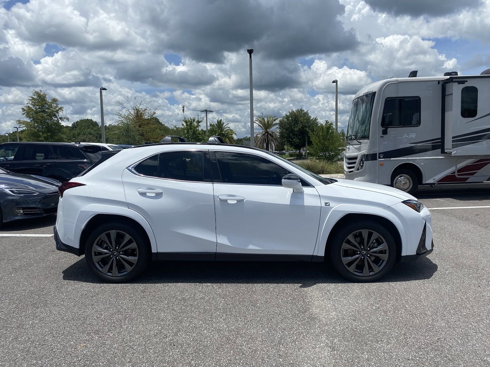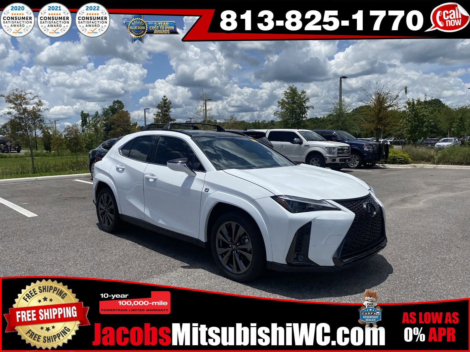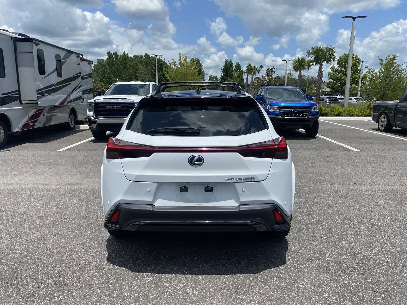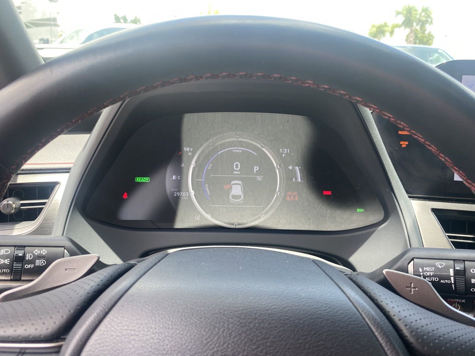 3.605 Front Axle Ratio, 4-Wheel Disc Brakes, 6 Speakers, ABS brakes, Active Sound Control, Adaptive suspension, Air Conditioning, Alloy wheels, AM/FM radio: SiriusXM, Apple CarPlay/Android Auto, Auto High-beam Headlights, Auto-dimming door mirrors, Auto-Dimming Rear-View Mirror, Auto-dimming Rear-View mirror, Automatic Headlamp Leveling, Automatic temperature control, Brake assist, Bumpers: body-color, Color-Keyed Overfenders, Compass, Delay-off headlights, Driver door bin, Driver vanity mirror, Dual front impact airbags, Dual front side impact airbags, Electronic Stability Control, Emergency communication system: Safety Connect (10-year trial), Exterior Parking Camera Rear, F SPORT Bolstered Front Bucket Seats, F SPORT Exterior Styling, F SPORT Interior Details, F SPORT NuLuxe Seat Trim, F SPORT-Tuned Suspension, Four wheel independent suspension, Front anti-roll bar, Front Bucket Seats, Front Center Armrest, Front dual zone A/C, Front fog lights, Front reading lights, Fully automatic headlights, Garage door transmitter: HomeLink, Heated & Ventilated Seats, Heated door mirrors, Heated front seats, Illuminated entry, Knee airbag, Leather Shift Knob, Leather steering wheel, LED Fog Lamps & Cornering Lamps, Lexus Premium Sound System, Low tire pressure warning, Memory seat, Occupant sensing airbag, Outside temperature display, Overhead airbag, Paint Wheel Arch Molding, Panic alarm, Passenger door bin, Passenger vanity mirror, Perf-Inspired Instrumentation w/Sliding Bezel, Power door mirrors, Power driver seat, Power moonroof, Power passenger seat, Power steering, Power Tilt & Slide Moonroof, Power windows, Radio data system, Rain Sensing Windshield Wipers, Rain sensing wipers, Rear anti-roll bar, Rear reading lights, Rear side impact airbag, Rear window defroster, Rear window wiper, Remote keyless entry, Roof rack: rails only, Roof Rails, Security system, Speed control, Speed-sensing steering, Split folding rear seat, Spoiler, Sport steering wheel, Steering wheel mounted audio controls, Tachometer, Telescoping steering wheel, Tilt steering wheel, Traction control, Trip computer, Turn signal indicator mirrors, Variably intermittent wipers, Ventilated front seats, Wheels: 18" x 7J Split 5-Spoke Dark Gray Metallic. 2023 Lexus UX 250h F SPORT Handling White AWD CVT 2.0L 16V DOHC Clean CARFAX. 41/38 City/Highway MPG