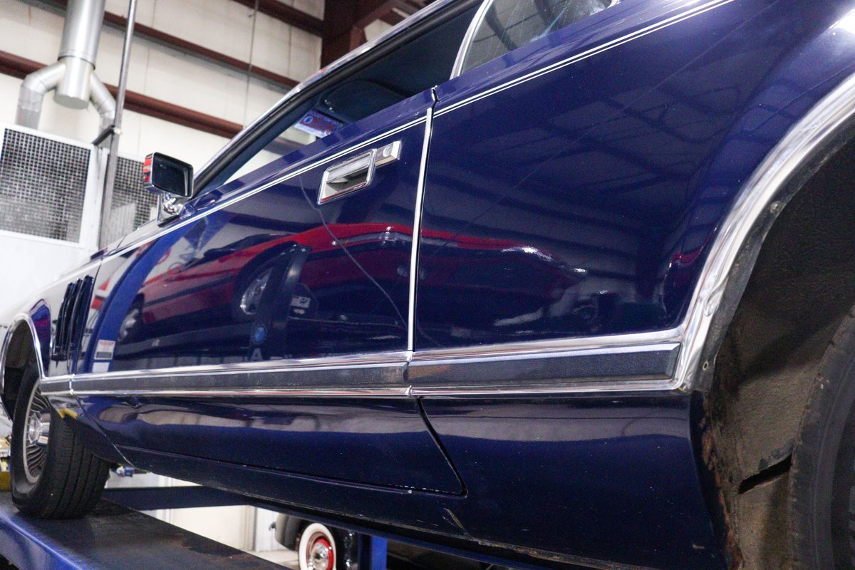 GR Auto Gallery is pleased to present a clean, low mile, 1977 Lincoln Mark V for sale. The Mark V is powered by its 460 V8 paired with an automatic transmission. These large cars look, drive and perform like pure luxury. The Continental Mark V is a personal luxury coupe that was marketed by the Lincoln division of Ford Motor Company from the 1977 to 1979 model years in North America. Following the success of the Continental Mark IV, the Mark V was derived from the same chassis architecture (shared with the Ford Thunderbird) with an extensive update to the exterior and interior.