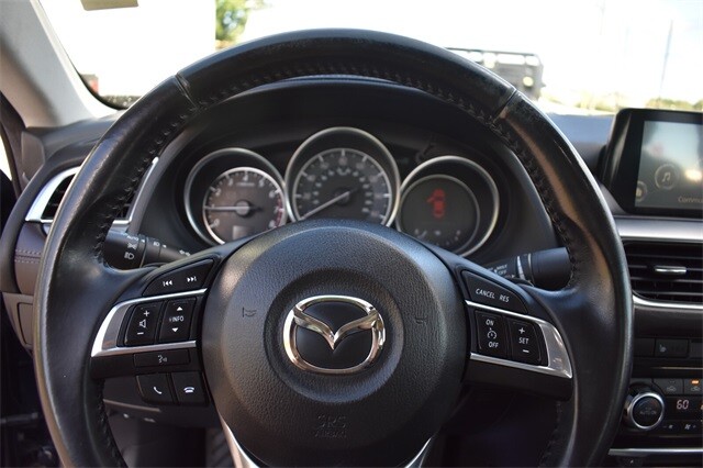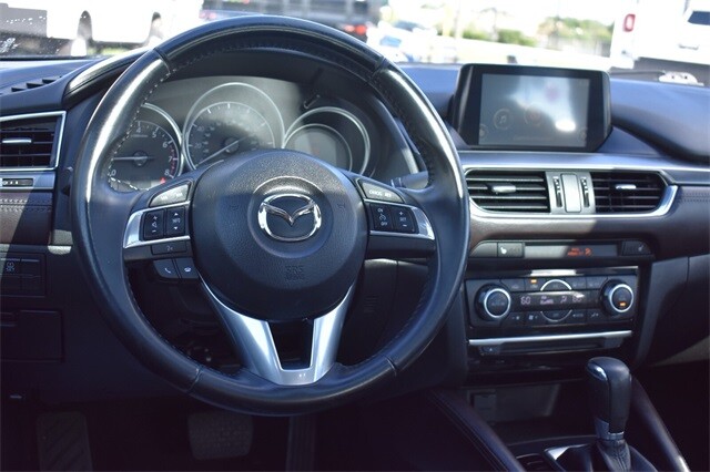 * When function and form are treated as one, engineering is elevated to an art form. The Mazda6 is the product of engineer and designer working in unison, daring to reimagine the automobile as a whole. It is the true definition of the modern sports sedan. The 2.5L SKYACTIV-G gasoline engine pushes the boundaries of innovation even further. Mazda engineers increased its torque output to 185 lb-ft, all without compromising fuel efficiency. Combine it with the ultra-responsive 6-speed SKYACTIV-MT manual or the smooth 6-speed SKYACTIV-Drive Sport automatic transmission and the result: 184 horsepower and an astounding EPA-estimated 38 MPG hwy (Up to 40 MPG hwy with Grand Touring 2.5L with AT and Technology Package). It all begins when you slide into the luxurious driver's sport seat and fire up with the push button start. With Mazda's newly available Commander Switch, you can control the available navigation system, sound system and Bluetooth phone and audio streaming conveniently from the center console. Other available features include leather trimmed upholstery and heated sports seats. The available fully integrated navigation system with a 7-inch touch-screen display features intuitive voice recognition. Crisp, immersive sound is delivered through an available 11-speaker Bose Centerpoint Surround Sound System with AudioPilot ambient noise compensation technology. With the SKYACTIV-Body, SKYACTIV-Chassis and intuitive safety technologies, Mazda6 is built to protect. Safety features include six standard airbags, should the airbags deploy standard E911 notification uses Bluetooth and your paired phone to call 911 automatically. Available Blind Spot Monitoring uses motion-detecting technology to scan your blind spots. Source: The Manufacturer Summary