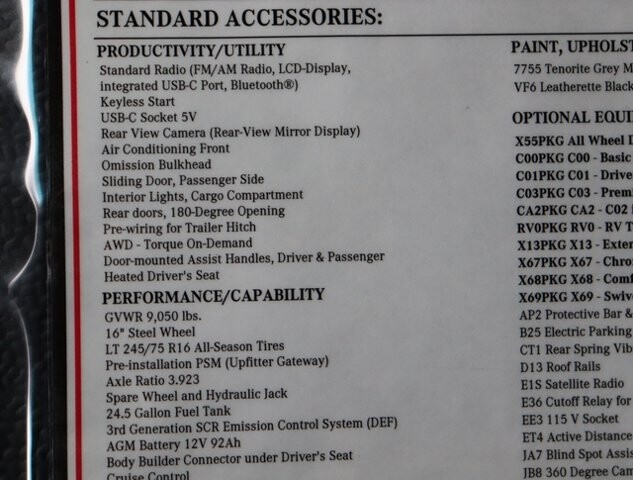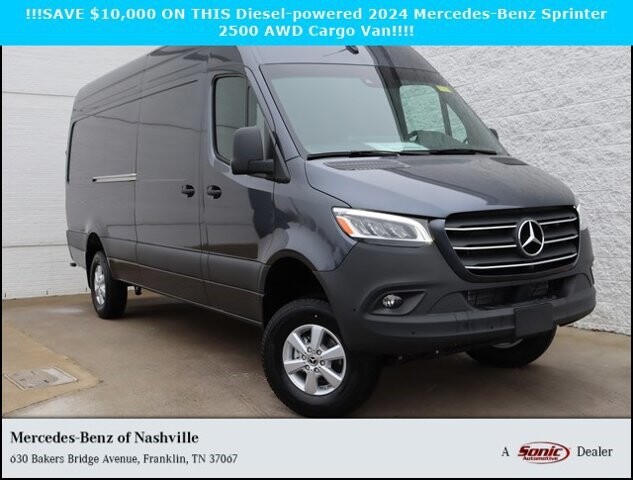 This Diesel-powered 2024 Mercedes-Benz Sprinter 2500 AWD Cargo Van with a 170-inch Wheelbase is always ready in Tenorite Gray Metallic! Powered by an impressively strong TurboCharged 2.0 Liter High-Output Diesel 4 Cylinder that offers 170hp paired with a 9 Speed Automatic transmission so you can pull with confidence. Also, enjoy composed handling in this All Wheel Drive van that represents your business well with its dynamic lines complemented by 180-degree opening rear doors, a sliding passenger-side door, a rear end wide step, and 16-inch light alloy wheels. Inside our 2500, an incredible amount of rear space is easy to upfit to meet your exact demands. Staying comfortable is easy with a heated driver's seat, air conditioning, keyless start, cruise control, and a multifunction steering wheel. Connectivity is close at hand with an easy-to-read display, USB-C port, Bluetooth®, and a great stereo. Mercedes-Benz lets you meet your daily challenges with peace of mind. Crosswind assist, tire pressure monitoring, blind spot assist, a 360-degree camera, ABS, load adaptive electronic stability program, and dual front airbags safeguard you. Engineered to bring extraordinary safety, performance, and cost-efficiency, this Sprinter 2500 Cargo Van is waiting for an owner like you! Save this Page and Call for Availability. We Know You Will Enjoy Your Test Drive Towards Ownership!Base MSRP excludes transportation and handling charges, destination charges, taxes, title, registration, preparation and documentary fees, tags, labor and installation charges, insurance, and optional equipment, products, packages and accessories. Options, model availability and actual dealer price may vary. See dealer for details, costs and terms. AMG® and 4MATIC® are registered trademarks of Mercedes-Benz Group AG. Android Auto is a trademark of Google LLC. Apple CarPlay® is a registered trademark of Apple Inc. harman/kardon® and Logic 7 are registered marks of Harman International Industries, Incorporated Burmester® is a registered trademark of Burmester Audiosysteme GmbH, Berlin, Germany Bluetooth® is a registered mark of Bluetooth SIG, Inc.