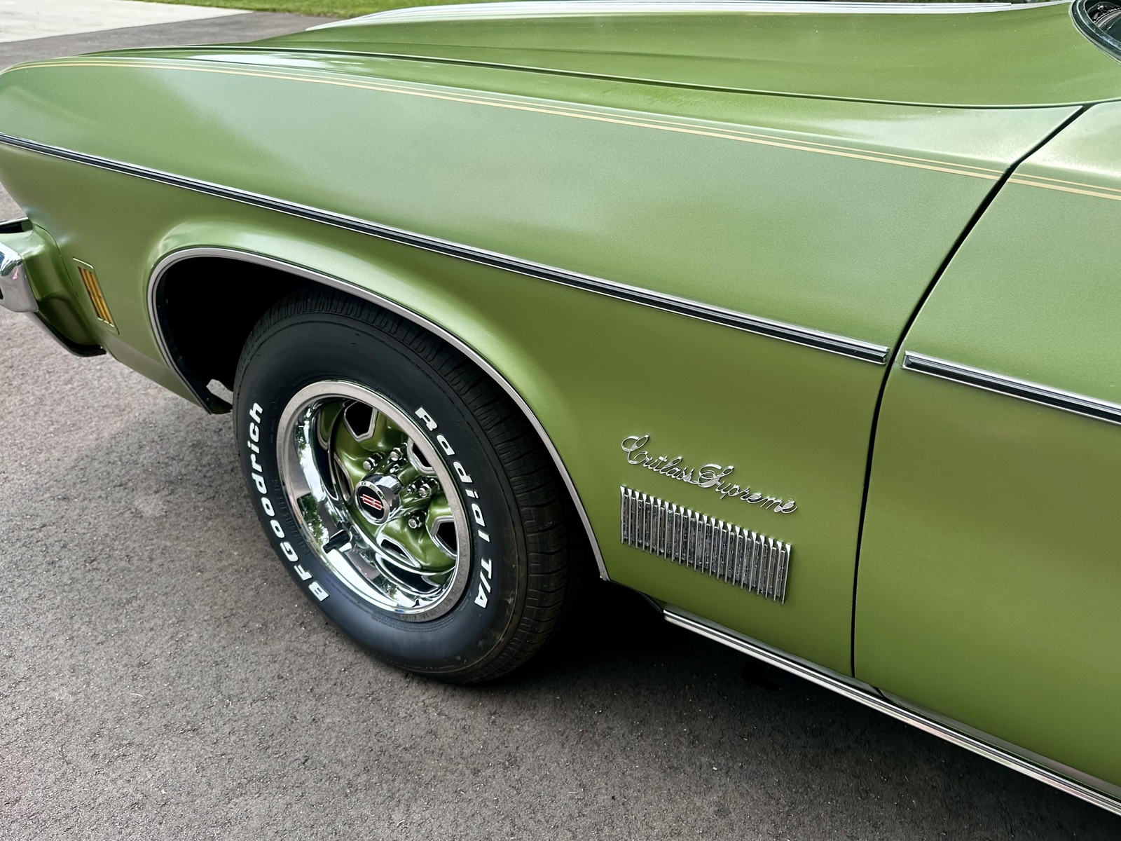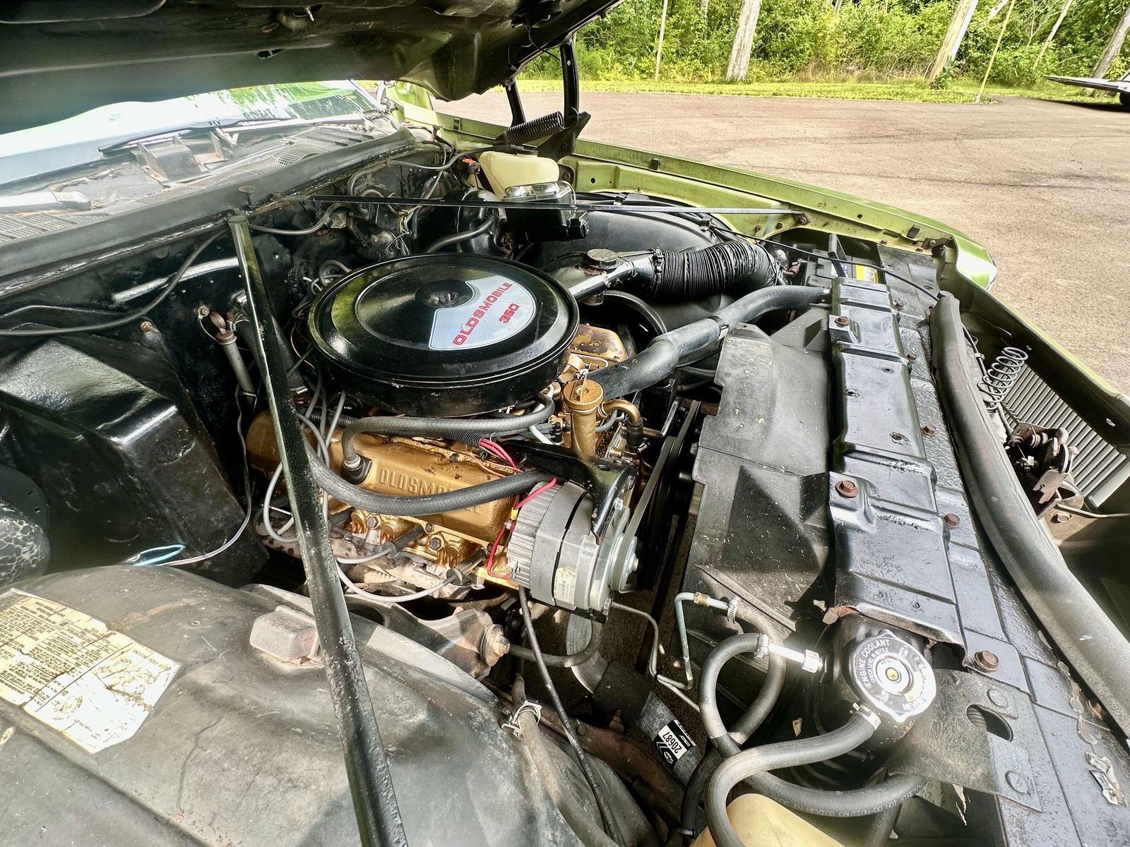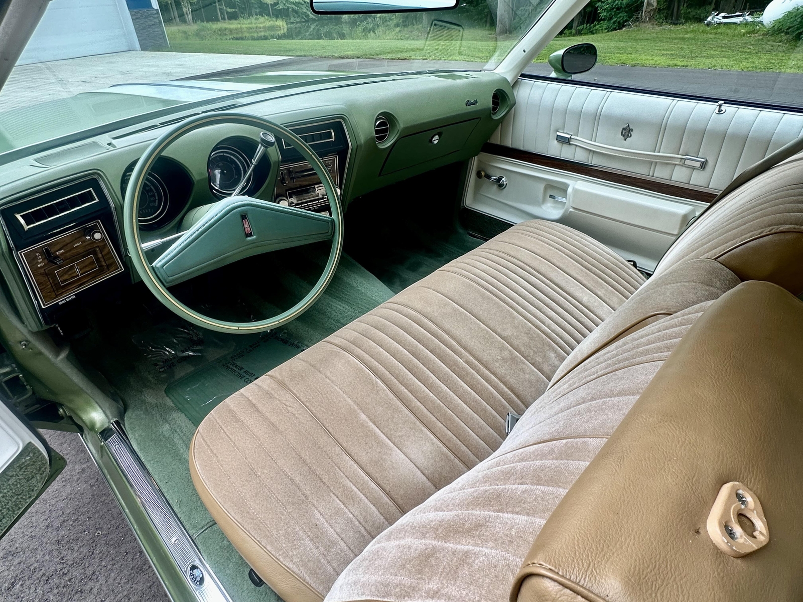 You are looking at a 1974 Cutlass Salon Supreme Hardtop Coupe. This car was bought with a sibling car to it of the same year and model. The prior owner was an enthusiast and a garage mechanic and bodyman. The car runs and drives nicely and is complete. We have a pile of receipts totaling thousands of dollars that go with the car. It has full receipts for parts for a full engine overhaul in roughly 2019. Mechanically the car runs and drives really well and is a great driver Cutlass.