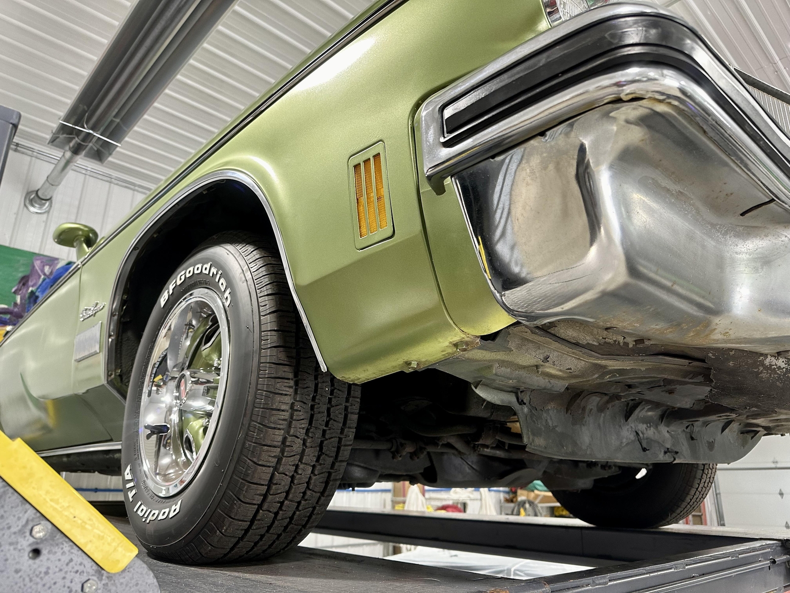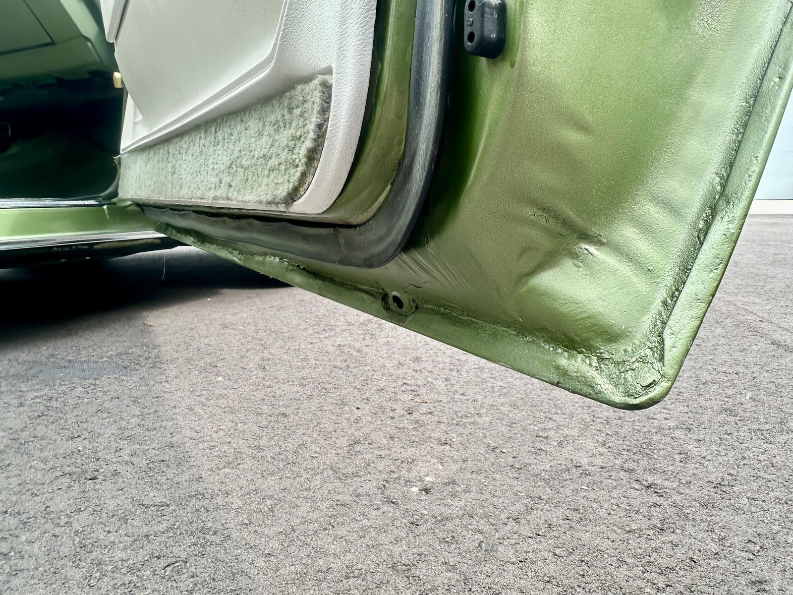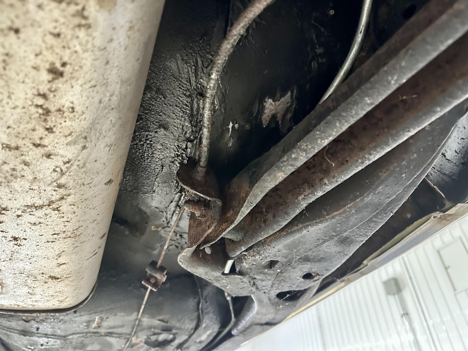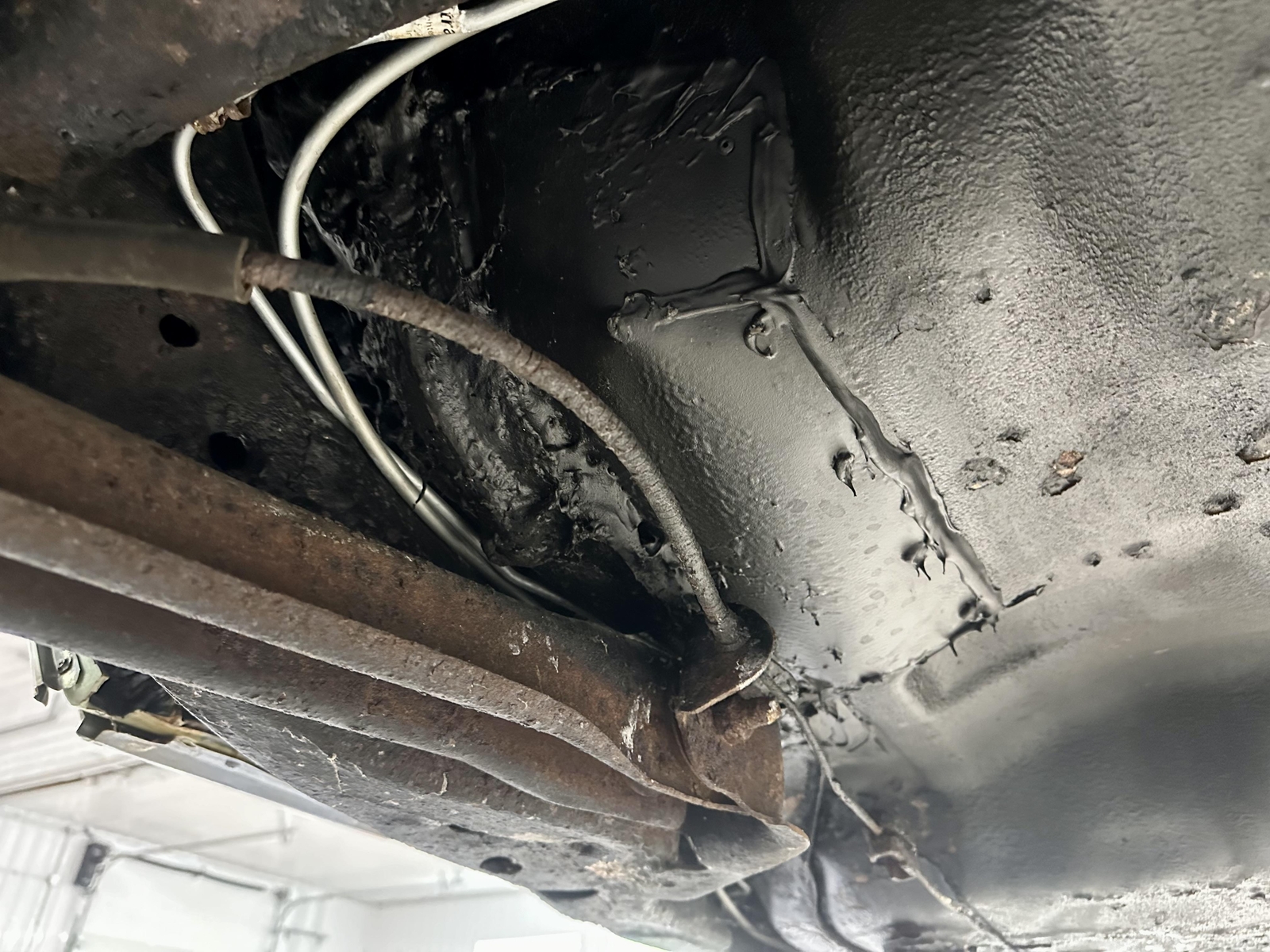 The trunk has some metal repair that we can see, as well as around the rear wheel openings. The body work is mediocre at best. We also note some repair areas underneath the car which is detailed in our pics. The frame appears nice and solid as expected.