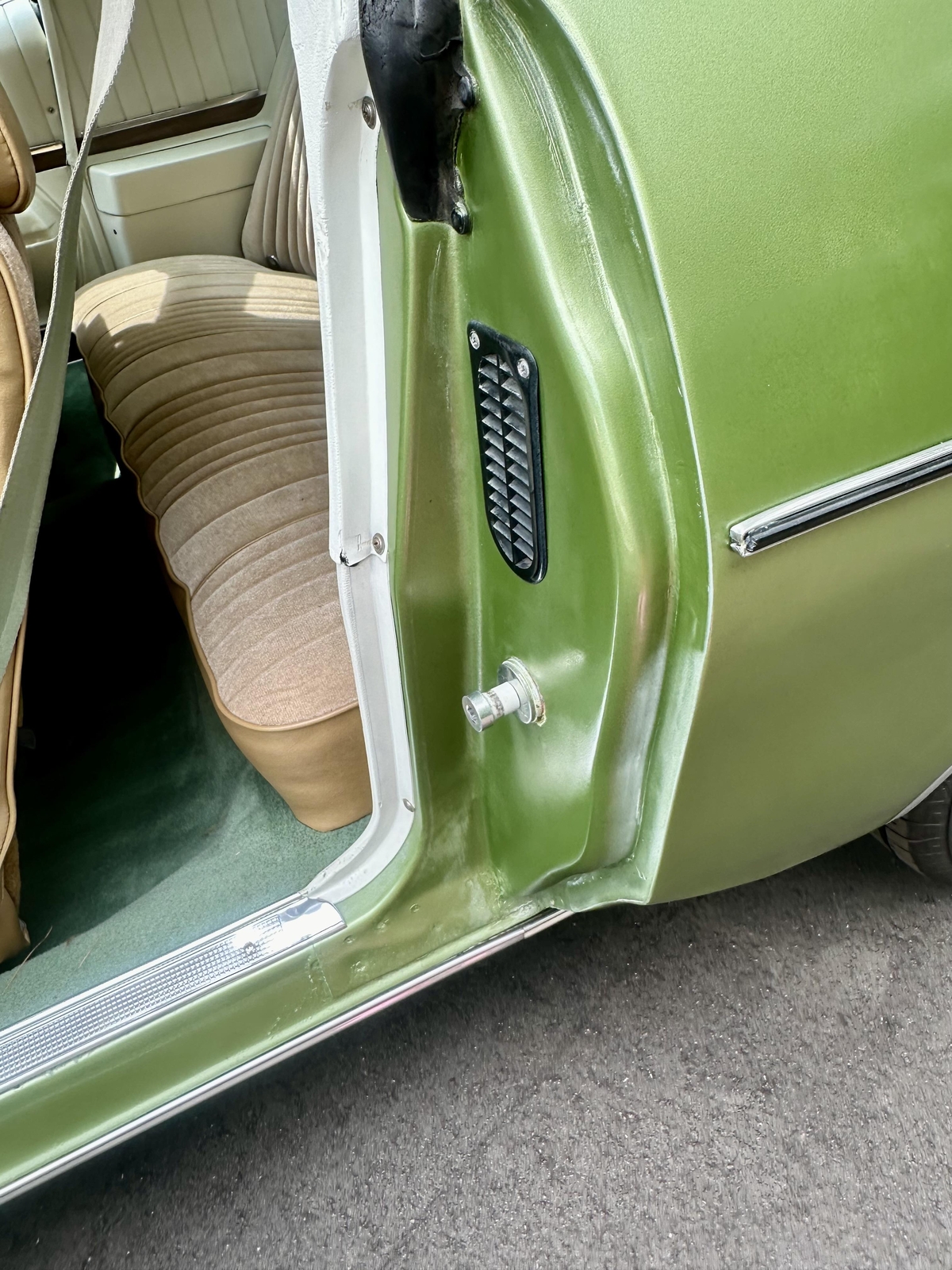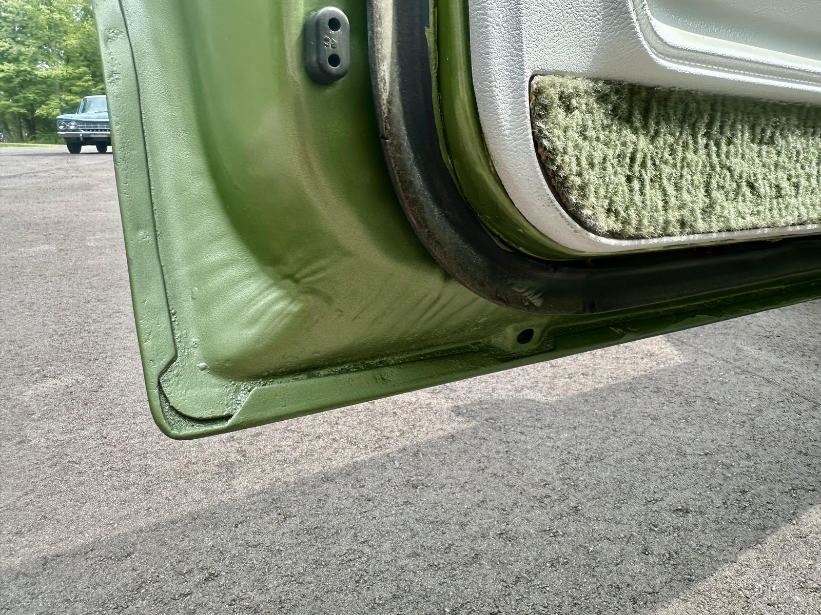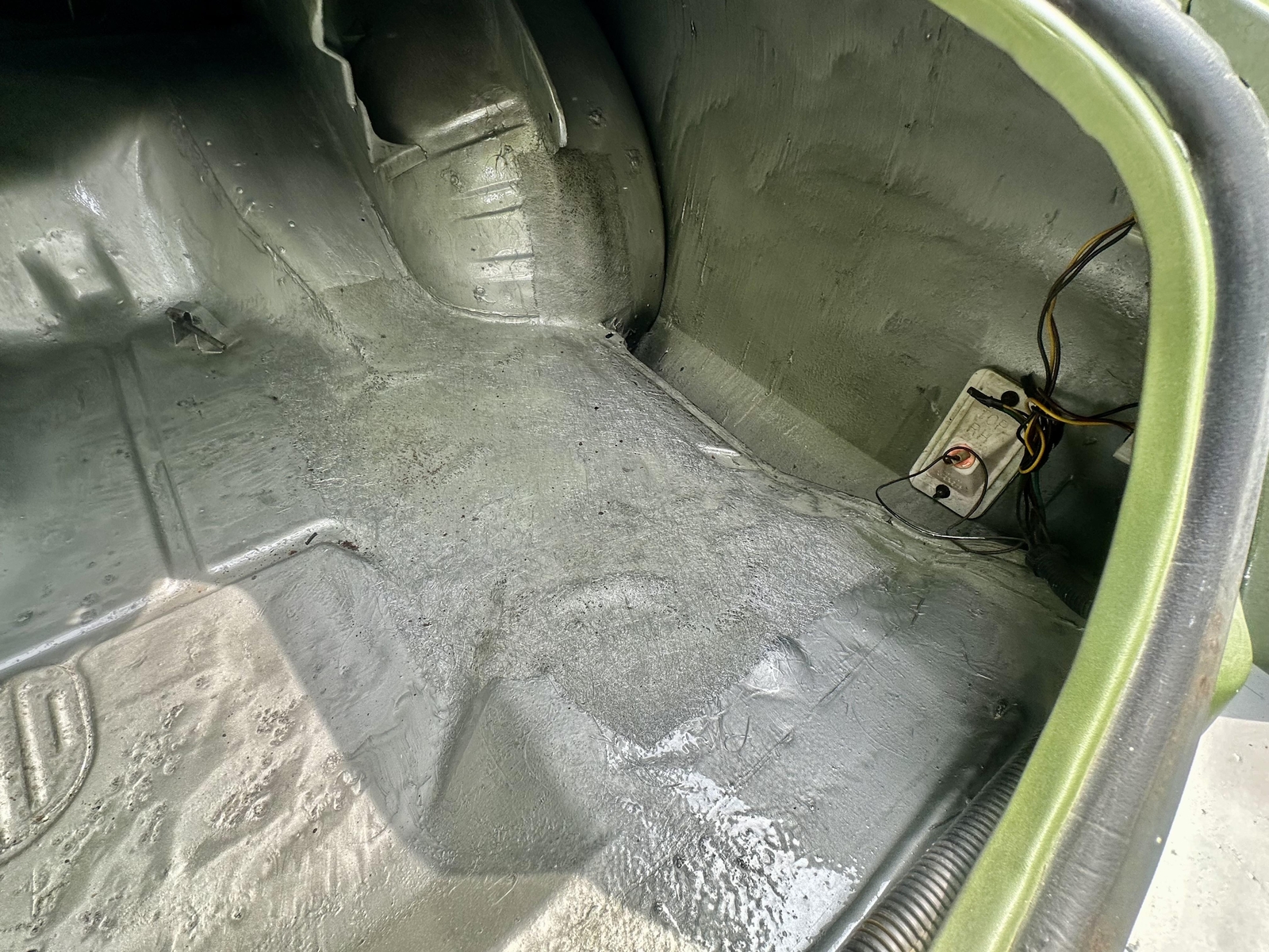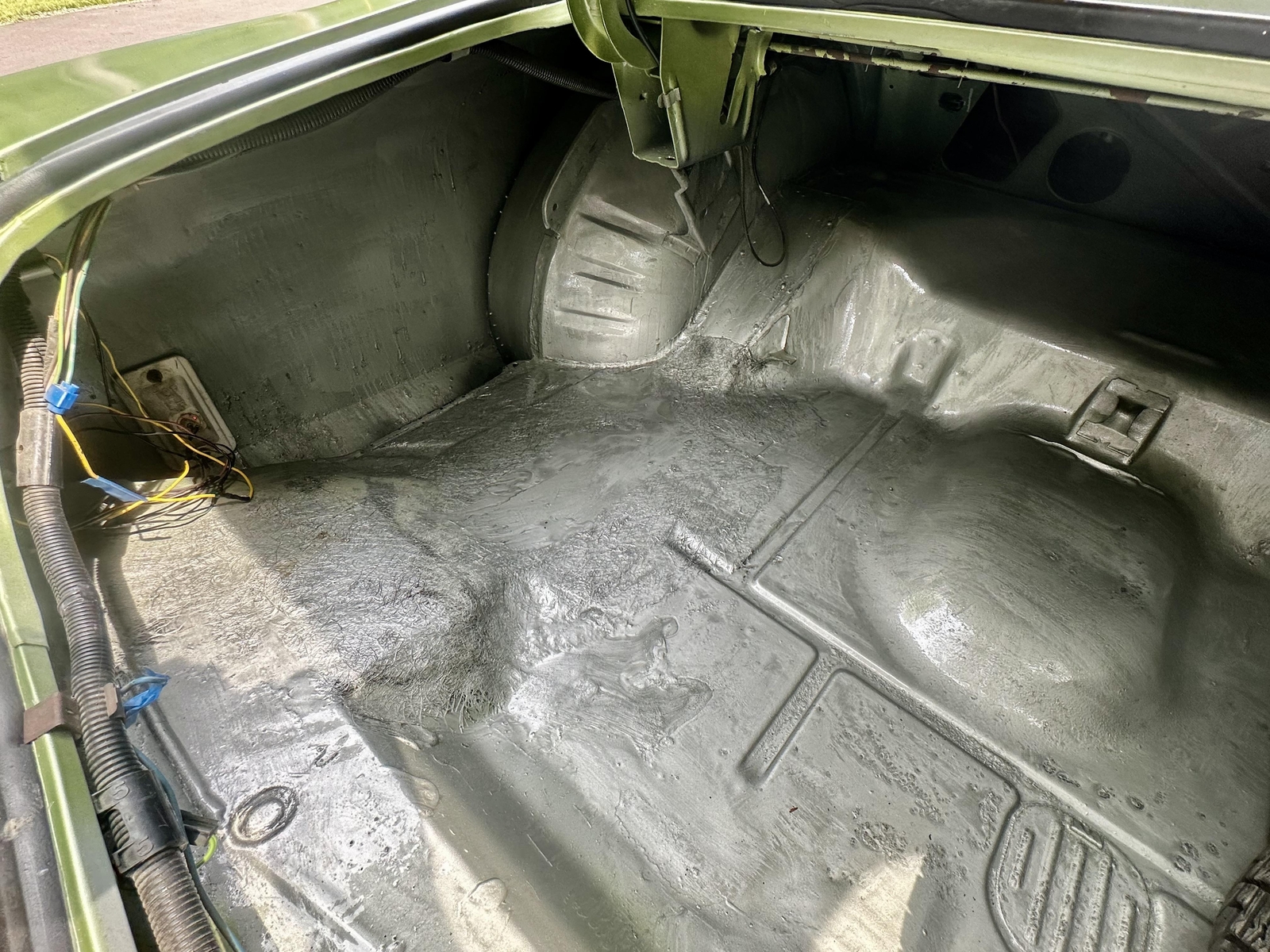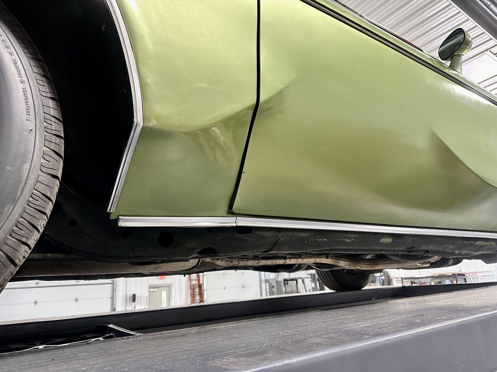 The trunk has some metal repair that we can see, as well as around the rear wheel openings. The body work is mediocre at best. We also note some repair areas underneath the car which is detailed in our pics. The frame appears nice and solid as expected.