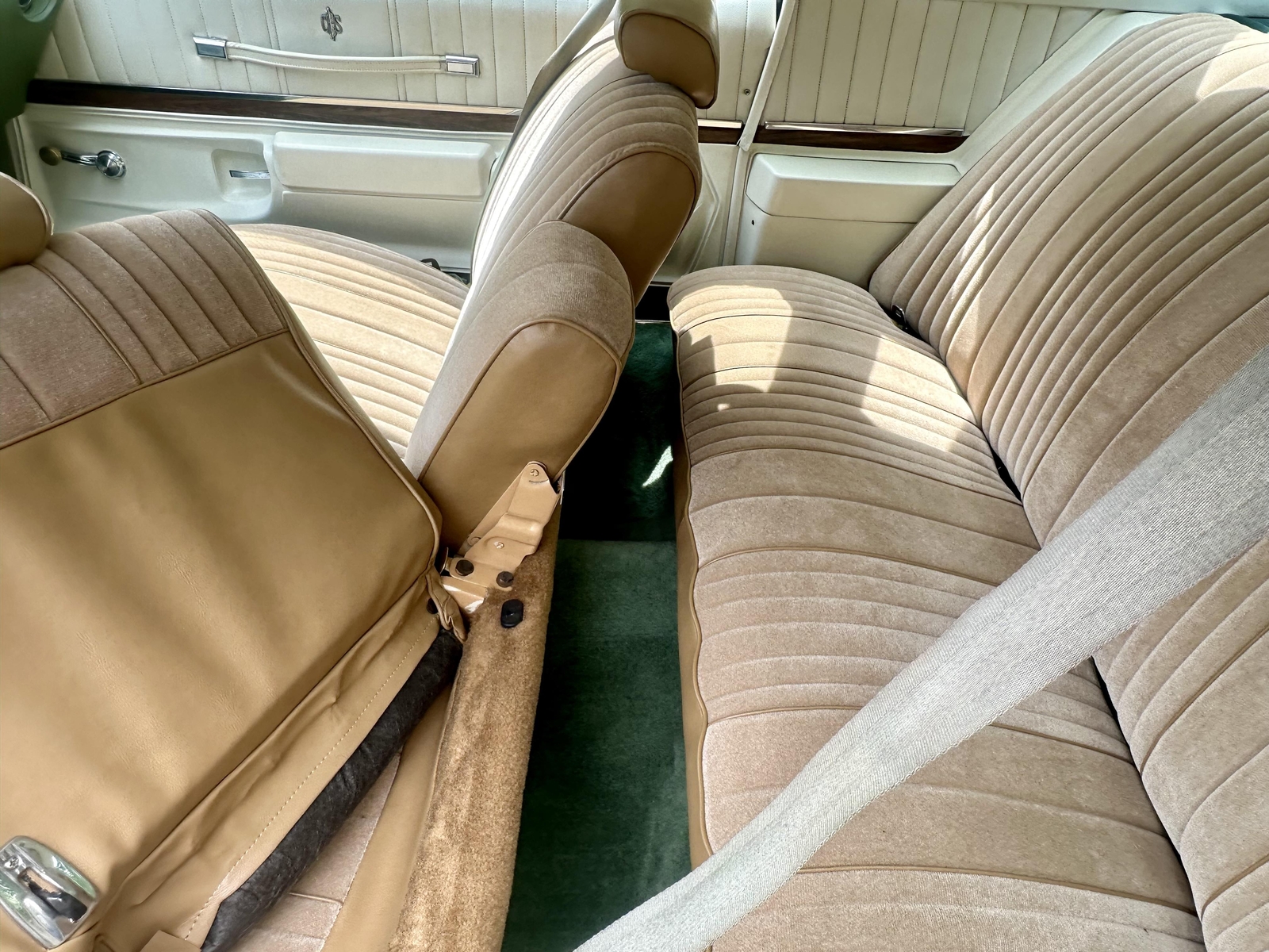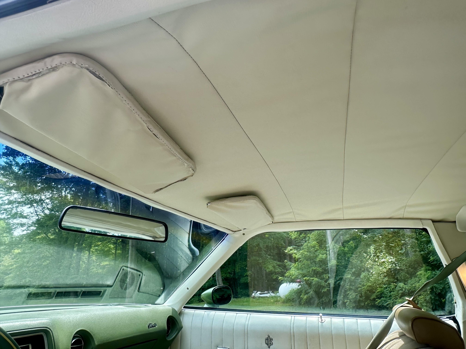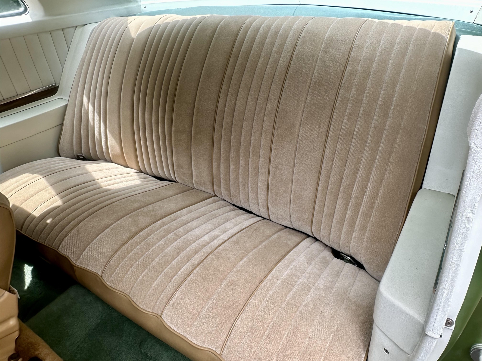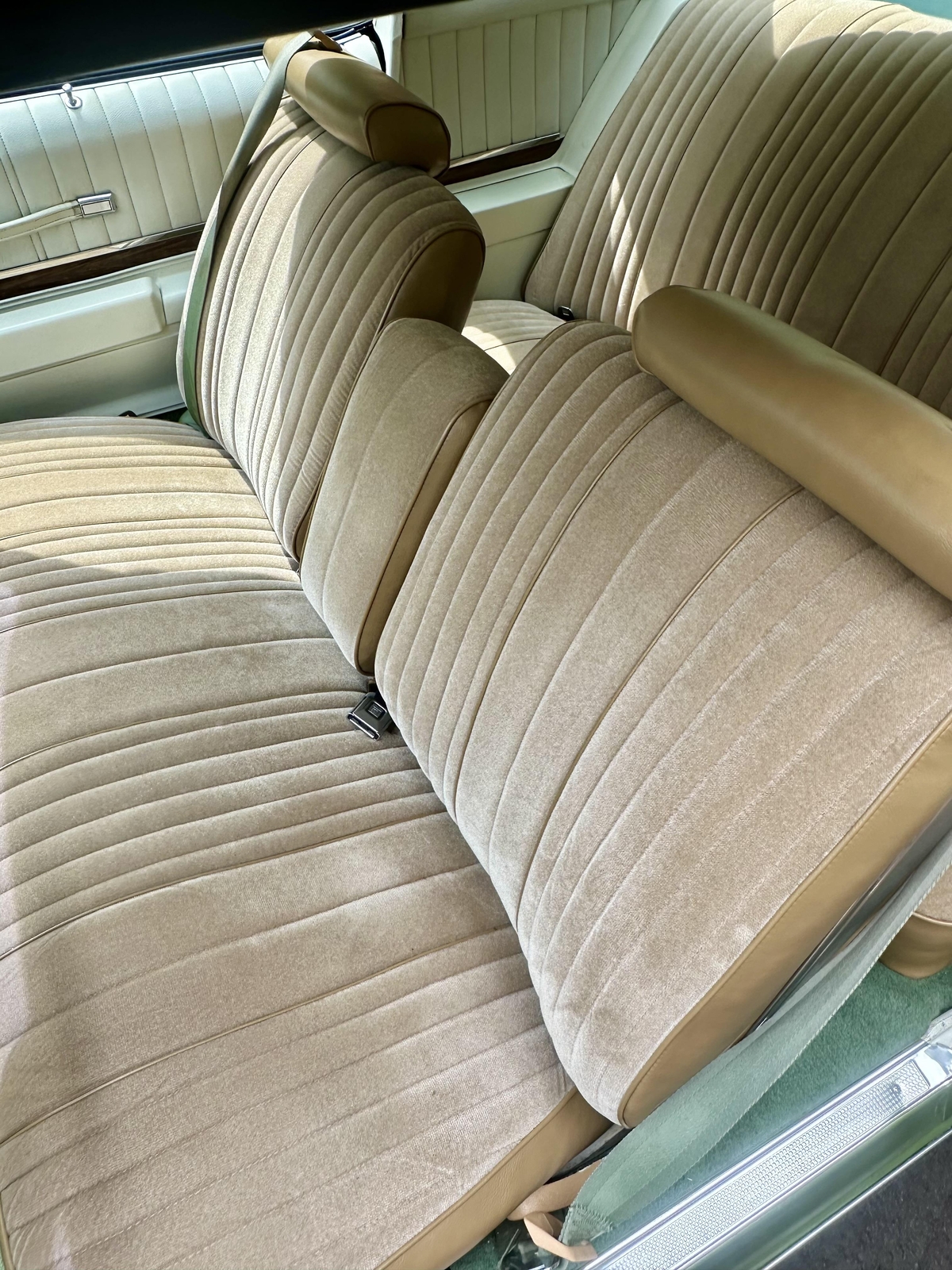 The interior is mix matched at the moment with nice seat coverings but in a clashing color compared to the rest of the interior. The carpets looks new and the dash and gauges show nicely. The headliner and visors are in pretty good shape as you can see.
