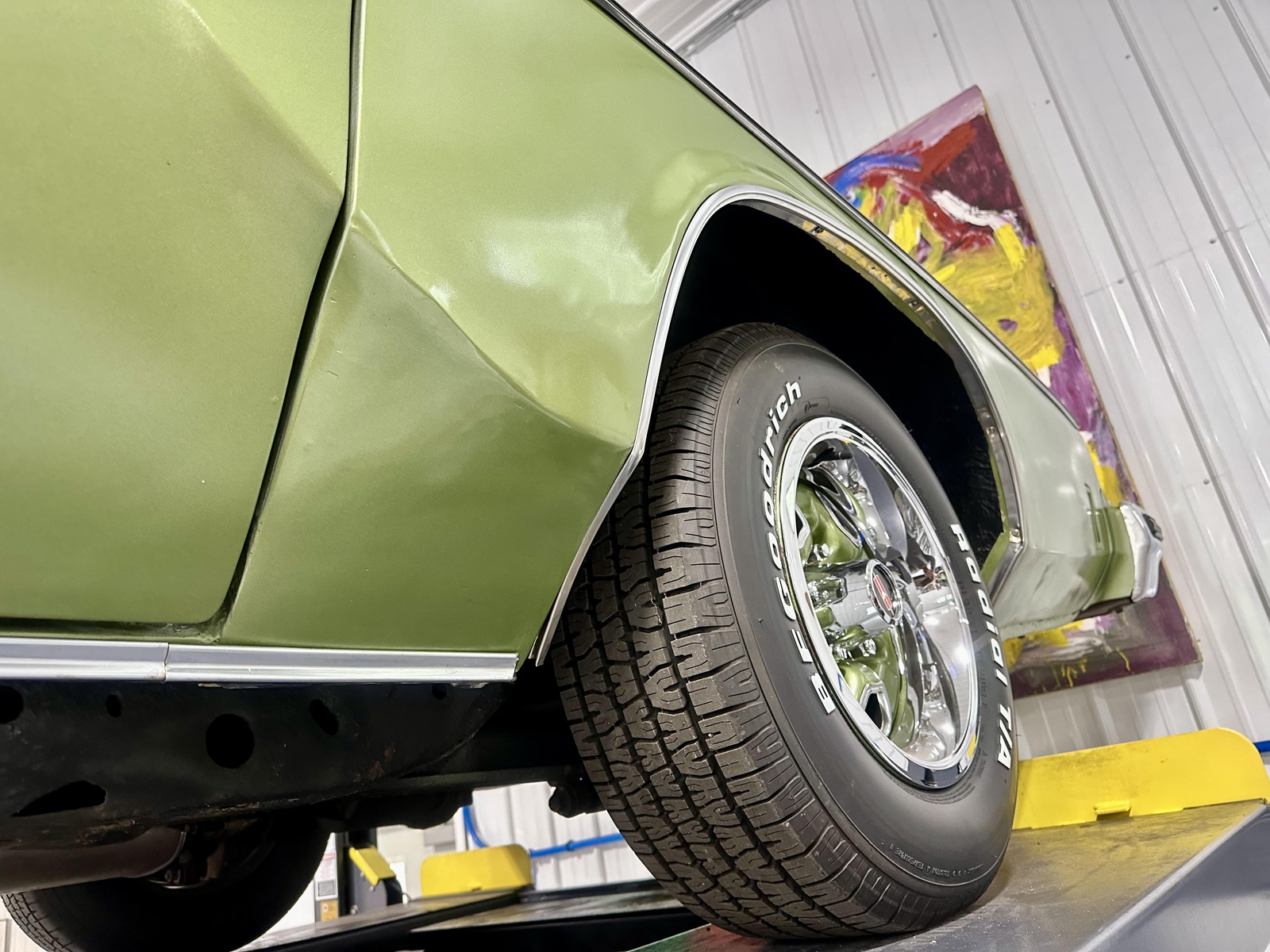 The car drives nice and straight and shines the brightest in the mechanical department. The prior owner cared for his cars and took good care of them and this is no exception. We note a newer fuel cell and some newer suspension parts throughout. We know that the engine was rebuilt in about 2019 and new tires were installed in 2021. The power steering works great and the car runs out nicely and stops straight and confidently. The newly rebuilt TH350 shifts like a new transmission should. We note some usual drips and oil residue underneath and it would appear that a brake line might have a small leak as well, despite have a nice solid pedal underfoot.