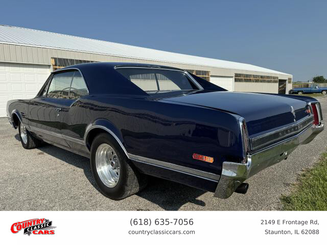 Available now is this 1966 Oldsmobile Cutlass 442 finished in dark blue over a black interior and riding on Weld mag wheels. This Oldsmobile is powered by the 400ci V8 engine mated to an automatic transmission and runs and drives excellent. The interior is finished in all black and is in great condition. More information on this Olds coming soon!