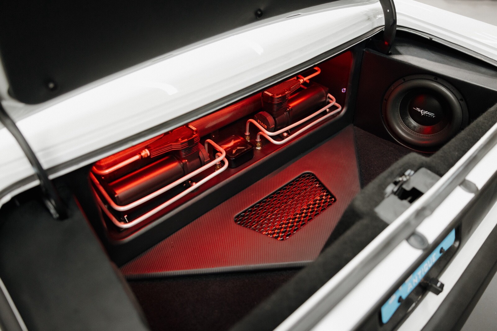 Beautiful pearl white paint with all chrome delete . The whole interior is fully custom with panels front to back and a custom center console. Incredible sound system this thing rocks .