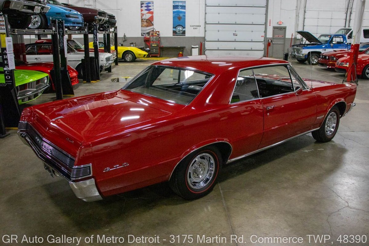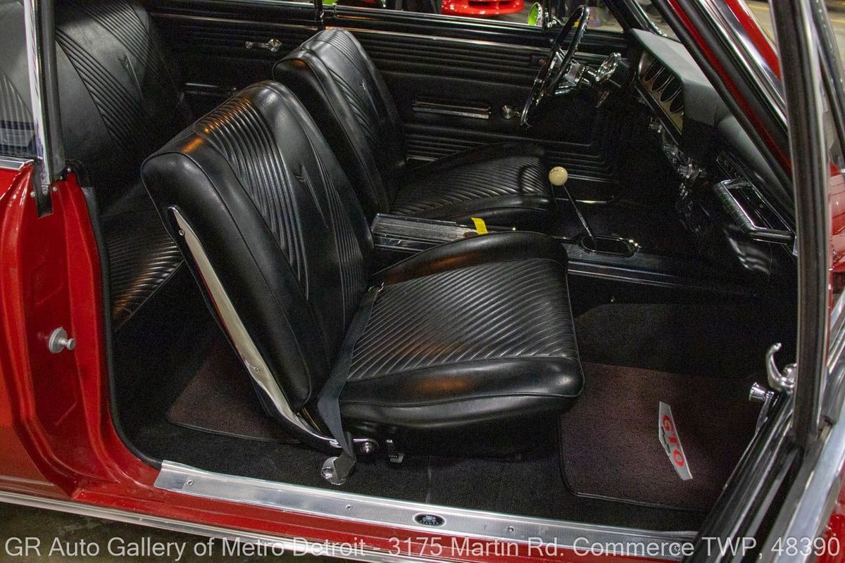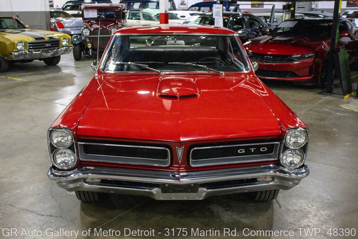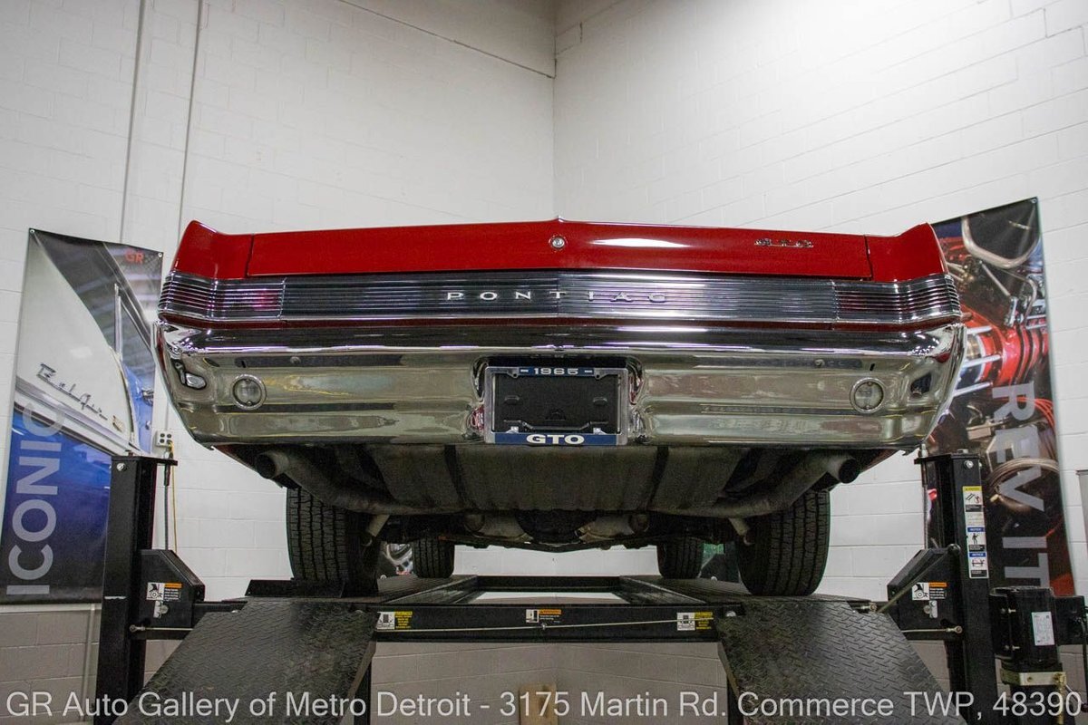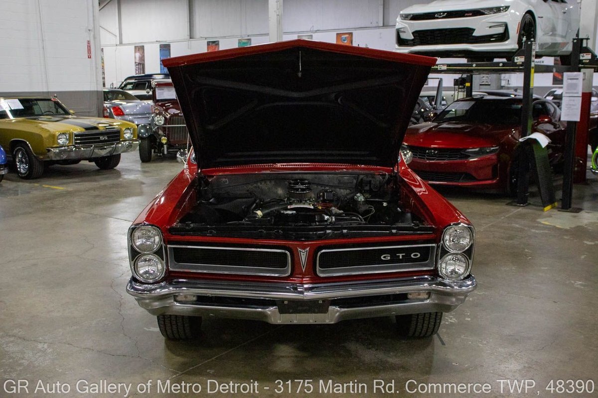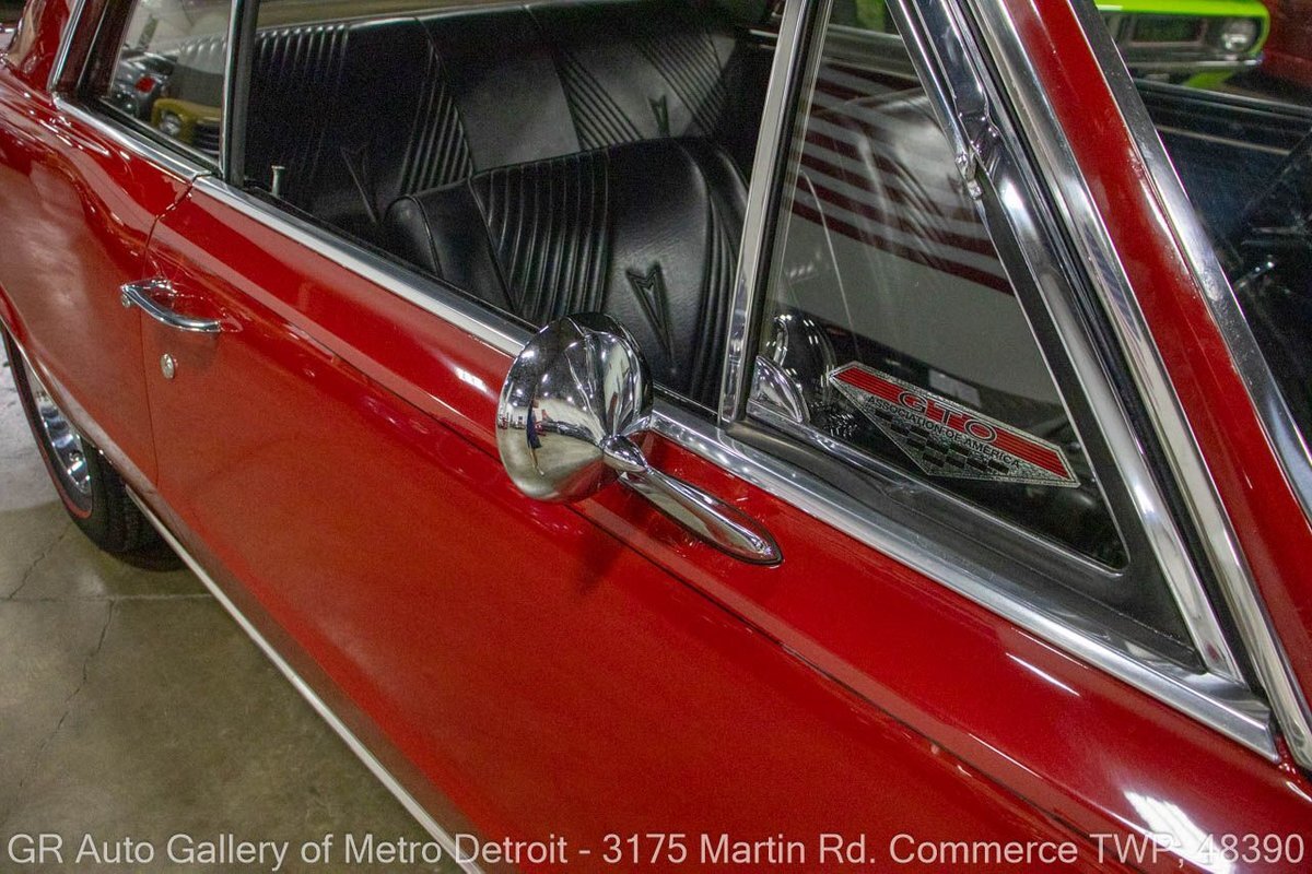 GR Auto Gallery is excited to offer this stunning 1965 Pontiac GTO for your consideration. This classic beauty comes dressed in a striking Montero Red exterior, complemented by a clean black interior. Under the hood, you'll find the powerful 389 cubic inch V8 engine (original/numbers matching) with a tri-power manifold and carb setup fitted and paired with a 4-speed manual transmission. This GTO is geared with an Auburn 3:36 rear end. Meticulously maintained, this vehicle has recently undergone a partial restoration that includes; engine rebuild & bored 30 over, along with a partial repaint on the hood, top, and trunk, while retaining its original pinstriping and paint on the rest of the body. With new BFGoodrich tires, a tri-power carburetor, fresh oil changes, numerous receipts documenting the work done, and original manuals, this GTO is ready for the road. Drive this one out of our showroom or have us assist with shipping it to you anywhere in the United States! Don't hesitate to call us with any questions or for more information.