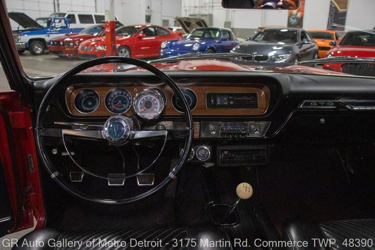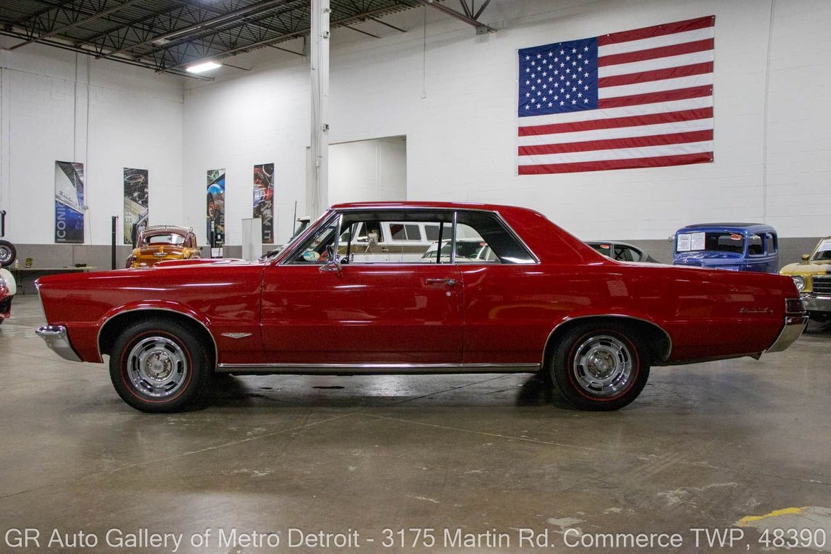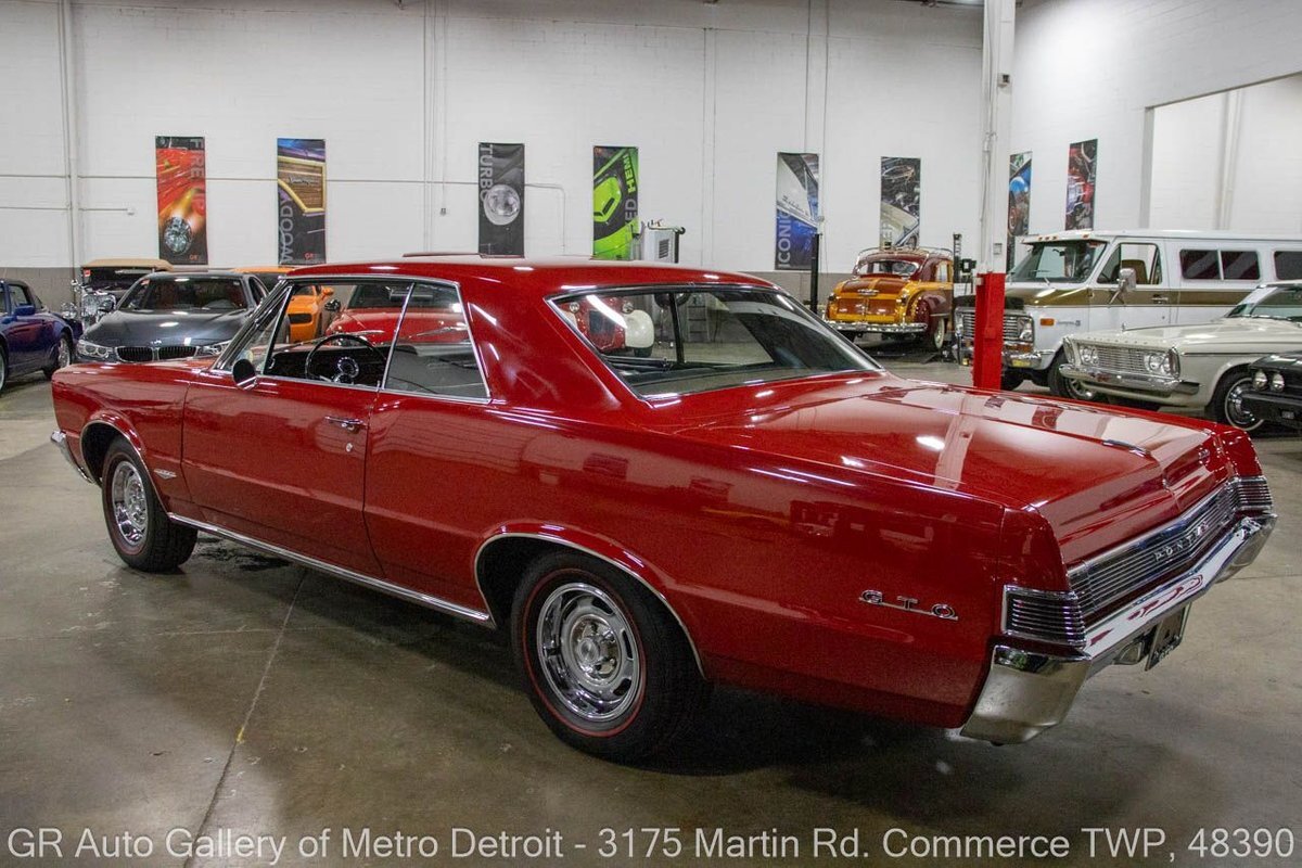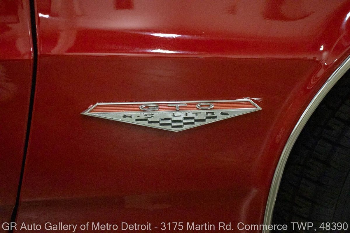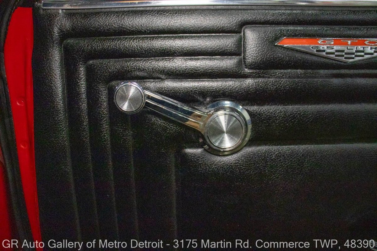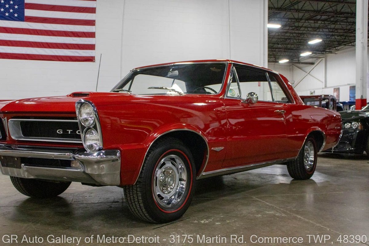 GR Auto Gallery is excited to offer this stunning 1965 Pontiac GTO for your consideration. This classic beauty comes dressed in a striking Montero Red exterior, complemented by a clean black interior. Under the hood, you'll find the powerful 389 cubic inch V8 engine (original/numbers matching) with a tri-power manifold and carb setup fitted and paired with a 4-speed manual transmission. This GTO is geared with an Auburn 3:36 rear end. Meticulously maintained, this vehicle has recently undergone a partial restoration that includes; engine rebuild & bored 30 over, along with a partial repaint on the hood, top, and trunk, while retaining its original pinstriping and paint on the rest of the body. With new BFGoodrich tires, a tri-power carburetor, fresh oil changes, numerous receipts documenting the work done, and original manuals, this GTO is ready for the road. Drive this one out of our showroom or have us assist with shipping it to you anywhere in the United States! Don't hesitate to call us with any questions or for more information.