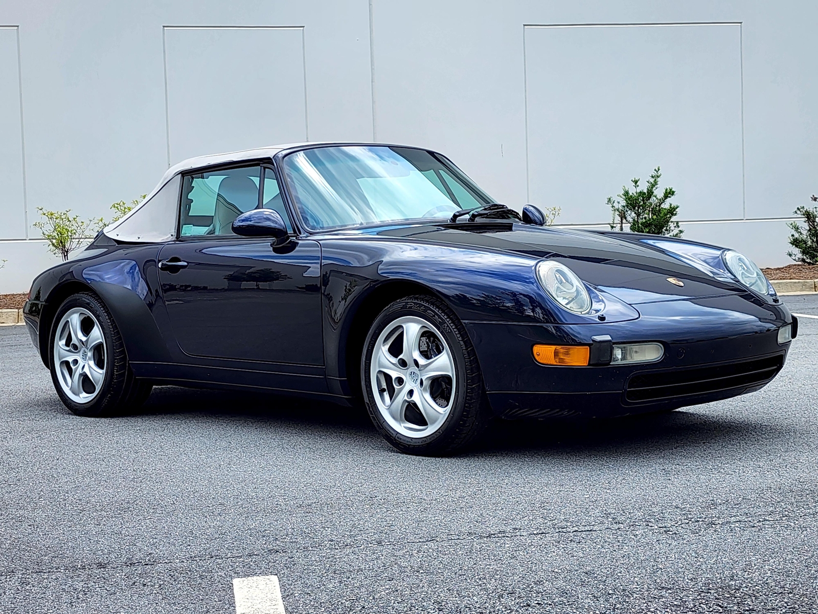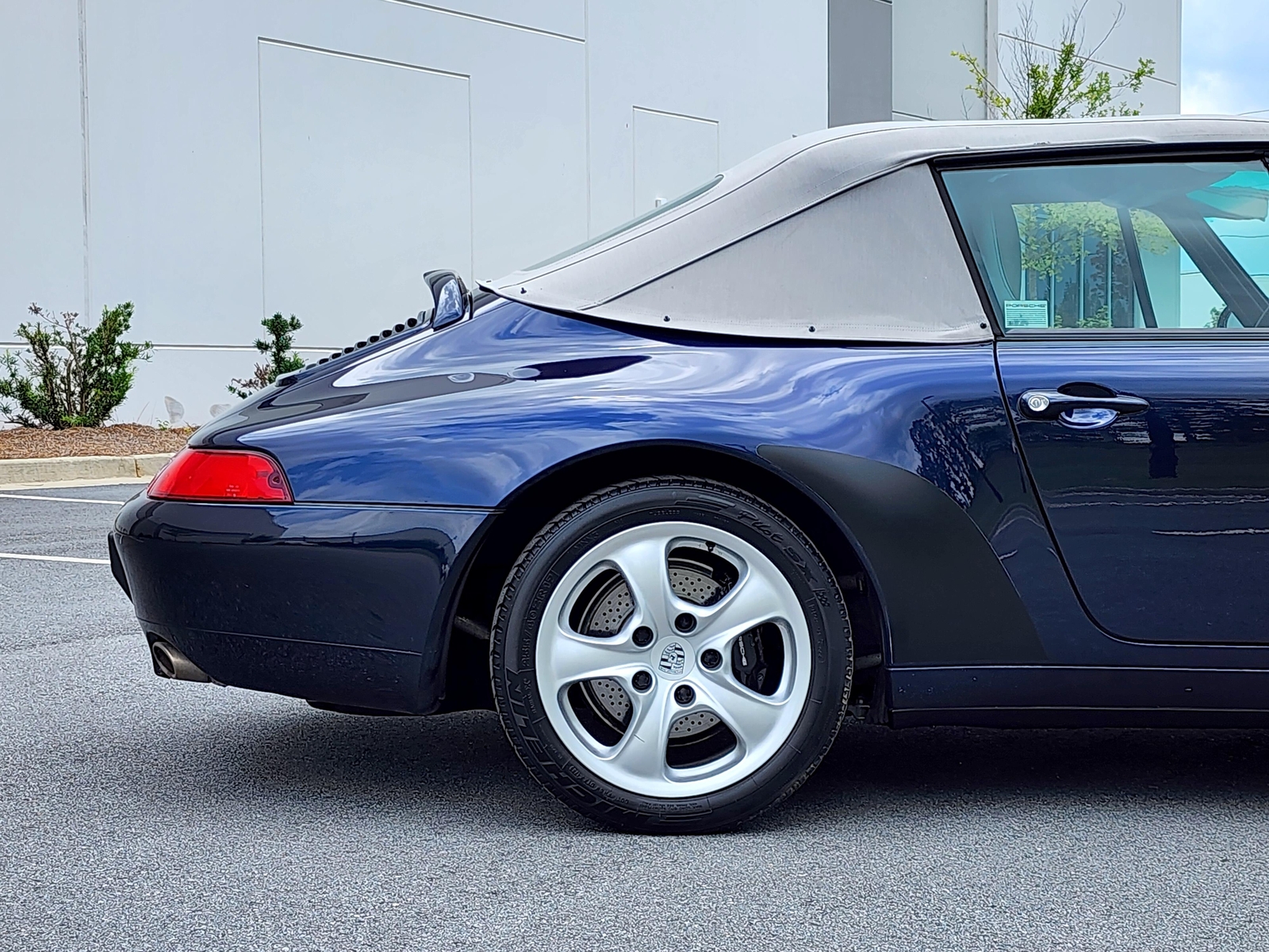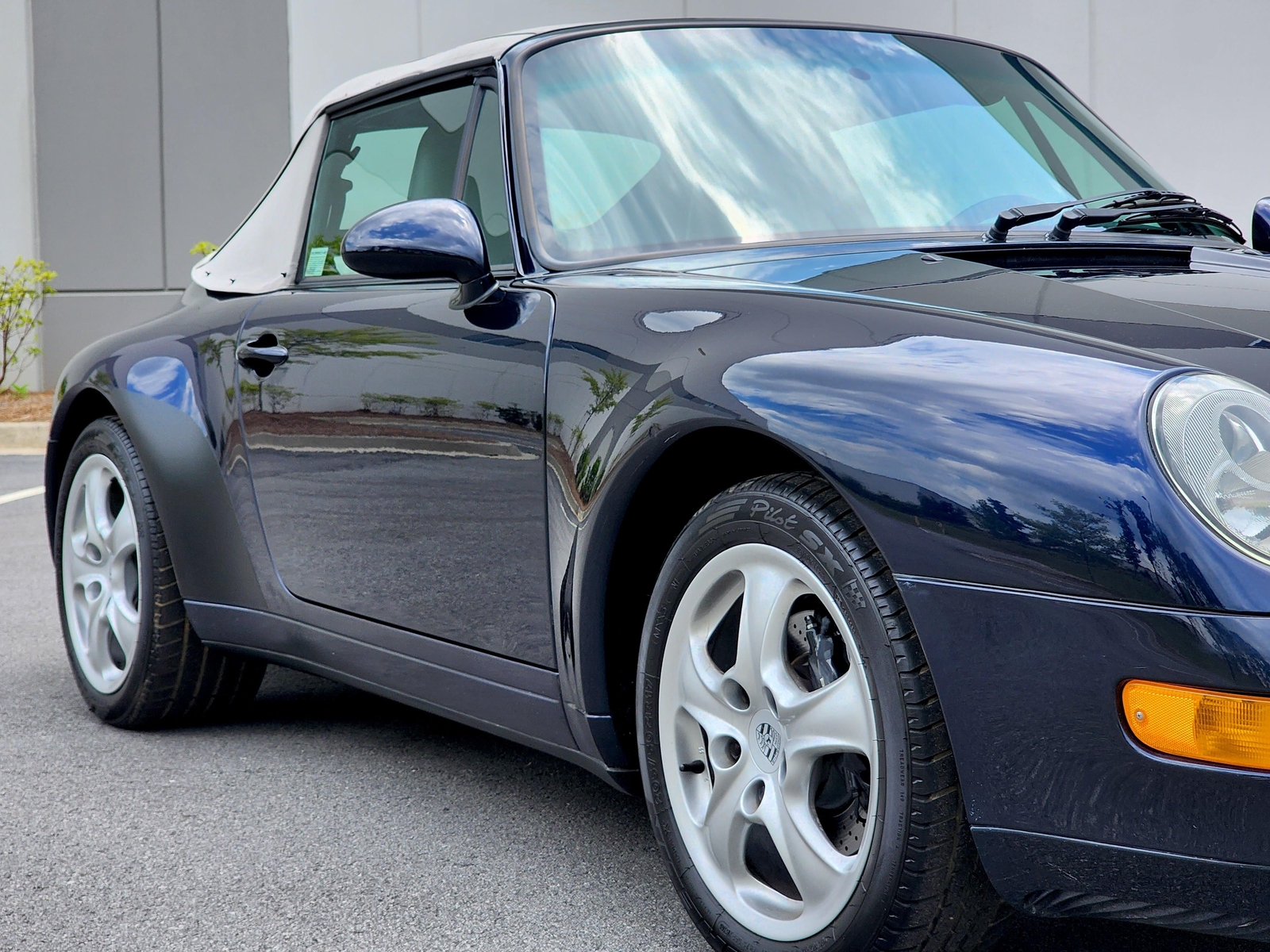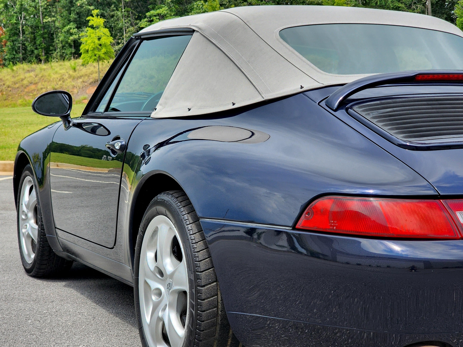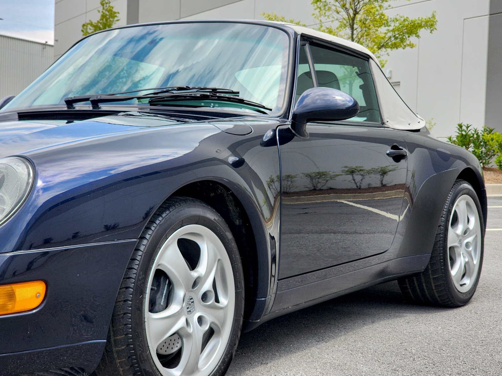 This 993 Cabriolet is an all around good looking and solid driving car. The car starts, runs, and drives perfectly. The power is all there! The clutch take-up is slip free, and the shifting action is smooth and continuous. There is no steering play and the car tracks perfectly straight. Braking is solid and the car stops on demand. The AC blows cold and everything is in working order. Work just completed consisted of new convertible transmission cables, AC recharge, and a gas treatment. The car is also fitted with new tires and a brand new windshield.
