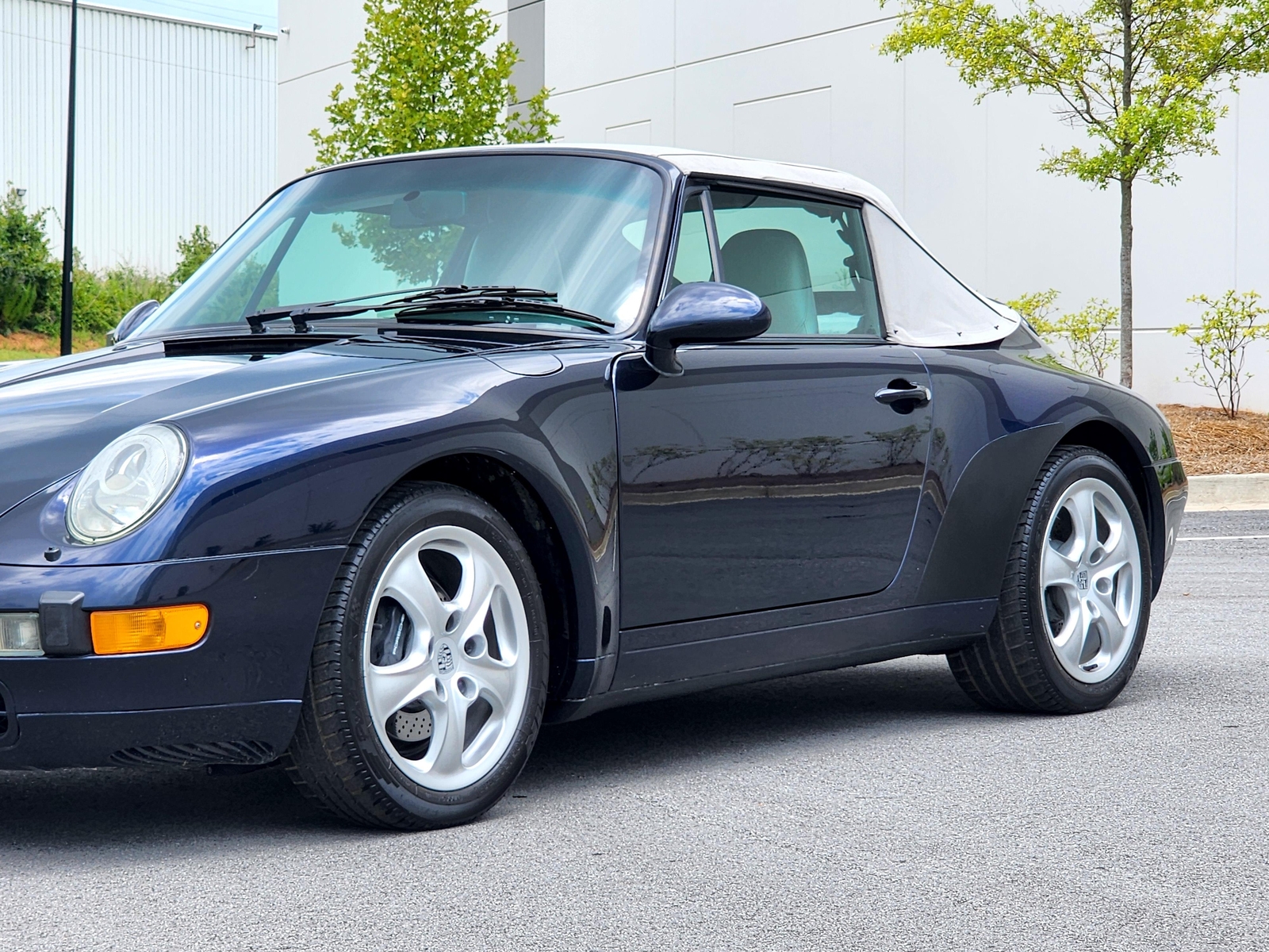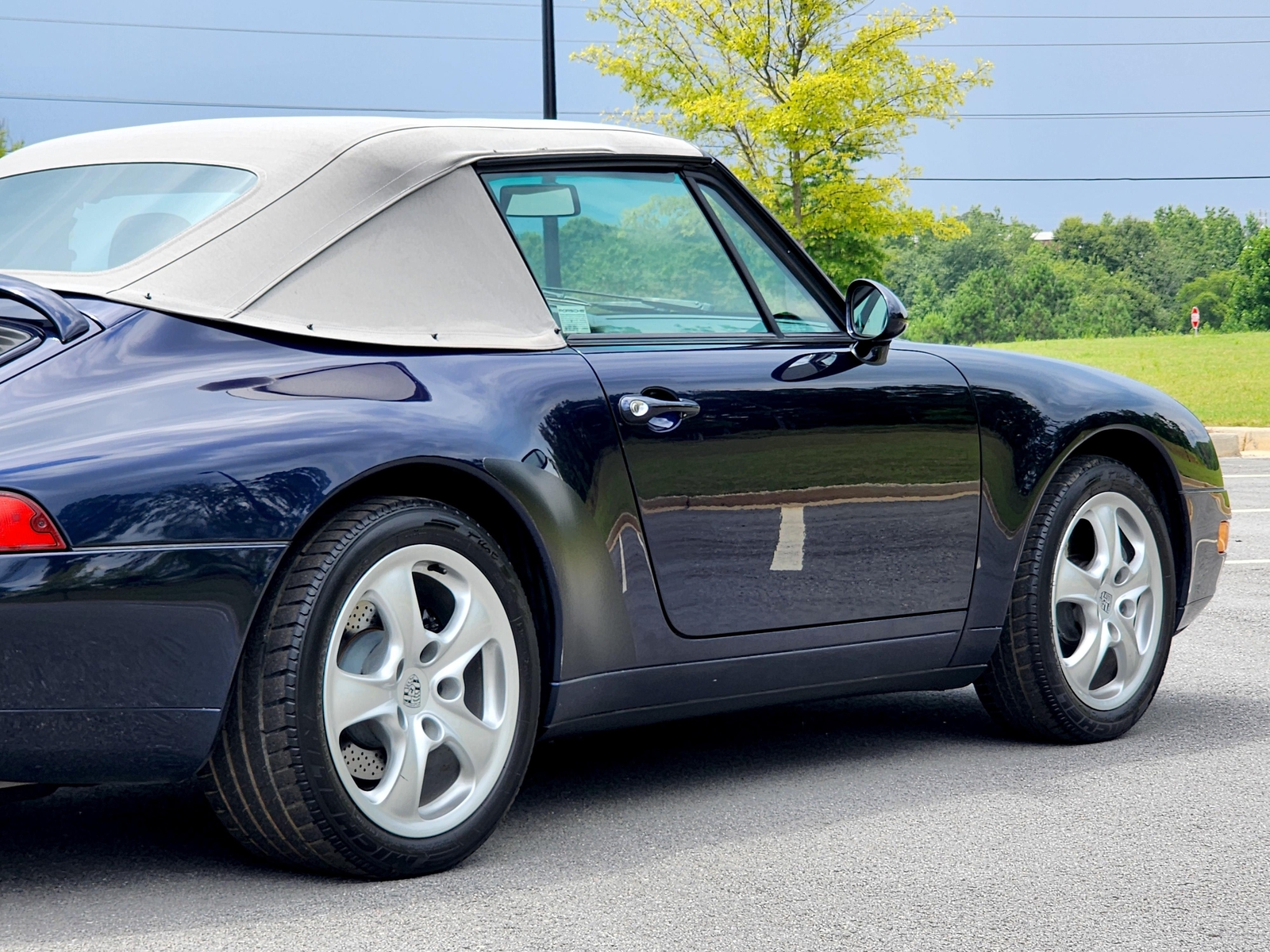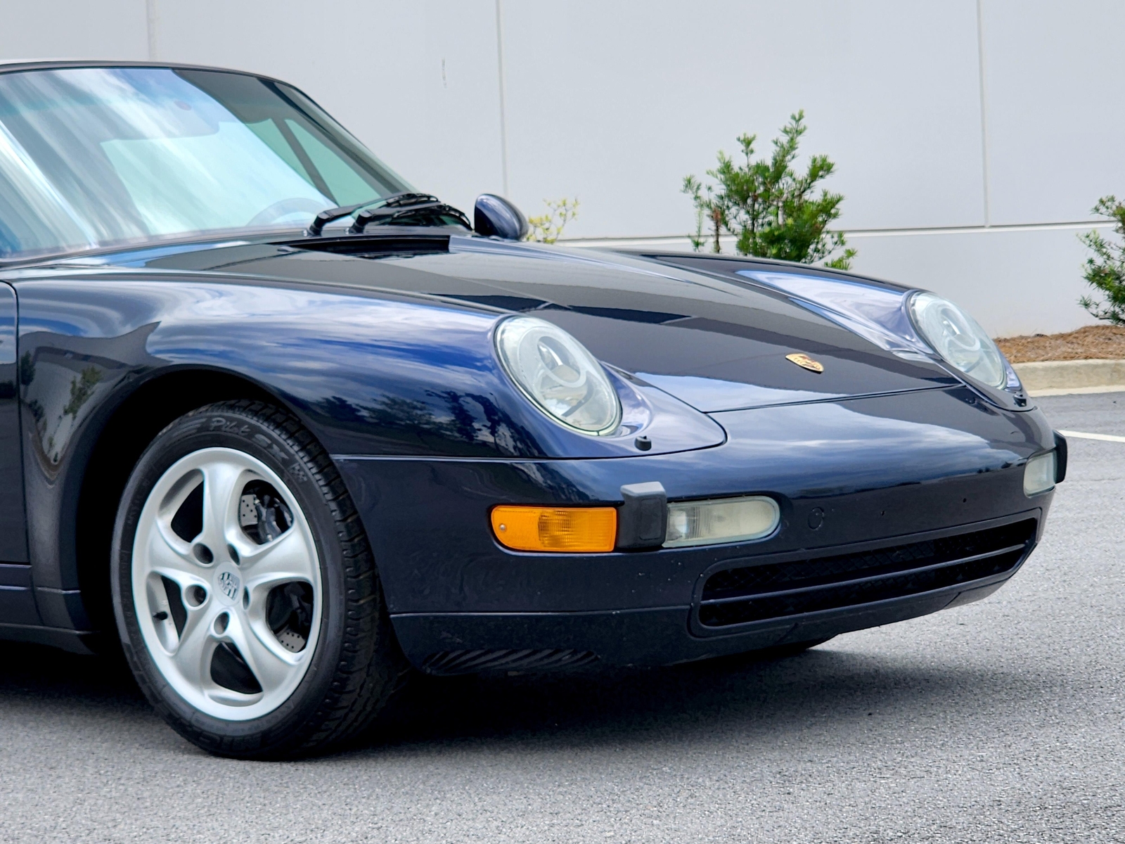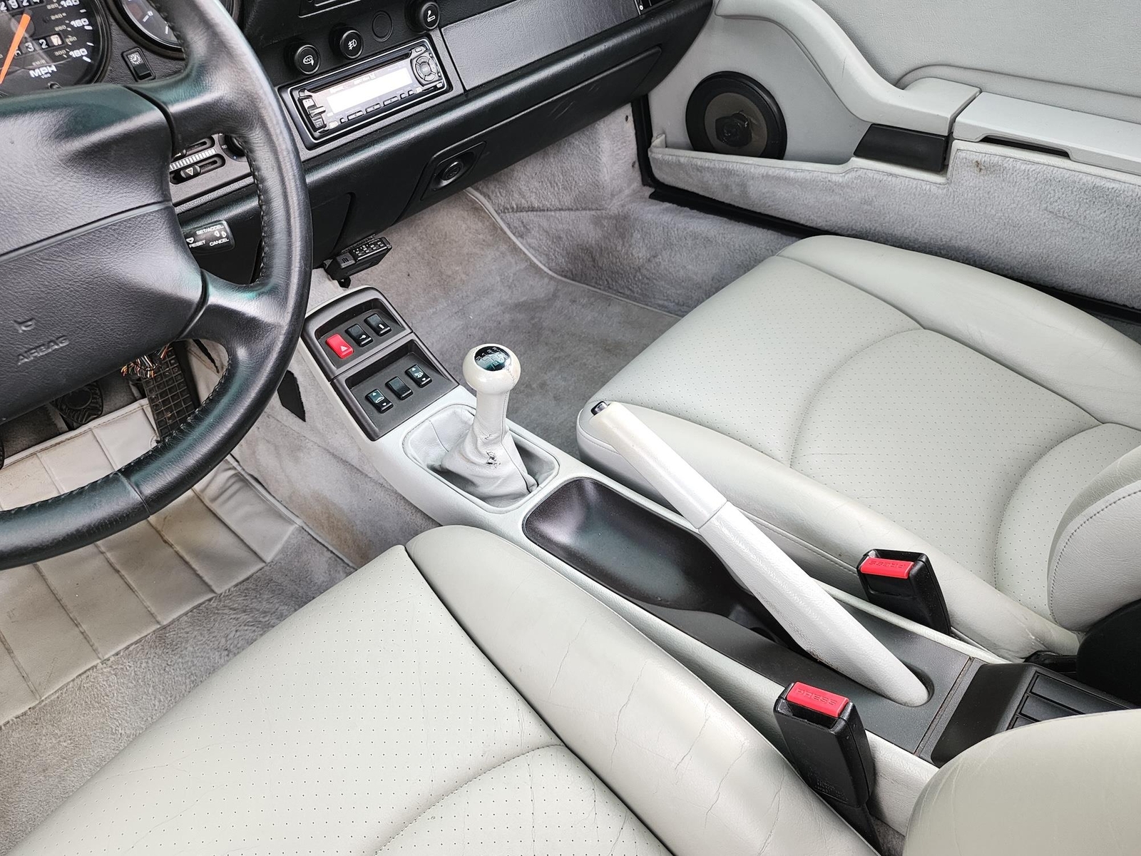 This 993 Cabriolet is an all around good looking and solid driving car. The car starts, runs, and drives perfectly. The power is all there! The clutch take-up is slip free, and the shifting action is smooth and continuous. There is no steering play and the car tracks perfectly straight. Braking is solid and the car stops on demand. The AC blows cold and everything is in working order. Work just completed consisted of new convertible transmission cables, AC recharge, and a gas treatment. The car is also fitted with new tires and a brand new windshield.