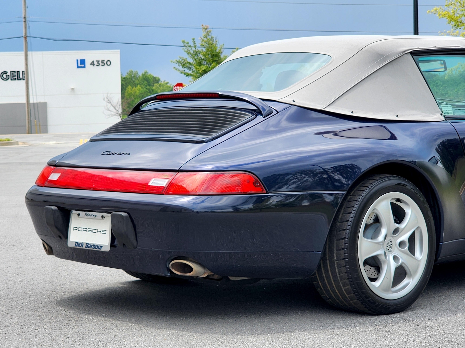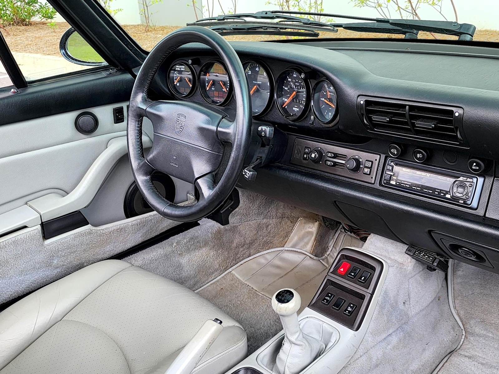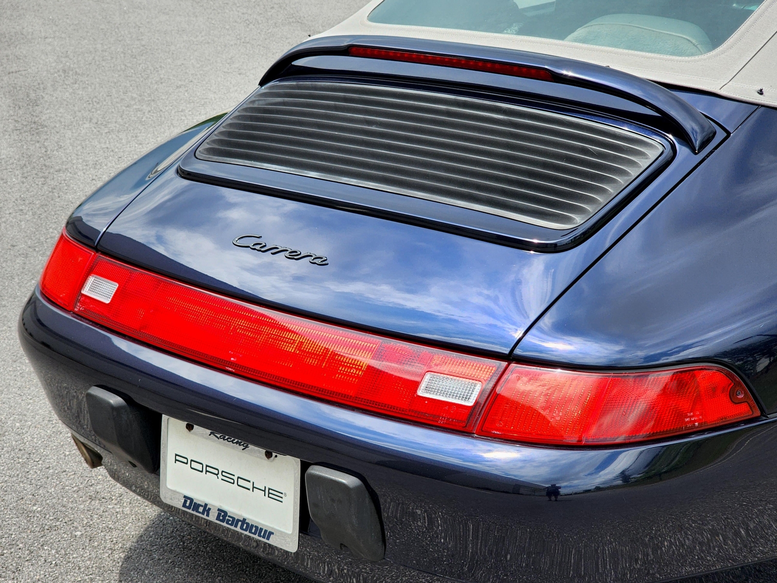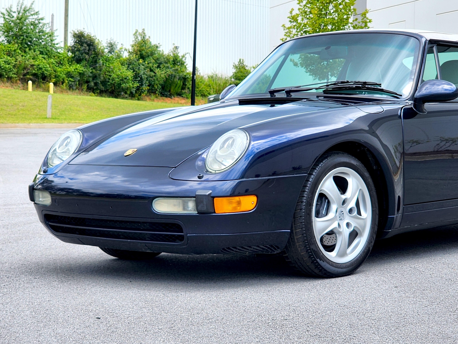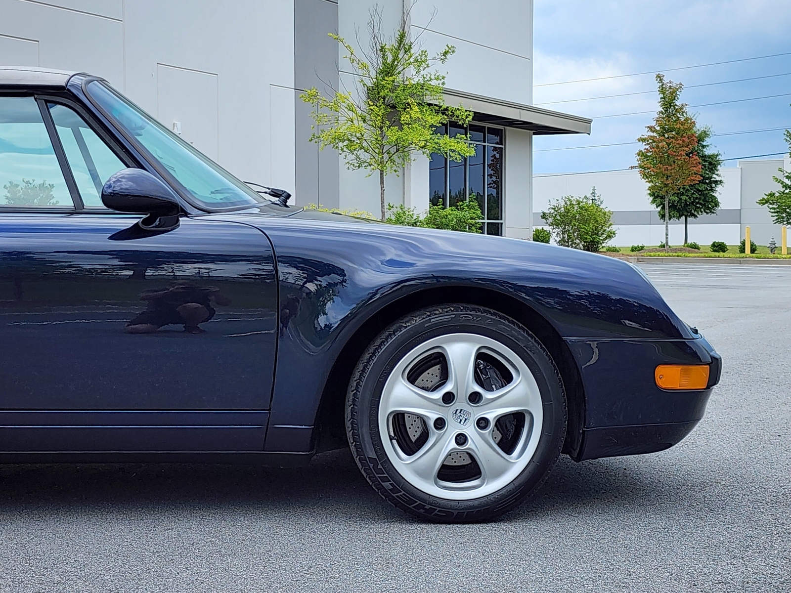 This 993 Cabriolet is an all around good looking and solid driving car. The car starts, runs, and drives perfectly. The power is all there! The clutch take-up is slip free, and the shifting action is smooth and continuous. There is no steering play and the car tracks perfectly straight. Braking is solid and the car stops on demand. The AC blows cold and everything is in working order. Work just completed consisted of new convertible transmission cables, AC recharge, and a gas treatment. The car is also fitted with new tires and a brand new windshield.