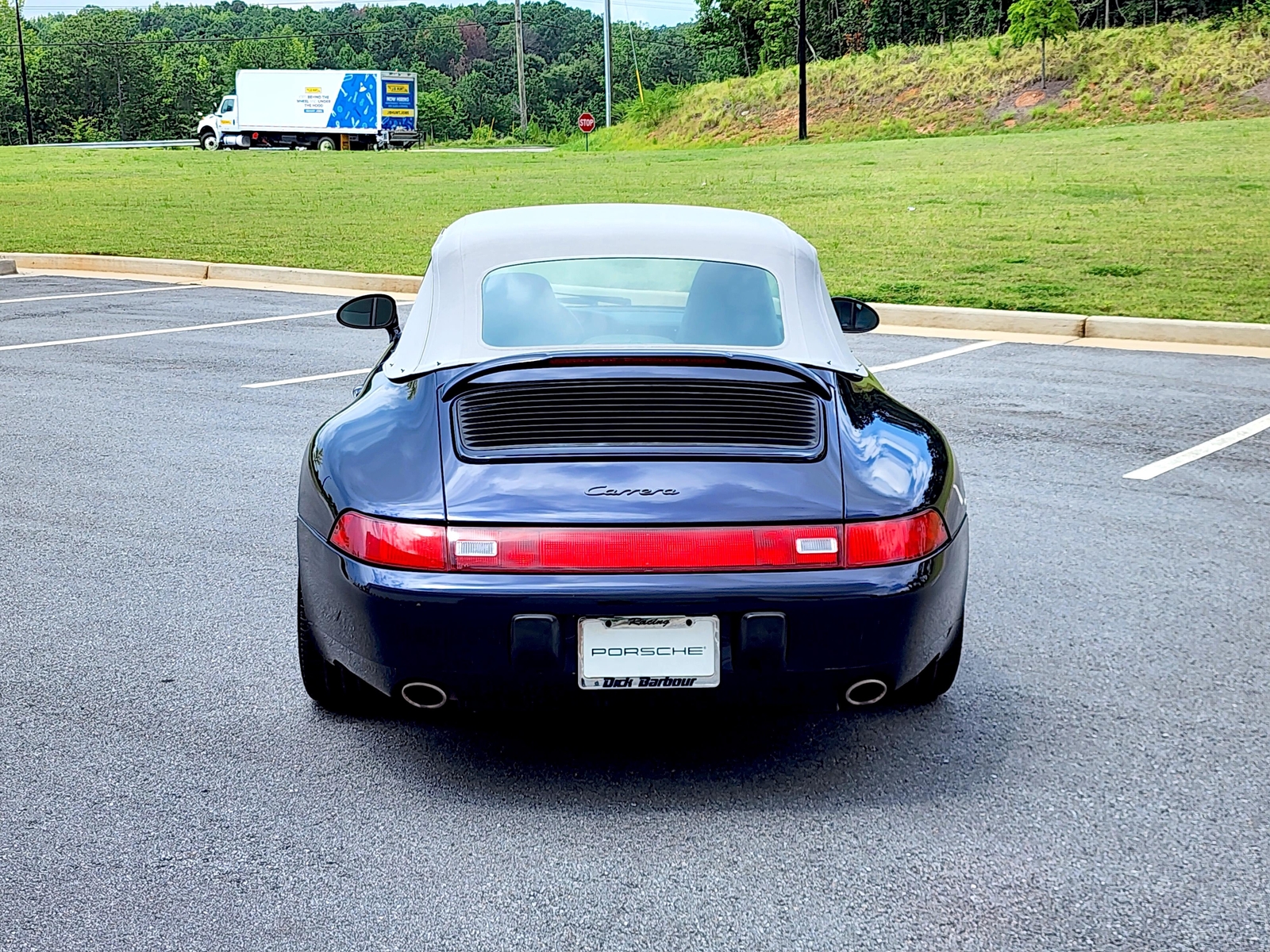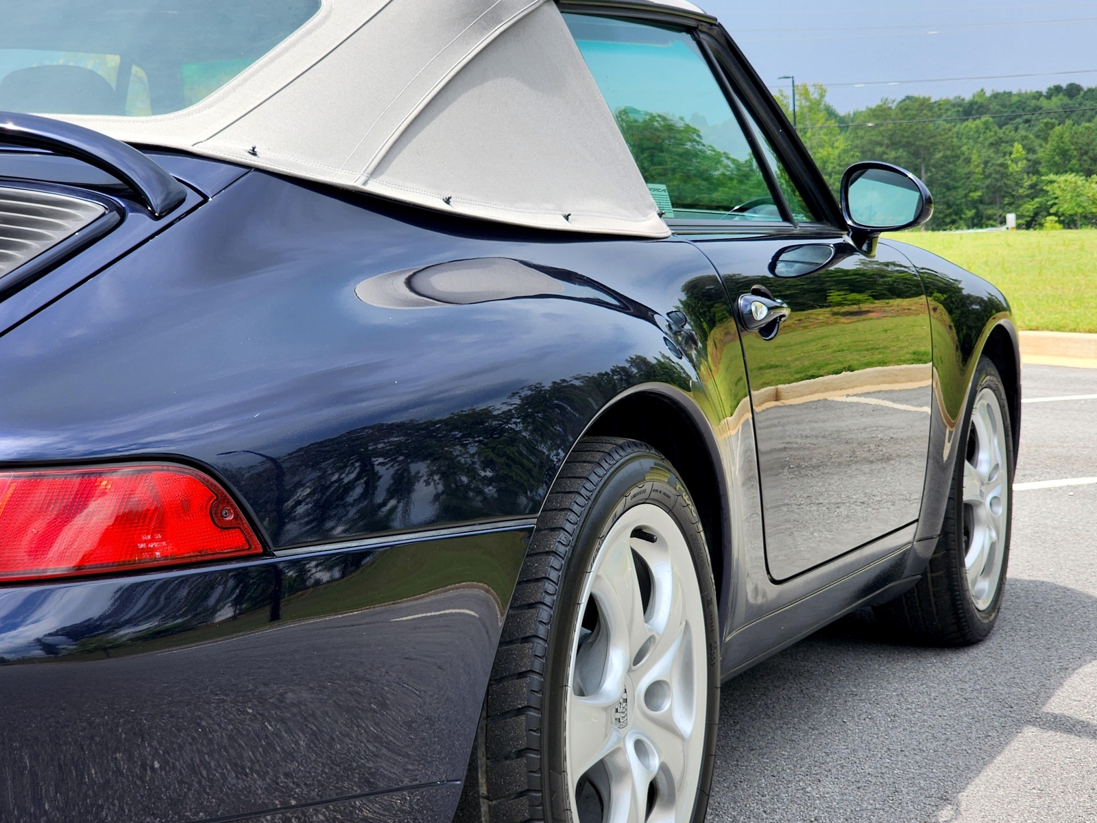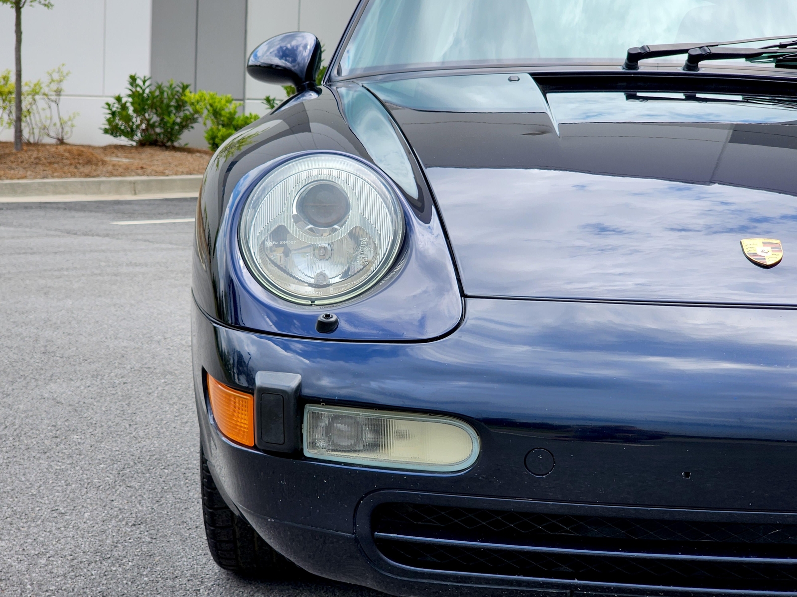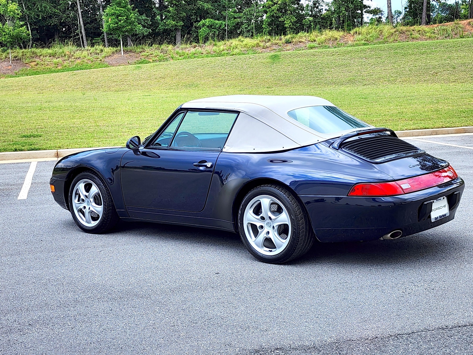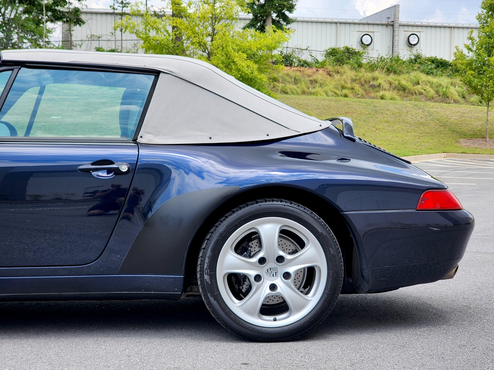 This 993 Cabriolet is an all around good looking and solid driving car. The car starts, runs, and drives perfectly. The power is all there! The clutch take-up is slip free, and the shifting action is smooth and continuous. There is no steering play and the car tracks perfectly straight. Braking is solid and the car stops on demand. The AC blows cold and everything is in working order. Work just completed consisted of new convertible transmission cables, AC recharge, and a gas treatment. The car is also fitted with new tires and a brand new windshield.