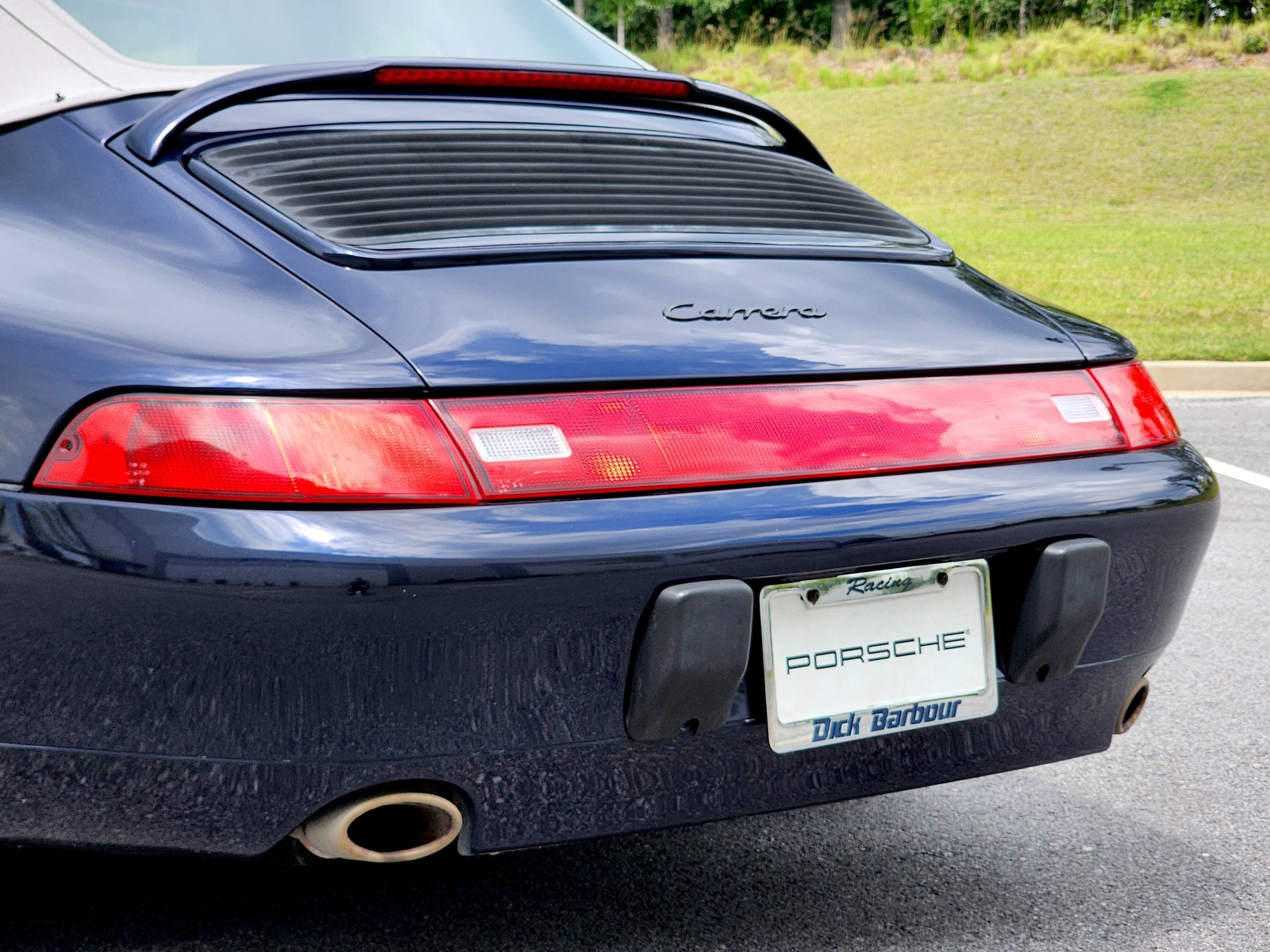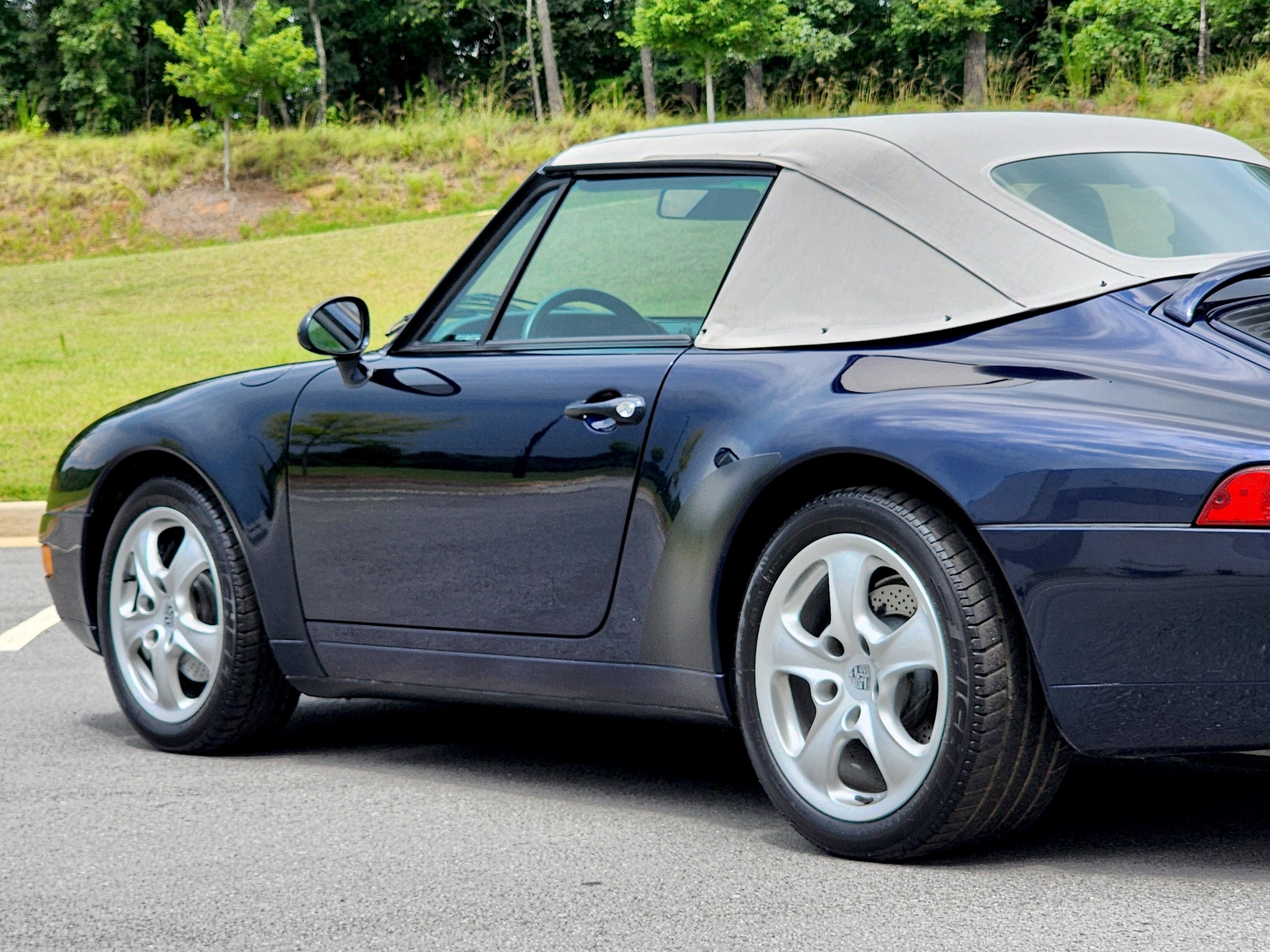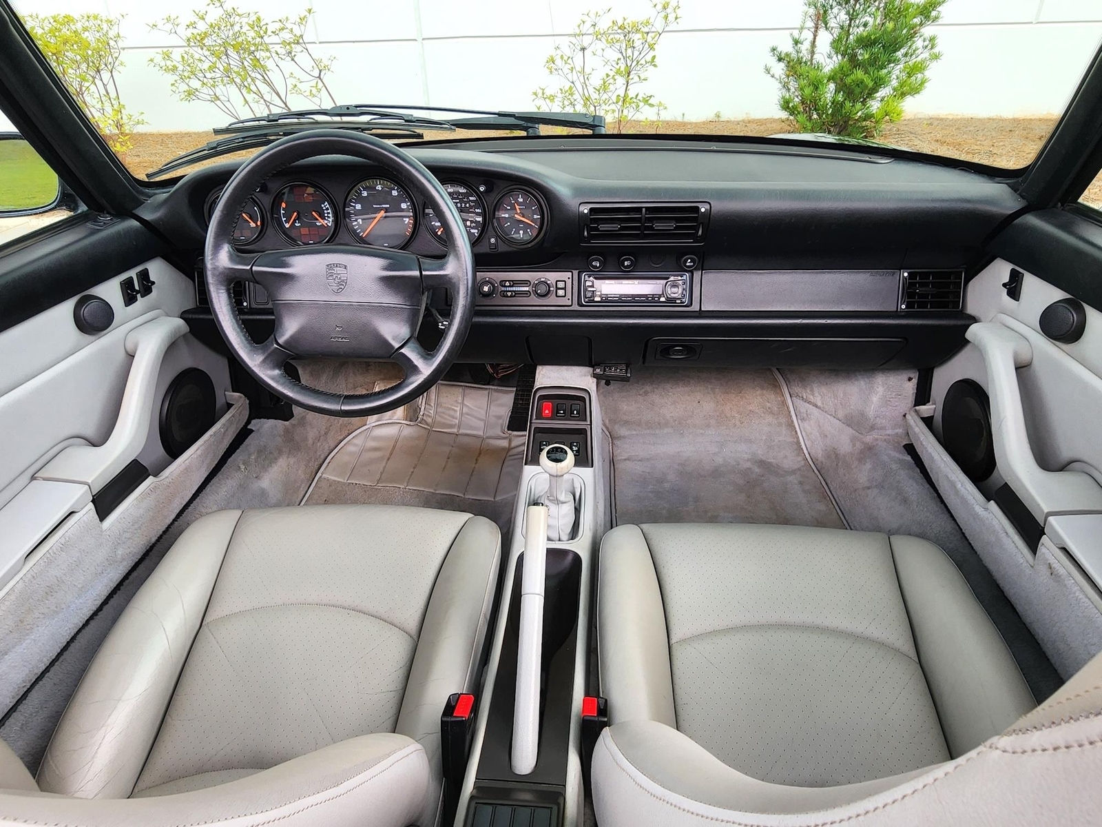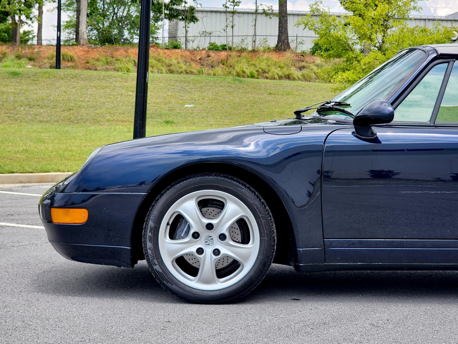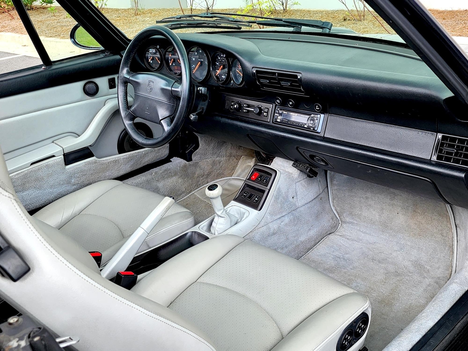 This 993 Cabriolet is an all around good looking and solid driving car. The car starts, runs, and drives perfectly. The power is all there! The clutch take-up is slip free, and the shifting action is smooth and continuous. There is no steering play and the car tracks perfectly straight. Braking is solid and the car stops on demand. The AC blows cold and everything is in working order. Work just completed consisted of new convertible transmission cables, AC recharge, and a gas treatment. The car is also fitted with new tires and a brand new windshield.