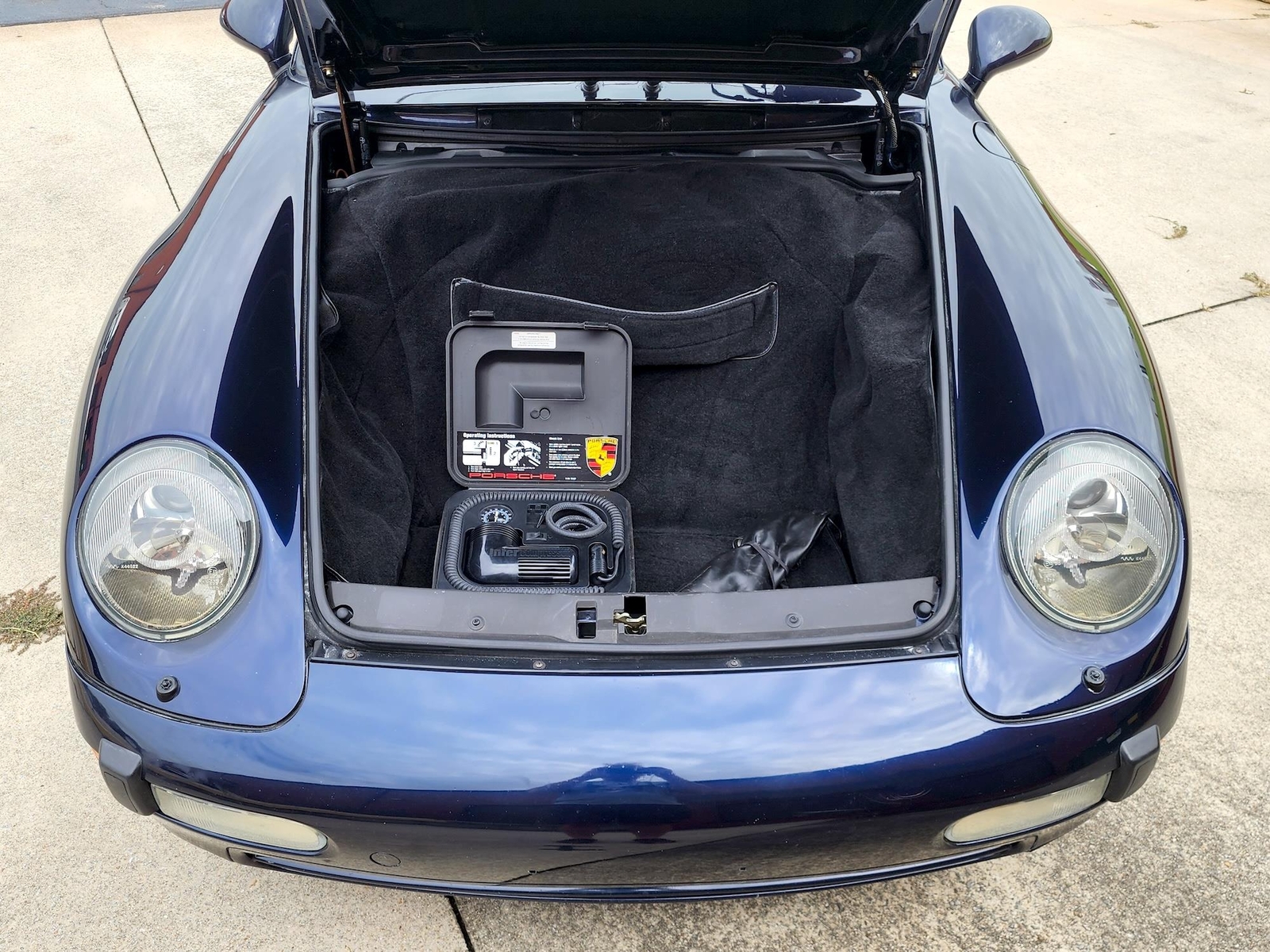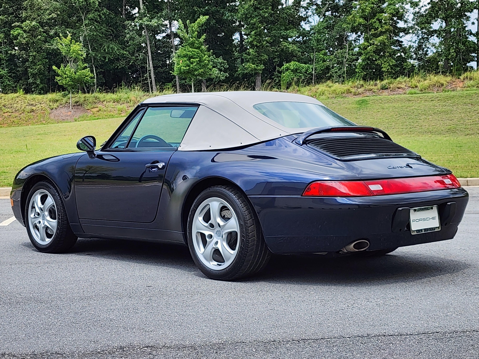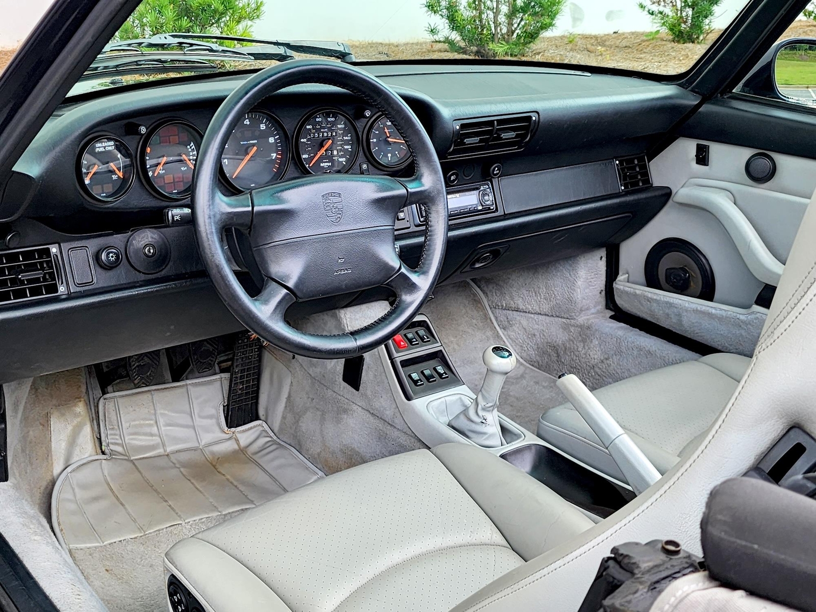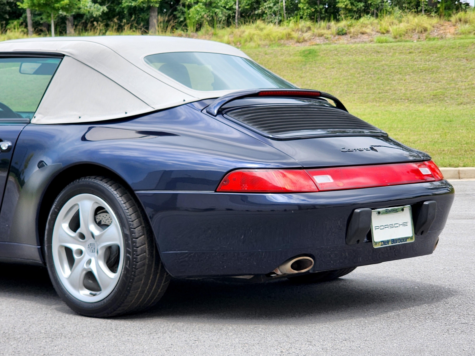 This 993 Cabriolet is an all around good looking and solid driving car. The car starts, runs, and drives perfectly. The power is all there! The clutch take-up is slip free, and the shifting action is smooth and continuous. There is no steering play and the car tracks perfectly straight. Braking is solid and the car stops on demand. The AC blows cold and everything is in working order. Work just completed consisted of new convertible transmission cables, AC recharge, and a gas treatment. The car is also fitted with new tires and a brand new windshield.
