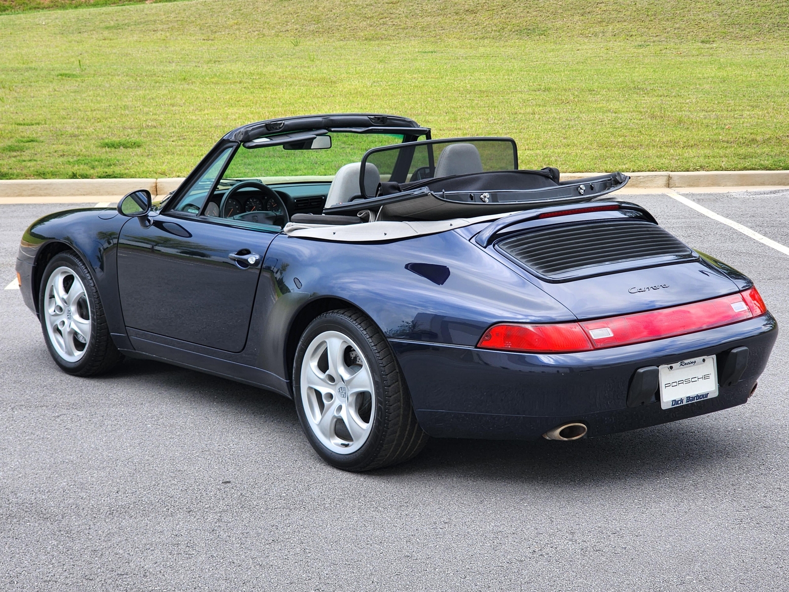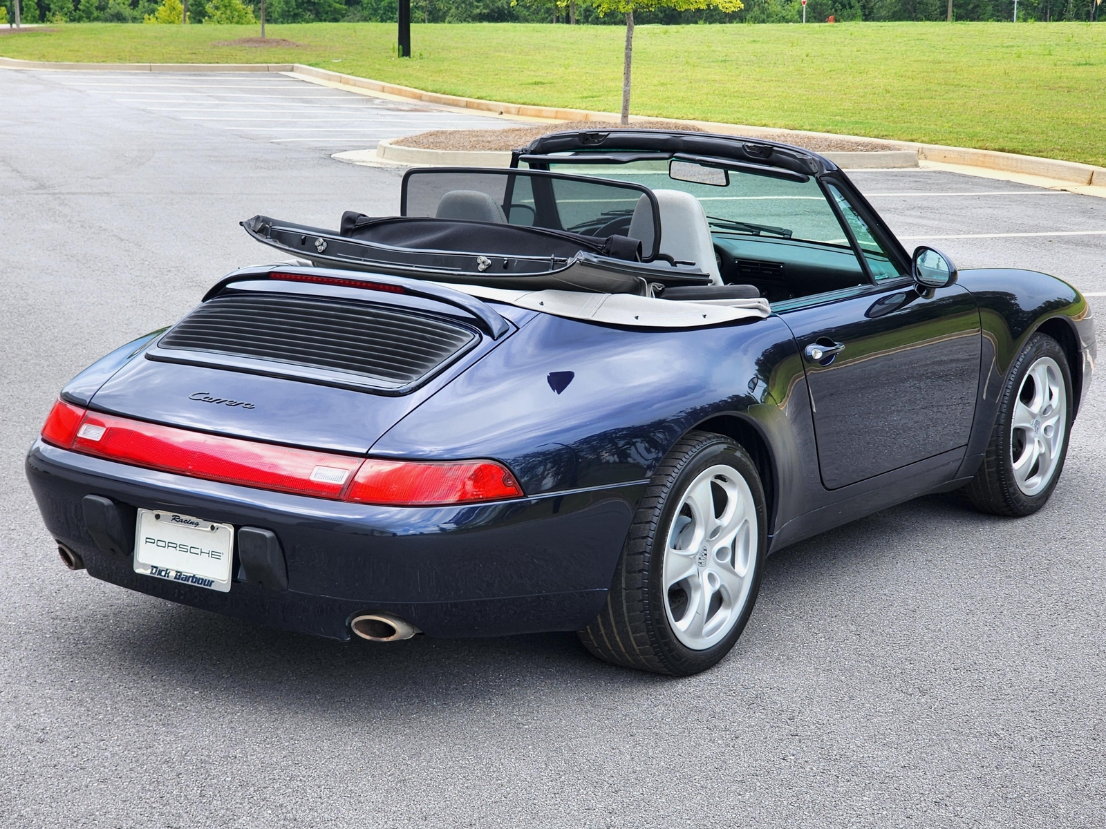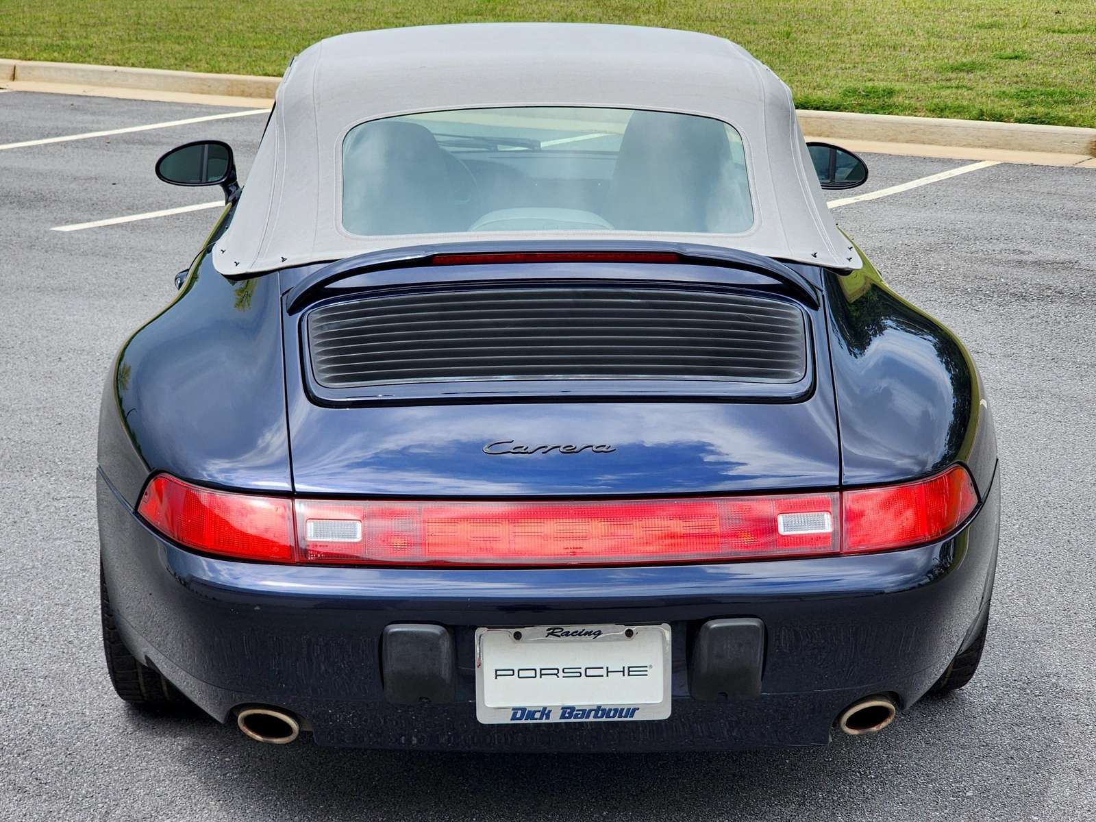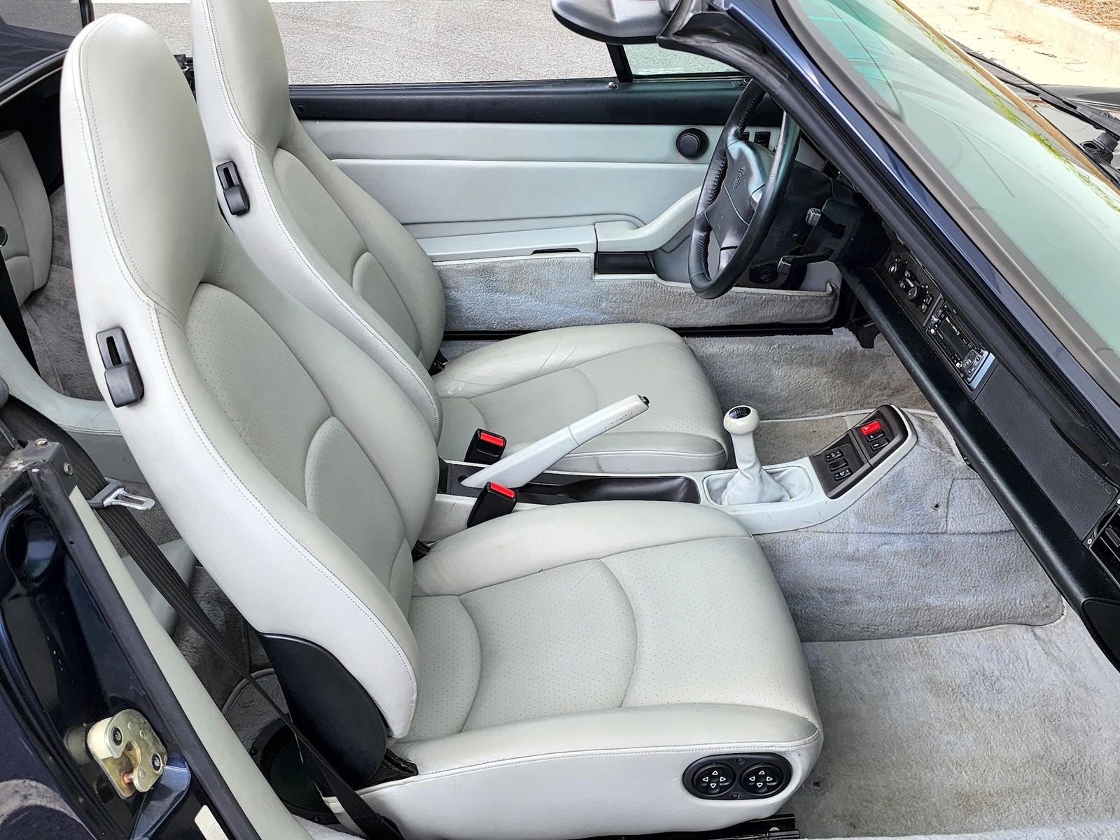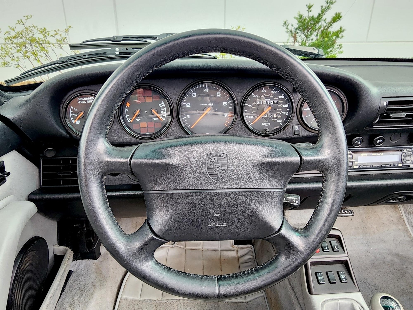 This 993 Cabriolet is an all around good looking and solid driving car. The car starts, runs, and drives perfectly. The power is all there! The clutch take-up is slip free, and the shifting action is smooth and continuous. There is no steering play and the car tracks perfectly straight. Braking is solid and the car stops on demand. The AC blows cold and everything is in working order. Work just completed consisted of new convertible transmission cables, AC recharge, and a gas treatment. The car is also fitted with new tires and a brand new windshield.