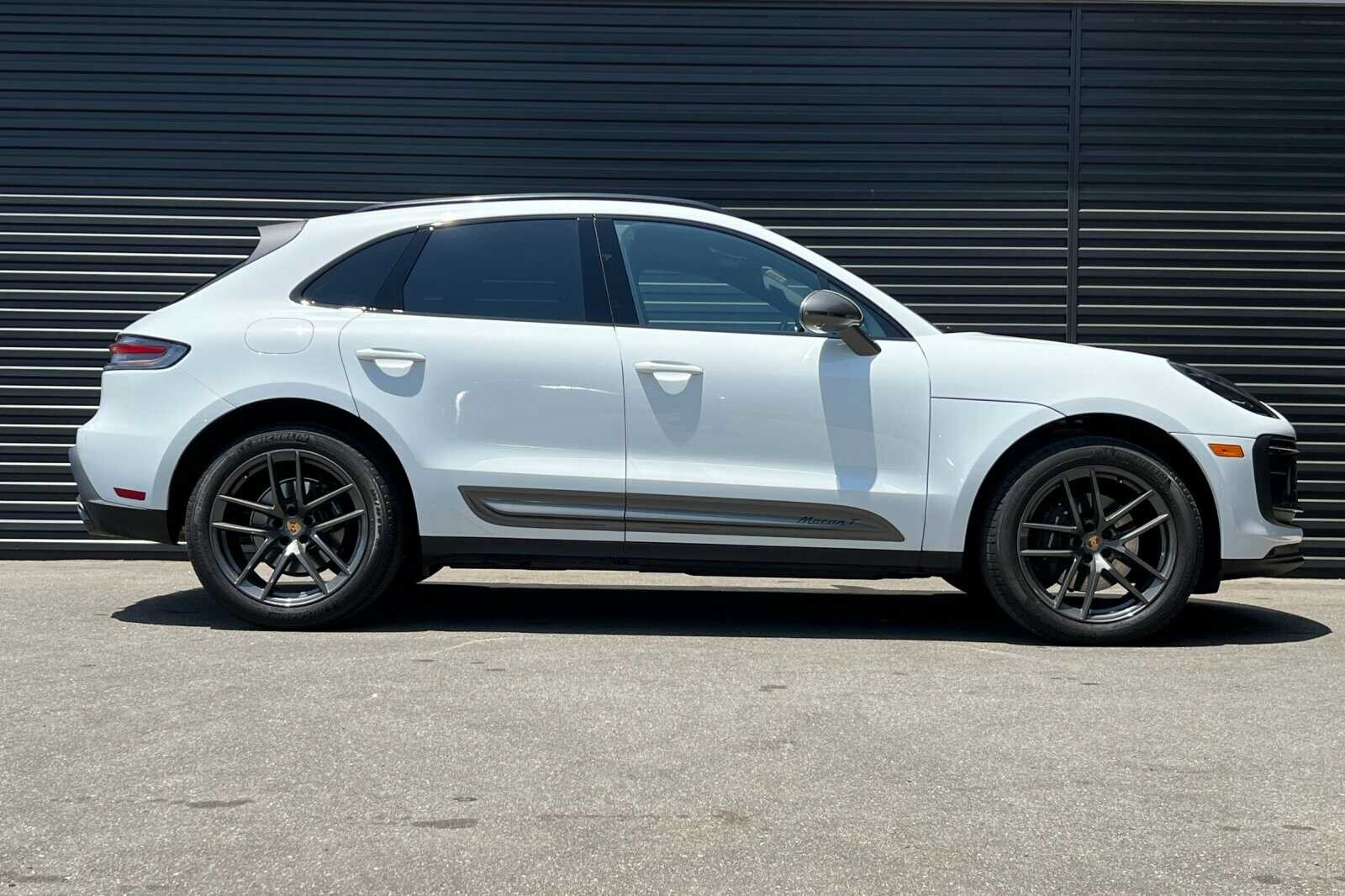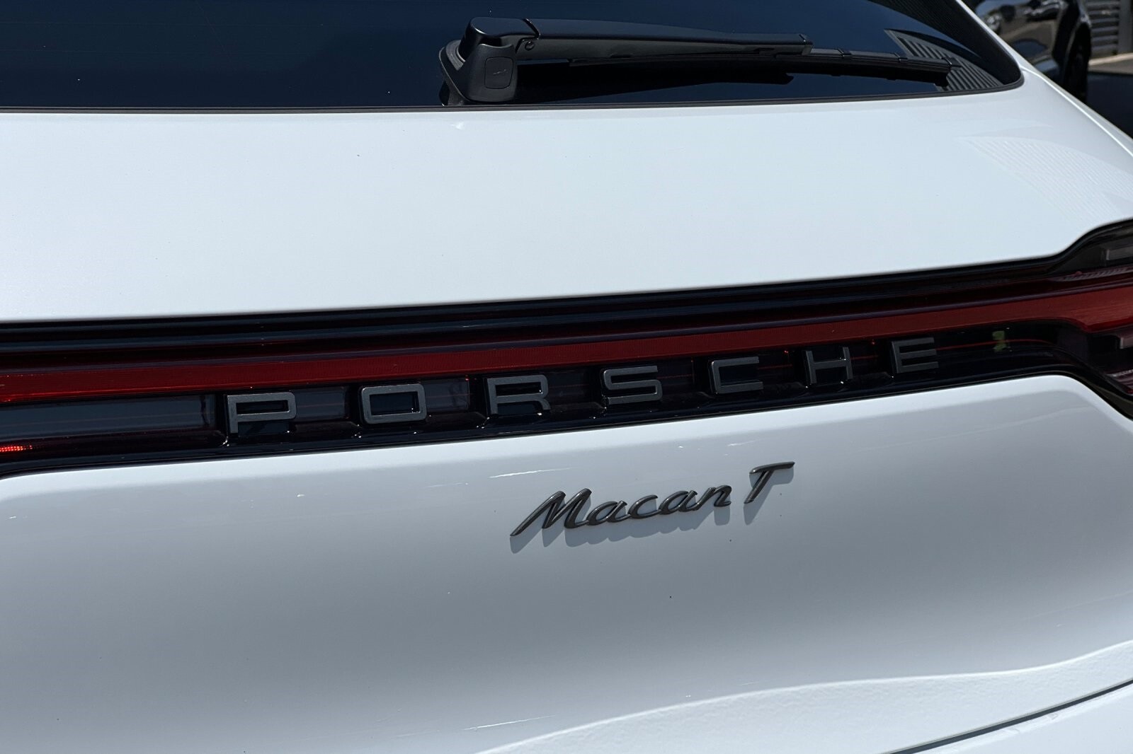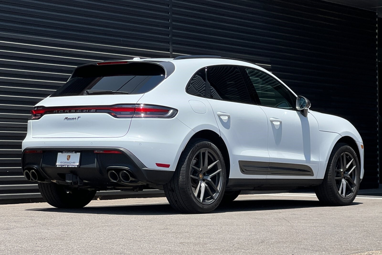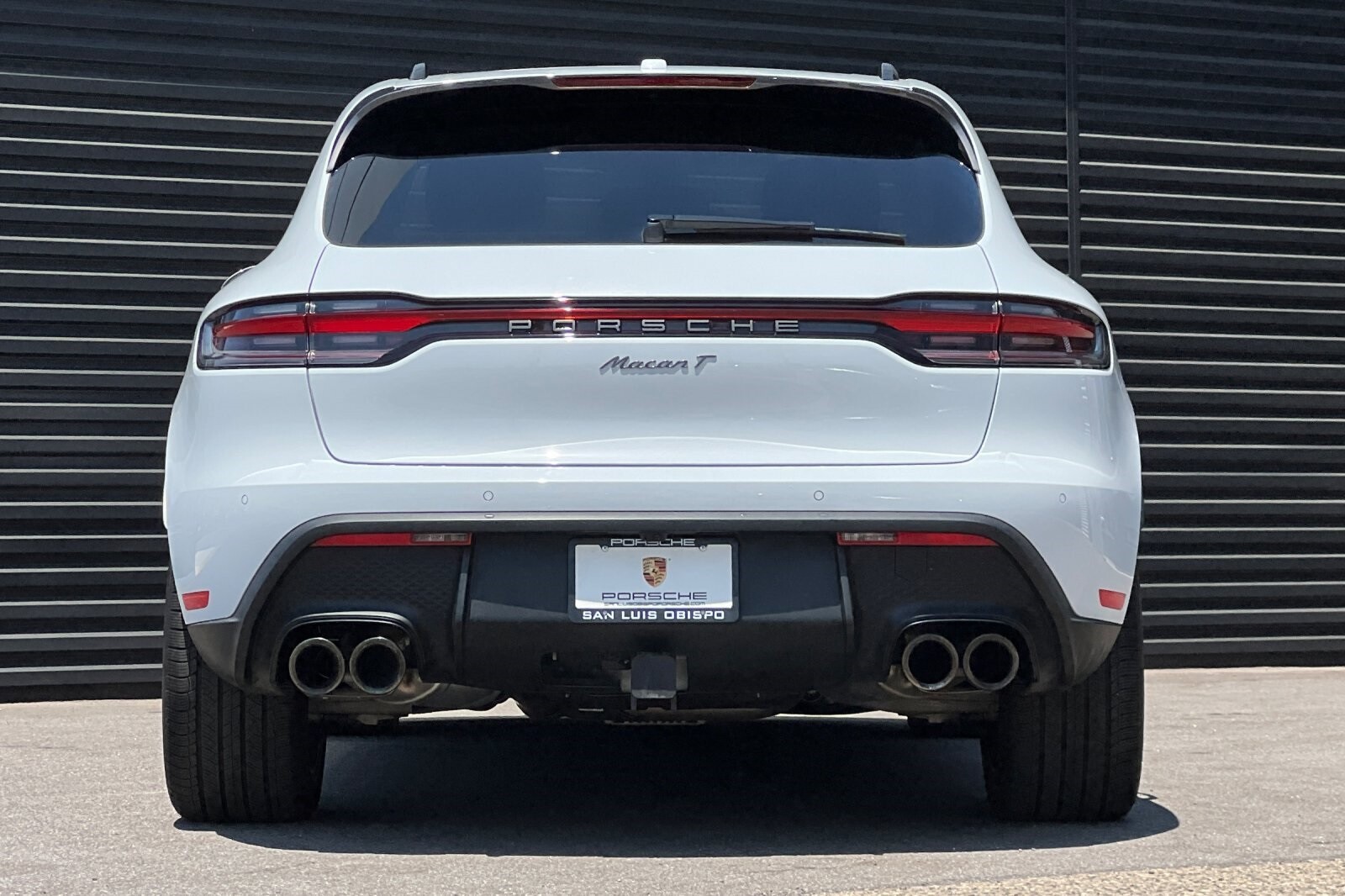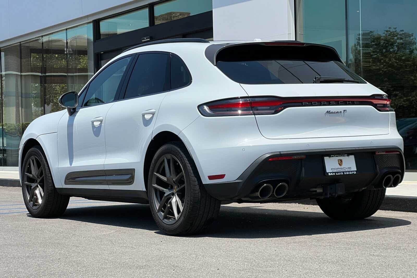 This Porsche San Luis Obispo 2023 Porsche Macan T AWD is well equipped and includes these features and benefits: 10 Speakers, 4-Wheel Disc Brakes, 4.67 Axle Ratio, ABS brakes, Air Conditioning, Alloy wheels, AM/FM radio: SiriusXM, Apple CarPlay & Android Auto, Auto-dimming door mirrors, Auto-dimming Rear-View mirror, Automatic temperature control, Brake assist, Bumpers: body-color, Delay-off headlights, Driver door bin, Driver vanity mirror, Dual front impact airbags, Dual front side impact airbags, Electronic Stability Control, Emergency communication system: Car Connect Services, Exterior Parking Camera Rear, Four wheel independent suspension, Front anti-roll bar, Front Bucket Seats, Front Center Armrest, Front dual zone A/C, Front reading lights, Fully automatic headlights, Garage door transmitter: HomeLink, Heated door mirrors, Heated front seats, Illuminated entry, Leather Shift Knob, Leather steering wheel, Low tire pressure warning, Navigation System, Occupant sensing airbag, Outside temperature display, Overhead airbag, Overhead console, Panic alarm, Passenger door bin, Passenger vanity mirror, Porsche Communication Management, Power door mirrors, Power driver seat, Power Liftgate, Power passenger seat, Power steering, Power windows, Radio data system, Rain sensing wipers, Rear air conditioning, Rear anti-roll bar, Rear reading lights, Rear seat center armrest, Rear side impact airbag, Rear window defroster, Rear window wiper, Remote keyless entry, Security system, Speed control, Speed-sensing steering, Split folding rear seat, Spoiler, Sport steering wheel, Steering wheel mounted audio controls, Tachometer, Telescoping steering wheel, Tilt steering wheel, Traction control, Trip computer, Turn signal indicator mirrors, and Variably intermittent wipers.