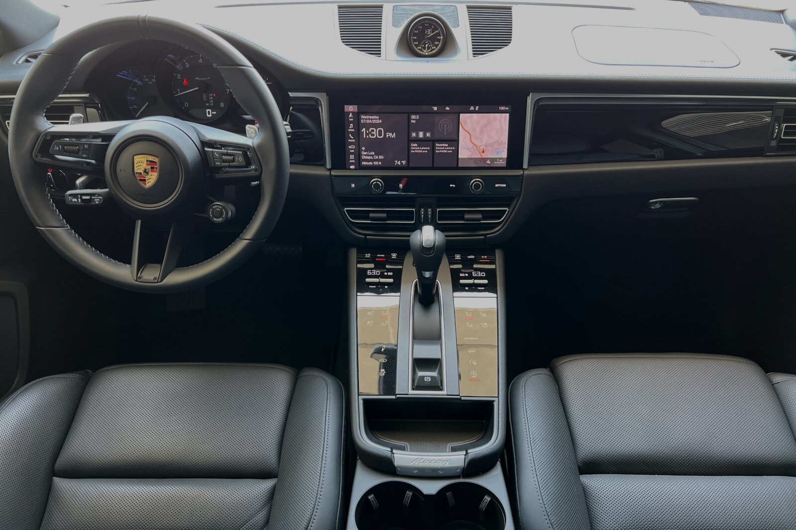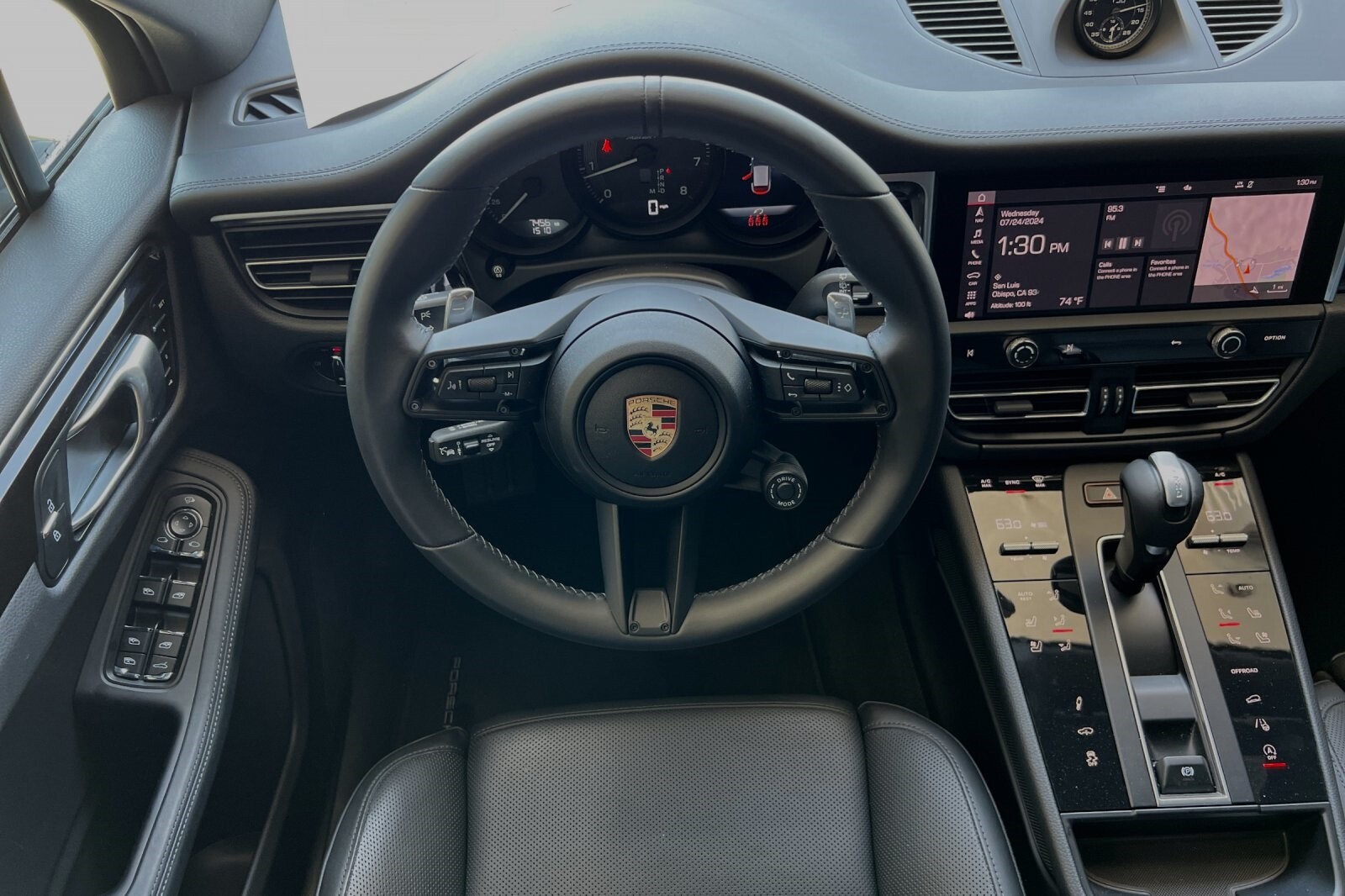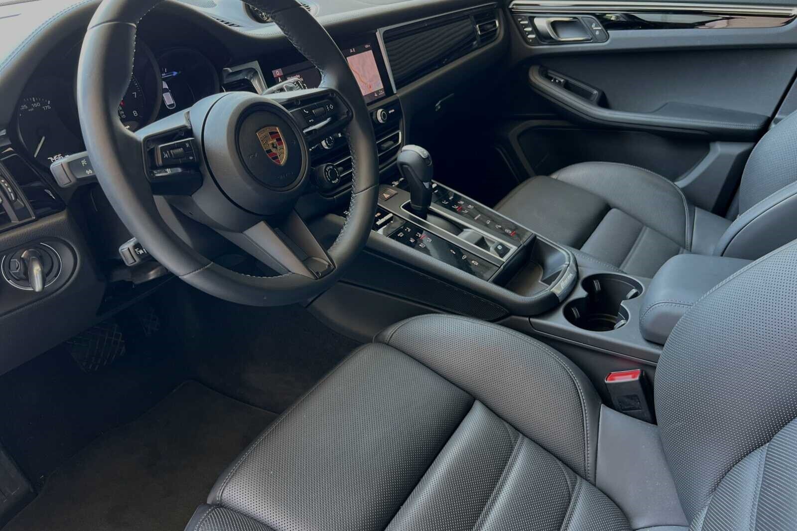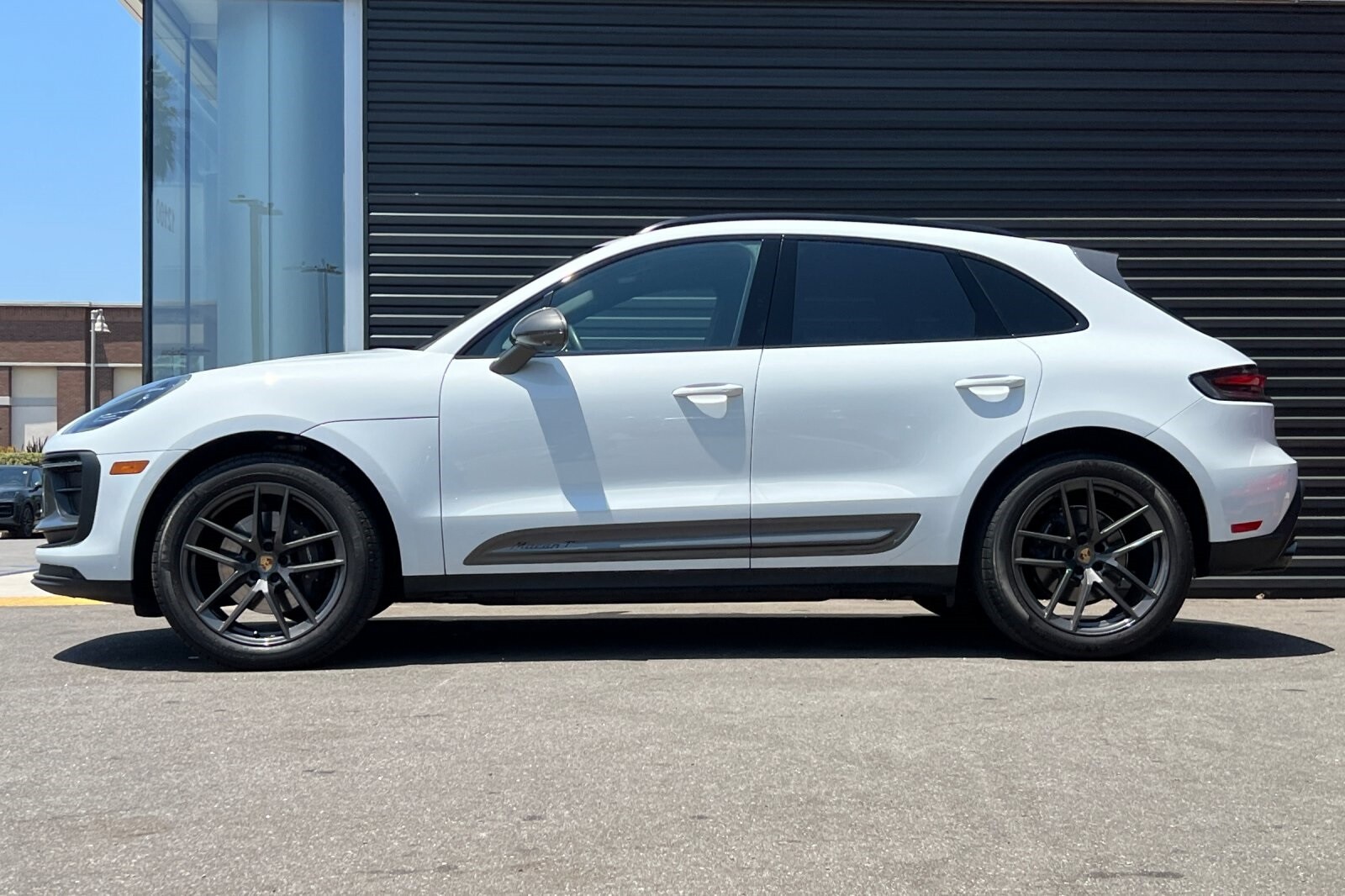This Porsche San Luis Obispo 2023 Porsche Macan T AWD is well equipped and includes these features and benefits: 10 Speakers, 4-Wheel Disc Brakes, 4.67 Axle Ratio, ABS brakes, Air Conditioning, Alloy wheels, AM/FM radio: SiriusXM, Apple CarPlay & Android Auto, Auto-dimming door mirrors, Auto-dimming Rear-View mirror, Automatic temperature control, Brake assist, Bumpers: body-color, Delay-off headlights, Driver door bin, Driver vanity mirror, Dual front impact airbags, Dual front side impact airbags, Electronic Stability Control, Emergency communication system: Car Connect Services, Exterior Parking Camera Rear, Four wheel independent suspension, Front anti-roll bar, Front Bucket Seats, Front Center Armrest, Front dual zone A/C, Front reading lights, Fully automatic headlights, Garage door transmitter: HomeLink, Heated door mirrors, Heated front seats, Illuminated entry, Leather Shift Knob, Leather steering wheel, Low tire pressure warning, Navigation System, Occupant sensing airbag, Outside temperature display, Overhead airbag, Overhead console, Panic alarm, Passenger door bin, Passenger vanity mirror, Porsche Communication Management, Power door mirrors, Power driver seat, Power Liftgate, Power passenger seat, Power steering, Power windows, Radio data system, Rain sensing wipers, Rear air conditioning, Rear anti-roll bar, Rear reading lights, Rear seat center armrest, Rear side impact airbag, Rear window defroster, Rear window wiper, Remote keyless entry, Security system, Speed control, Speed-sensing steering, Split folding rear seat, Spoiler, Sport steering wheel, Steering wheel mounted audio controls, Tachometer, Telescoping steering wheel, Tilt steering wheel, Traction control, Trip computer, Turn signal indicator mirrors, and Variably intermittent wipers.