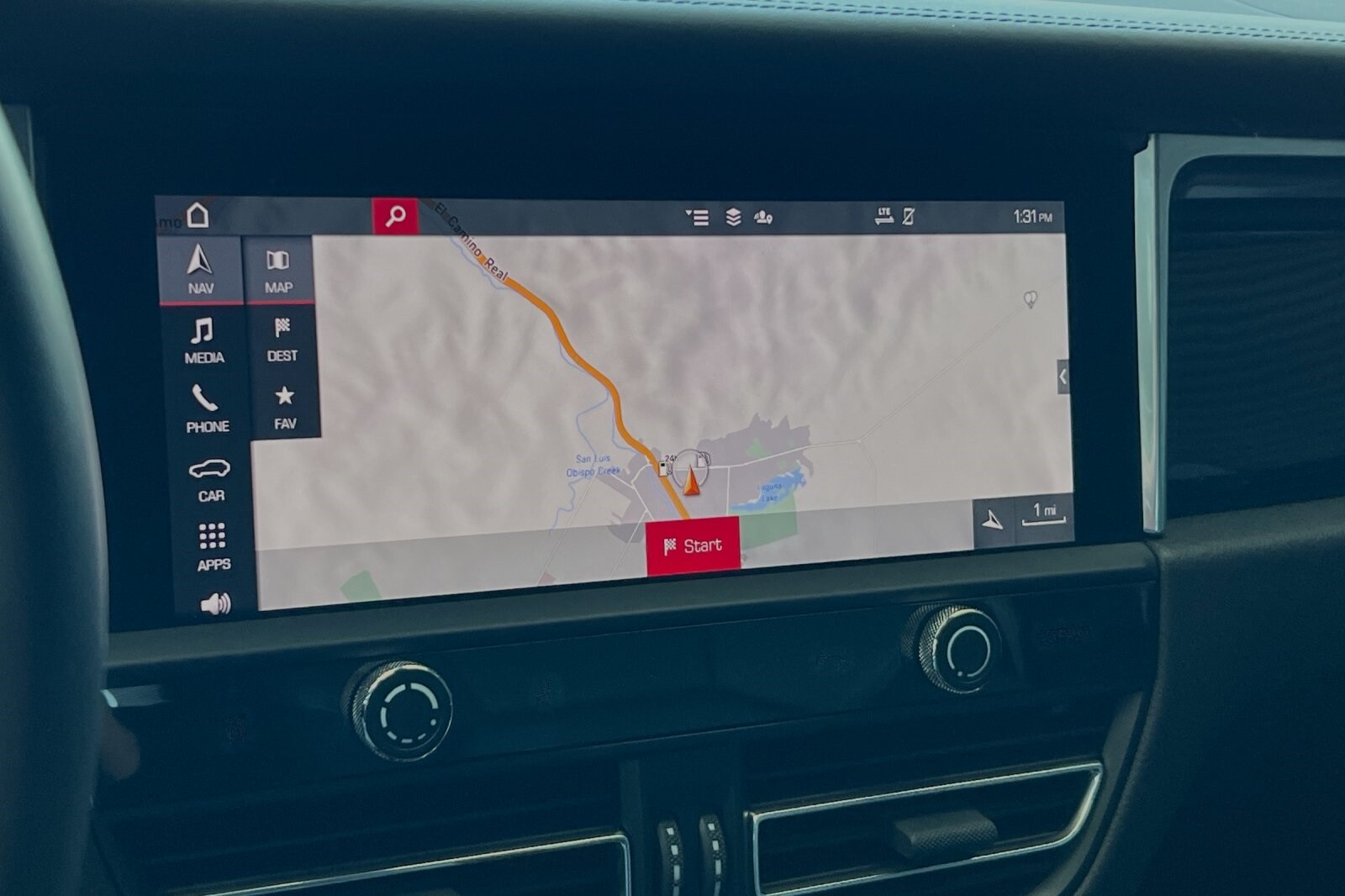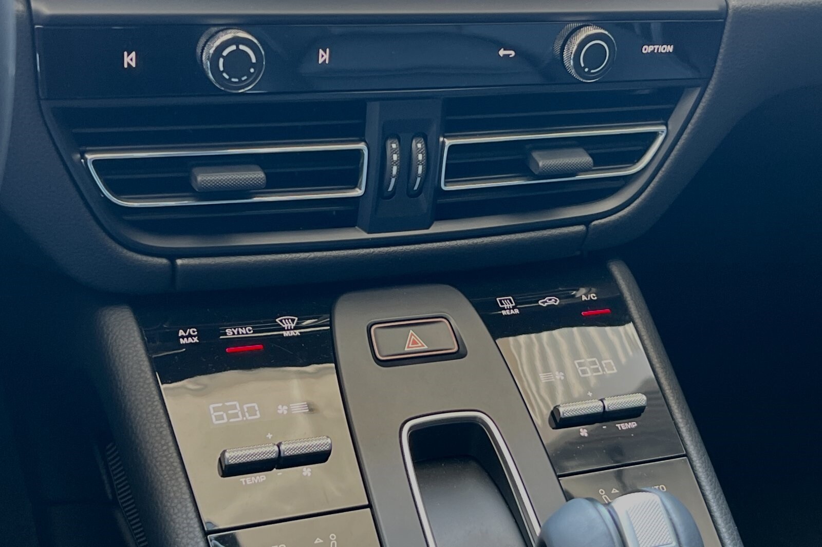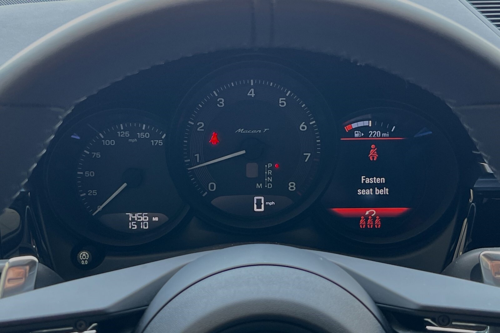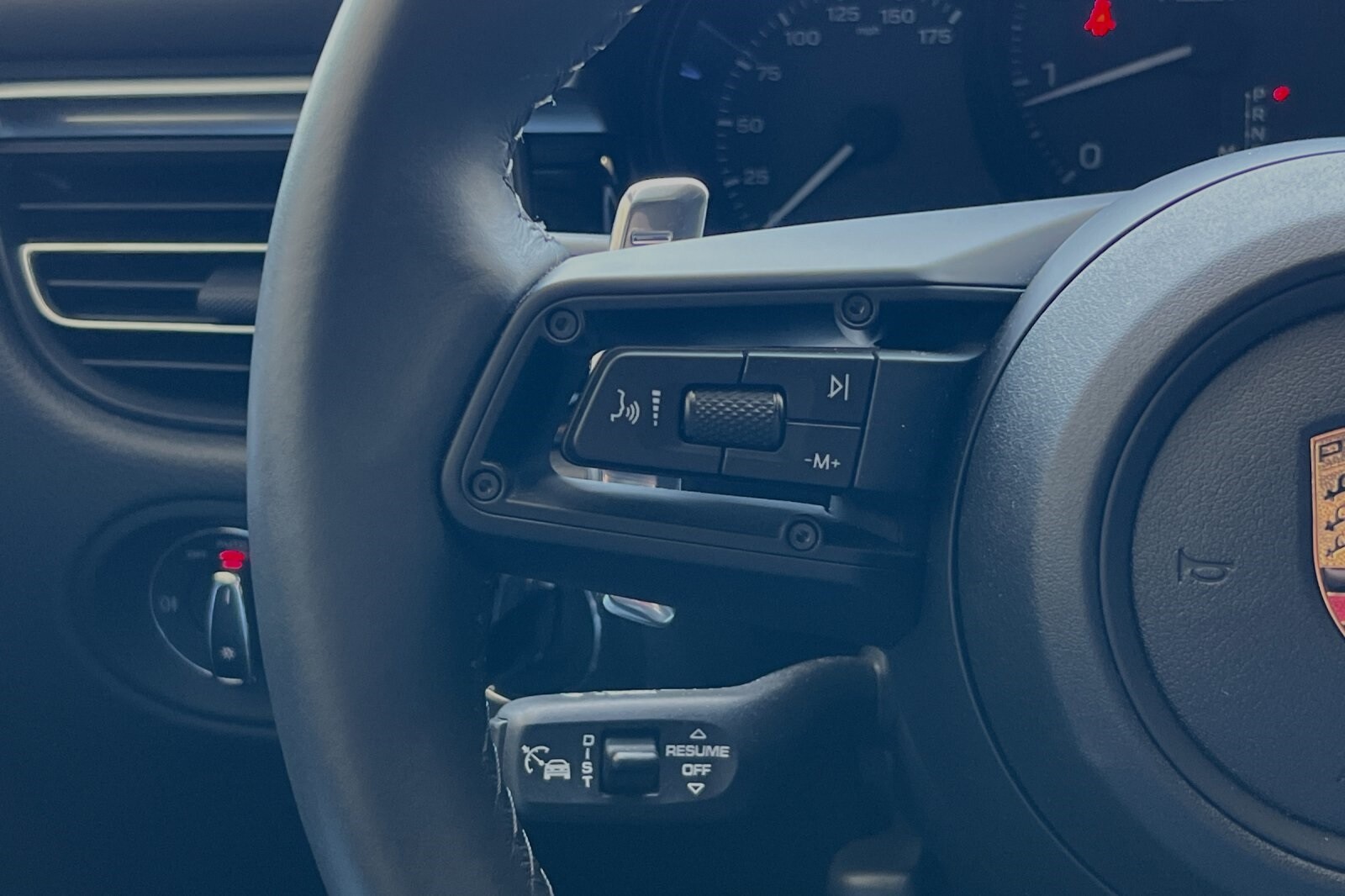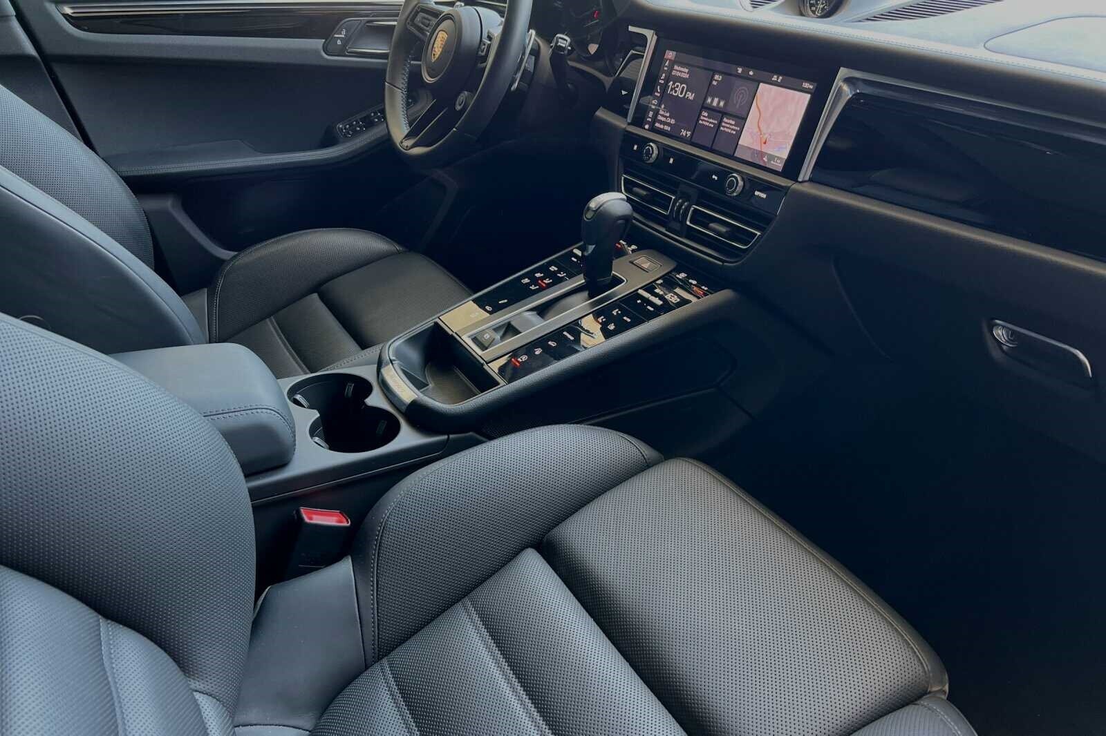 This Porsche San Luis Obispo 2023 Porsche Macan T AWD is well equipped and includes these features and benefits: 10 Speakers, 4-Wheel Disc Brakes, 4.67 Axle Ratio, ABS brakes, Air Conditioning, Alloy wheels, AM/FM radio: SiriusXM, Apple CarPlay & Android Auto, Auto-dimming door mirrors, Auto-dimming Rear-View mirror, Automatic temperature control, Brake assist, Bumpers: body-color, Delay-off headlights, Driver door bin, Driver vanity mirror, Dual front impact airbags, Dual front side impact airbags, Electronic Stability Control, Emergency communication system: Car Connect Services, Exterior Parking Camera Rear, Four wheel independent suspension, Front anti-roll bar, Front Bucket Seats, Front Center Armrest, Front dual zone A/C, Front reading lights, Fully automatic headlights, Garage door transmitter: HomeLink, Heated door mirrors, Heated front seats, Illuminated entry, Leather Shift Knob, Leather steering wheel, Low tire pressure warning, Navigation System, Occupant sensing airbag, Outside temperature display, Overhead airbag, Overhead console, Panic alarm, Passenger door bin, Passenger vanity mirror, Porsche Communication Management, Power door mirrors, Power driver seat, Power Liftgate, Power passenger seat, Power steering, Power windows, Radio data system, Rain sensing wipers, Rear air conditioning, Rear anti-roll bar, Rear reading lights, Rear seat center armrest, Rear side impact airbag, Rear window defroster, Rear window wiper, Remote keyless entry, Security system, Speed control, Speed-sensing steering, Split folding rear seat, Spoiler, Sport steering wheel, Steering wheel mounted audio controls, Tachometer, Telescoping steering wheel, Tilt steering wheel, Traction control, Trip computer, Turn signal indicator mirrors, and Variably intermittent wipers.