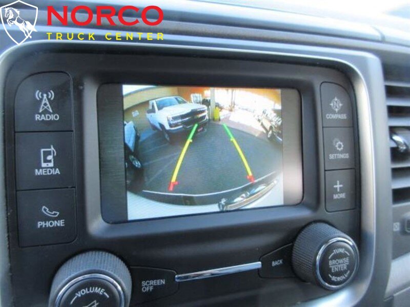 INSTALLED FEATURES: Front air conditioning, Front air conditioning zones: single, Airbag deactivation: occupant sensing passenger, Front airbags: dual, Side airbags: front, Side curtain airbags: front / rear, Antenna type: mast, Auxiliary audio input: USB / jack, Radio: AM/FM, Speed sensitive volume control, Total speakers: 6, ABS: 4-wheel, Brake drying, Braking assist, Electronic brakeforce distribution, Front brake diameter: 13.2, Front brake type: ventilated disc, Front brake width: 1.1, Power brakes, Rear brake diameter: 13.8, Rear brake type: ventilated disc, Rear brake width: 0.87, Armrests: front center, Floor material: rubber/vinyl, Steering wheel trim: urethane, Assist handle: front / rear, Cruise control, Cupholders: front / rear, One-touch windows: 2, Power outlet(s): 12V, Power steering, Power windows: lockout button, Rearview mirror: manual day/night, Retained accessory power, Steering wheel: tilt, Steering wheel mounted controls: cruise control, Storage: door pockets / under rear seats, Sun visors, Axle ratio: 3.21, Alternator: 160 amps, Auxiliary engine cooler, Battery: maintenance-free, Battery rating: 730 CCA, Emissions: 50 state, Active grille shutters, Door handle color: black, Front bumper color: black, Grille color: black, Mirror color: black, Pickup bed light, Pickup bed liner: spray-on, Rear bumper color: black, Tailgate: removable, Window trim: black, Infotainment screen size: 3 in., Clock, Digital odometer, Engine hour meter, Gauge: tachometer, Instrument cluster screen size: 3.5 in., Multi-function display, Warnings and reminders: low fuel level / low oil level / maintenance due / tire fill alert, Headlights: auto delay off / auto on/off / halogen / quad headlights, Side mirror adjustments: manual folding / power, Side mirrors: heated, Body side reinforcements: side impact door beams, Child safety door locks, Child seat anchors: LATCH system, Crumple zones: front, Energy absorbing steering column, Emergency locking retractors: front / rear, Front seatbelts: 3-point, Rear seatbelts: 3-point, Seatbelt force limiters: front, Seatbelt pretensioners: front, Seatbelt warning sensor: front, Driver seat manual adjustments: reclining, Front headrests: adjustable / 2, Front seat type: 40-20-40 split bench, Passenger seat manual adjustments: reclining, Rear headrests: adjustable / 3, Rear seat folding: folds up, Rear seat type: bench, Upholstery: vinyl, Anti-theft system: engine immobilizer, Power door locks, Rolling code security: key, Hill holder control, Roll stability control, Stability control, Traction control, Trailer stability control, Steering ratio: 17.9, Turns lock-to-lock: 3.3, Front shock type: gas, Front spring type: coil, Front stabilizer bar, Front struts, Front suspension classification: independent, Front suspension type: short and long arm, Rear shock type: gas, Rear spring type: coil, Rear stabilizer bar, Rear suspension classification: solid live axle, Rear suspension type: multi-link, Spare tire mount location: underbody, Spare tire size: full-size matching, Spare wheel type: steel, Tire Pressure Monitoring System, Tire type: all season, Wheels: steel, Auxiliary transmission fluid cooler, Trailer hitch: Class IV, Trailer wiring: 4-pin / 7-pin, Front wipers: variable intermittent, Power windows, Rear privacy glass
