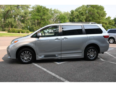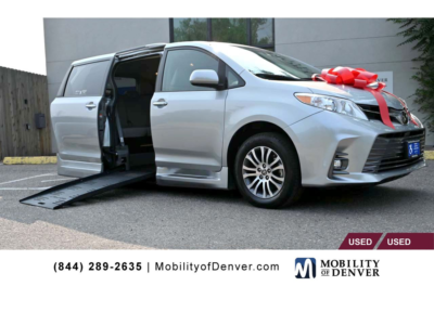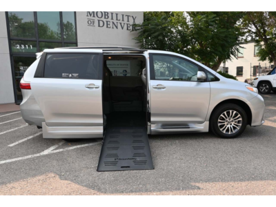 Door Opening Height: 56" and width: 29.25". 2020 Toyota Sienna XLE Premium BraunAbility Rampvan XT Power Side Entry van for sale. Built By Braun, this fold out side entry seamlessly combines the Sienna’s stylish exterior with extended cabin space without compromising safety or handling. A wheelchair driver capable vehicle, the front seats are fully removable. This conversion features a full-length 3rd-row seat bench with stow-away footrest, a power fold-out ramp is easily deployed and stowed with the click of the OEM Toyota Key fob. This great looking disability equipped handicap wheelchair accessible ramp van is in good shape and features: Silver exterior, Gray leather interior, alloy wheels, fog lights, tires have 90% tread life left, 3-Zone Climate Control, front step flares, 4.2in LCD Display, AM/FM/CD/Satellite system with Bluetooth, AUX port, USB ports, steering wheel controls, moonroof, rear entertainment system, power windows, mirrors, and locks, key-less remote, Radar cruise control, backup camera, power lift gate, stability control, 4-wheel ABS system, spare tire with tools, smooth and efficient 3.5L 6-cylinder Toyota motor with front wheel drive, and much more. This vehicle is currently available for sale at Mobility of Denver, located at: 2311 S Platte River Drive, Denver CO 80223. We don't charge a Dealer Handling Fee and are now your mobility one-stop-shop. Just give us a call as we offer it all: sales, service, parts, and rentals. Open M-F 9am - 6pm. Sat by appt. Call 303-351-7904.