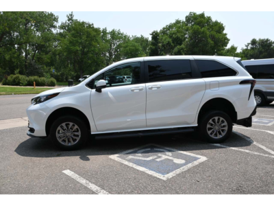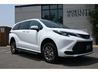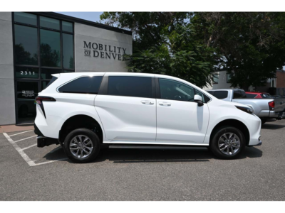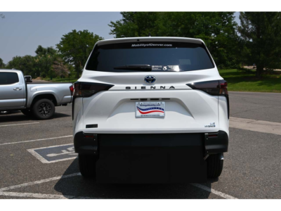 Door Opening Height: 57" and width: 39.5". IN-STOCK. *Qualifies for a $1,000 Toyota Mobility Rebate. New 2024 Toyota Sienna LE Vantage Mobility Hybrid Manual Fold-Out Ramp Rear Entry Ramp van for sale. Up to 120-month finance available, WAC. Built by Vantage Mobility, this feat of engineering is a sight to behold. A true disability equipped handicap wheelchair accessible ramp van that was designed with simple & easy to use in mind with a large ramp and tons of interior room. ADA compliant 57 inch height clearance rear entry, low maintenance durable no-skid ramp, long channel cut lowered floor for up to 2 wheelchairs for 3+2 seating with a fixed bucket seats in the middle row. Q'Straint wheelchair tie-down straps and floor rails throughout. This brand new used Sienna LE also comes packed with great features from Toyota: beautiful white exterior, gray cloth interior, Toyota Safety Sense 2.0 w/Pre-Collision Sys w/Pedestrian Detection, Full-Speed Range Dynamic Radar Cruise Control, Lane Departure Alert w/Steering Assist, Lane Tracing Assist, Automatic High Beams, Road Sign Assist STAR Safety System LATCH-Lower Anchor & Tether for Children Blind Spot Monitor w/ RCTA Remote Keyless Entry & Push Button Start Connected Services Capable. 4G network dependent, LED Headlights with Auto On/Off Feature Dual Power Sliding Side Doors Color-Keyed Power Outside Heated Mirrors with Integrated Blind Spot Warning 17-in Wheels, Audio- 9-in. Touchscreen w/6-Speakers, Apple CarPlay & Android Auto Compatible SiriusXM w/3-Month Platinum Plan Trial USB Media Port, 6 USB Charge Ports Three Zone Auto Climate Control w/ Rear Cabin Controls Fabric-Trimmed Seats, Power Driver Seat, smooth and efficient 2.5L 6-cylinder Hybrid Toyota powertrain with front wheel drive, and much more. This vehicle is currently available for sale at Mobility of Denver, located at: 2311 S Platte River Drive, Denver CO 80223. We don't charge a Dealer Handling Fee and are now your mobility one-stop-shop. Just give us a call as we offer it all: sales, service, parts, and rentals. Open M-F 9am - 6pm. Sat by appt. Call 303-351-7379
