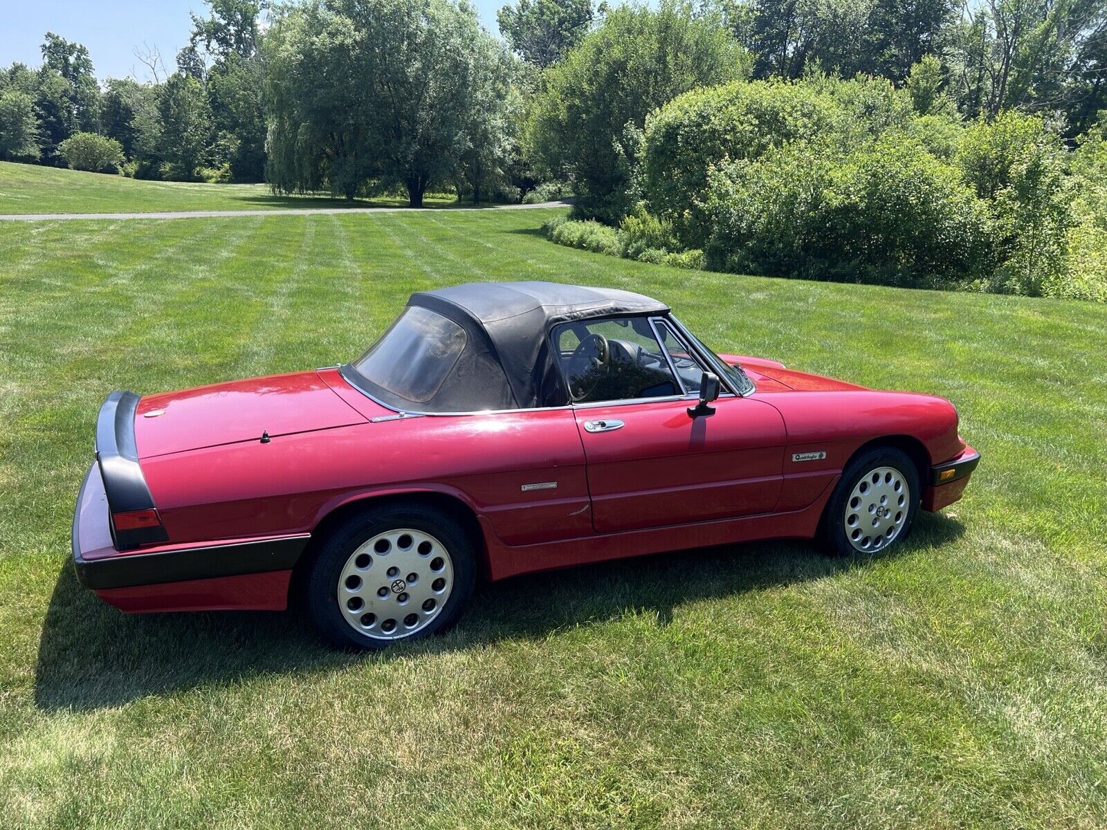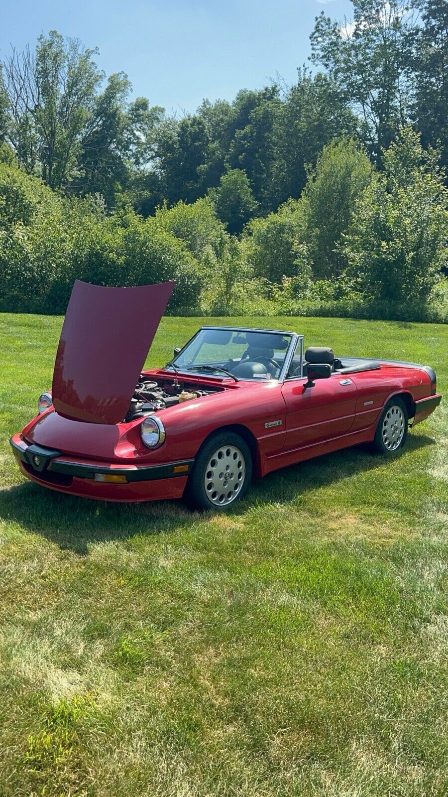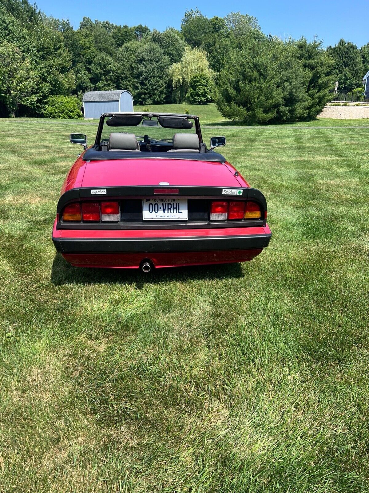 1988 Alfa Romeo Spider Quadrifoglio Verde Pininfarina generation 3. This car is a solid, rust free Southern car. It has a soft top and a hard top. There is no rust or rot underneath. There are dings and paint chips here and there but you won’t find a more solid Alfa.