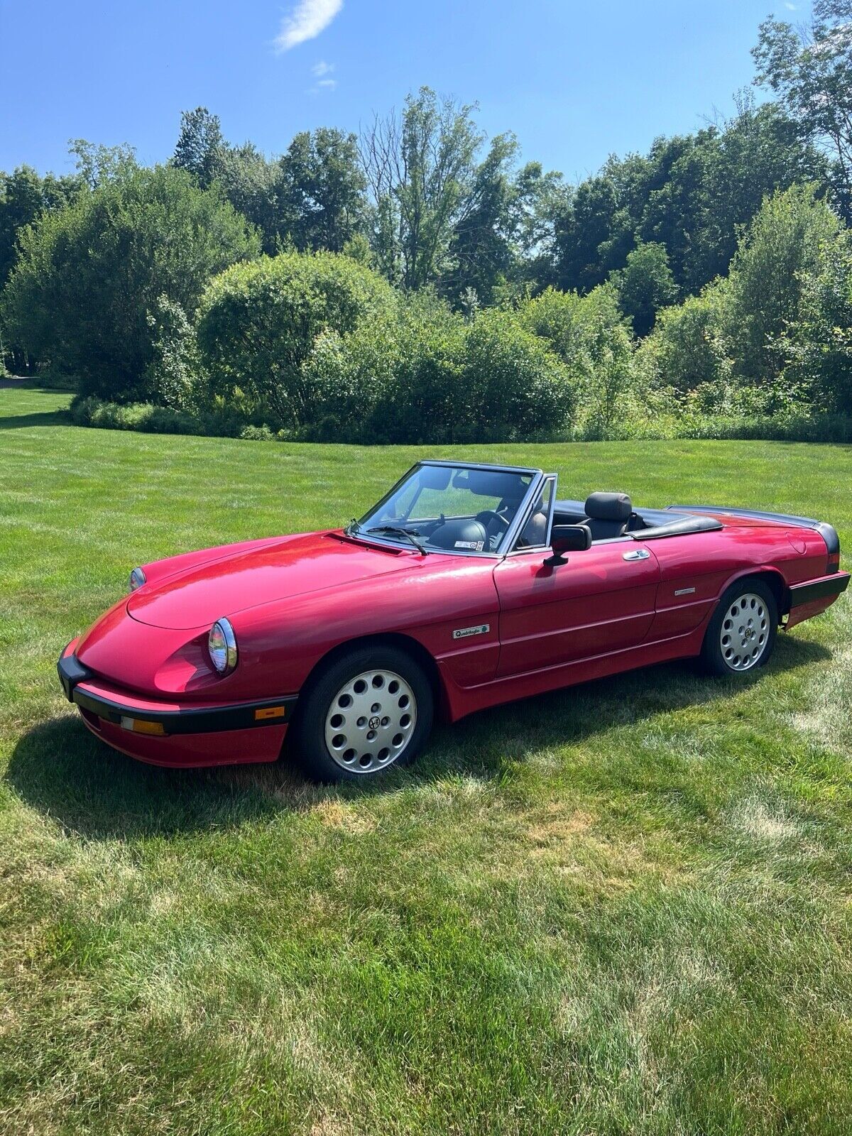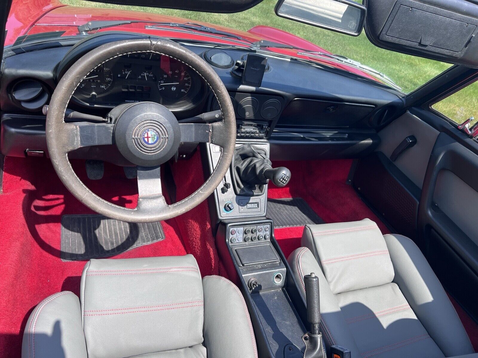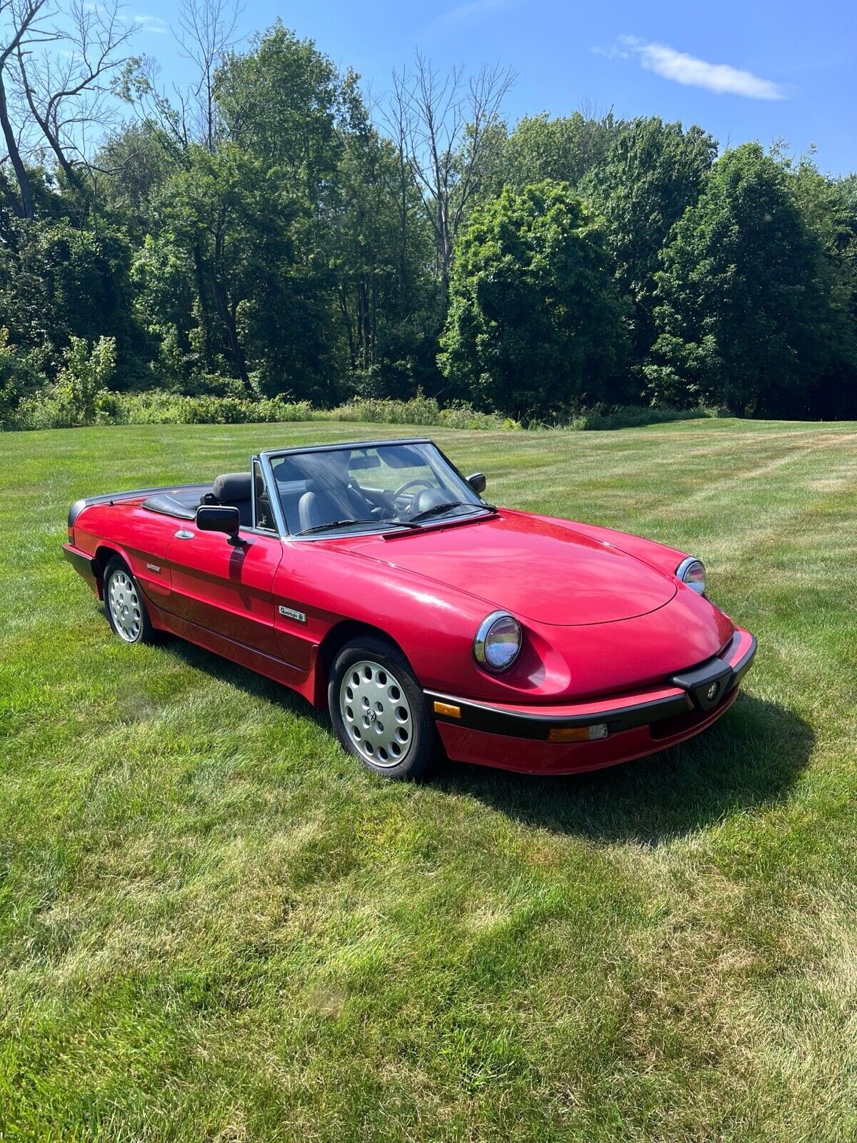 1988 Alfa Romeo Spider Quadrifoglio Verde Pininfarina generation 3. This car is a solid, rust free Southern car. It has a soft top and a hard top. There is no rust or rot underneath. There are dings and paint chips here and there but you won’t find a more solid Alfa.