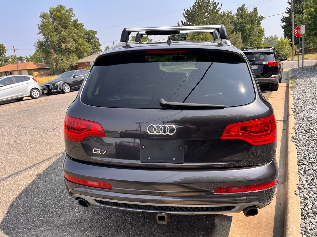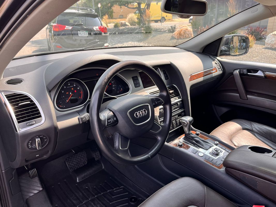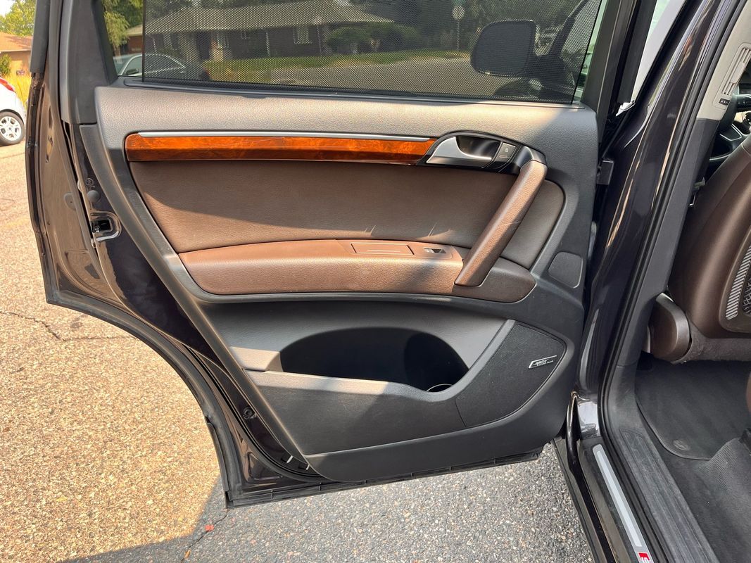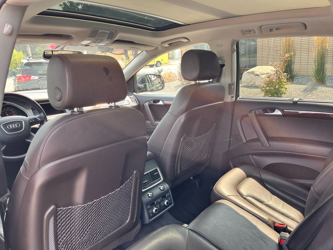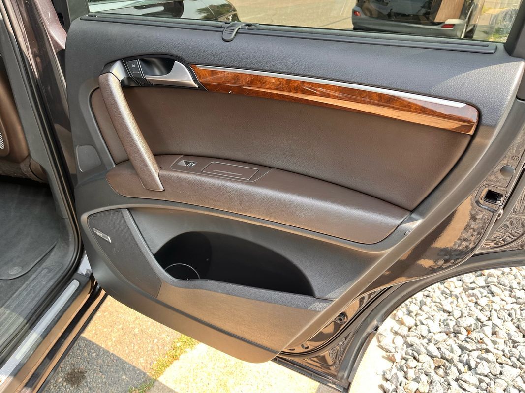 2013 Audi Q7 Quattro finished in charcoal gray exterior over espresso brown leather interior. This is the factory supercharged six-cylinder with the Quattro all-wheel-drive system. Has nice factory upgrade options like: keyless entry, keyless go, third row seat, panorama sunroof, heated and cooled front seats, heatedrear seats, backup camera, power liftgate, and so much more. the body and paint are in good shape with some small chips from use over the years. Call Weisco Motorcars for more info or to set up a time to stop by for a look over the Q7.