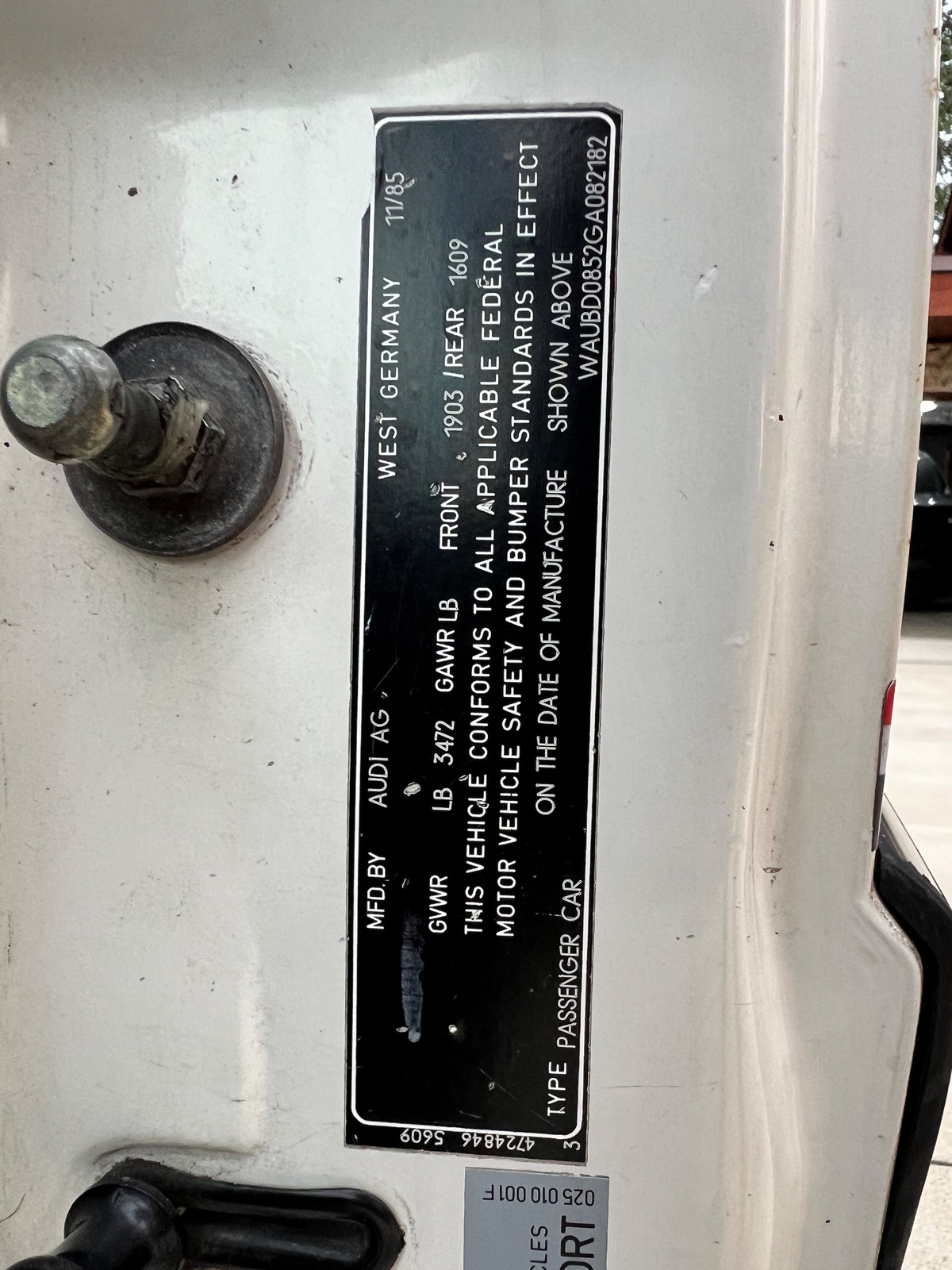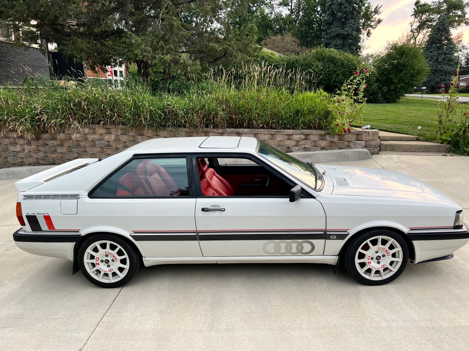 1986 Audi Coupe GTAlpine White Exterior with Red Interior