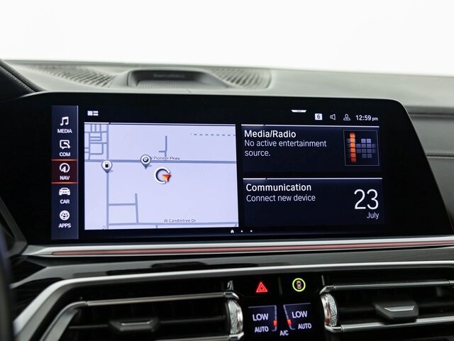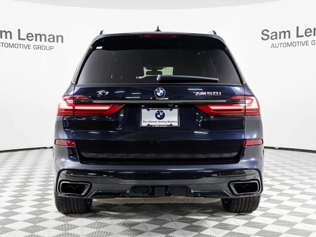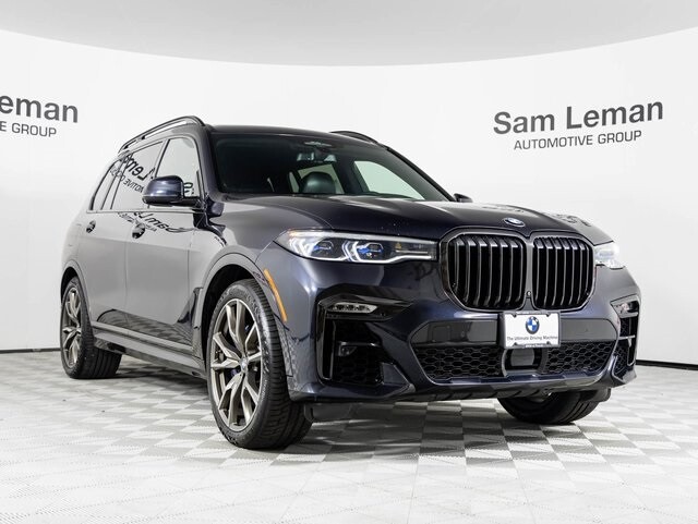 This Will Not be Available Long! With REAR SEAT ENTERTAINMENT This Recent Arrival! Drenched in Carbon Black Metallic 2020 BMW X7 M50i is a 1-Owner, Local Trade-In, Accident-Free CARFAX, Non-Smoker, All-Wheel Drive / AWD, Executive Package, Cold Weather Package, Driver Assistance Package, Luxury Seating Package, Shadowline Package, Bowers Wilkins sound system, Panoramic Sky Lounge LED Roof, Heated Front / Rear Seats, Cooled / Ventilated Seats, 22 Rims, Apple CarPlay Compatibility, Front Massaging Seats, Heads-Up Display, Heated Front Seats Armrests & Steering Wheel. and much more!!