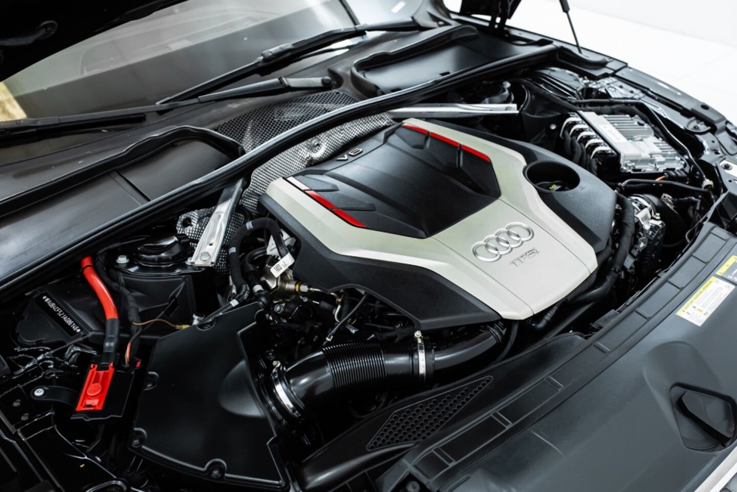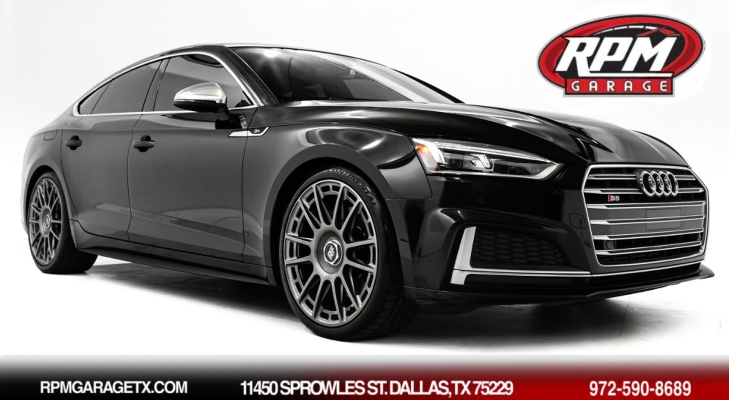 This 2018 Audi S5 Sportback Premium Plus is a capable sedan that embodies many of the best qualities of German-designed luxury cars. Under the hood is a turbocharged 3.0-liter V6 engine that produces 354 horsepower and 369 lb-ft of torque, all of which is sent through an eight-speed automatic transmission to all four wheels. This sleek machine comes equipped with 20" Rotiform RSE wheels and is finished in Mythos Black Metallic, a sharp color that enhances the car's curbside appeal even further. In the interior, this Premium Plus-trimmed S5 offers heated leather "S5" bucket seats, a digital gauge cluster, selectable drive modes, carbon fiber interior trim pieces, multi-zone A/C, a flat-bottomed leather "S5" steering wheel, and an infotainment system with Bluetooth, navigation, apps, phone connectivity, AUX, Apple CarPlay, and a backup camera, truly making this car the complete package.