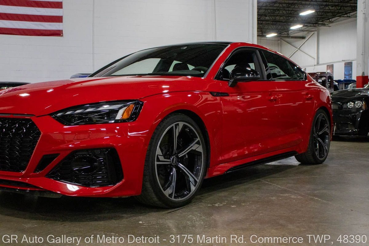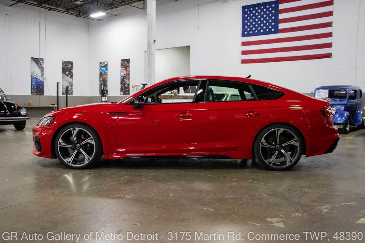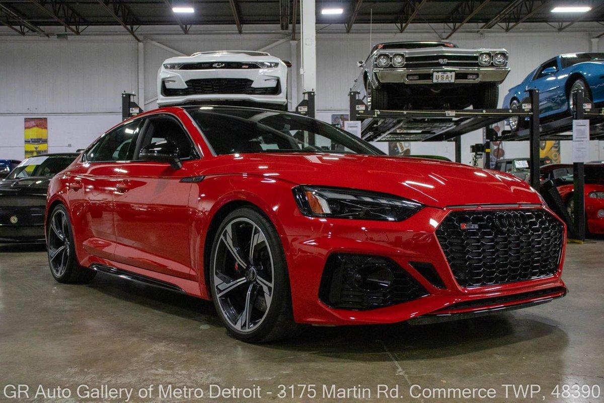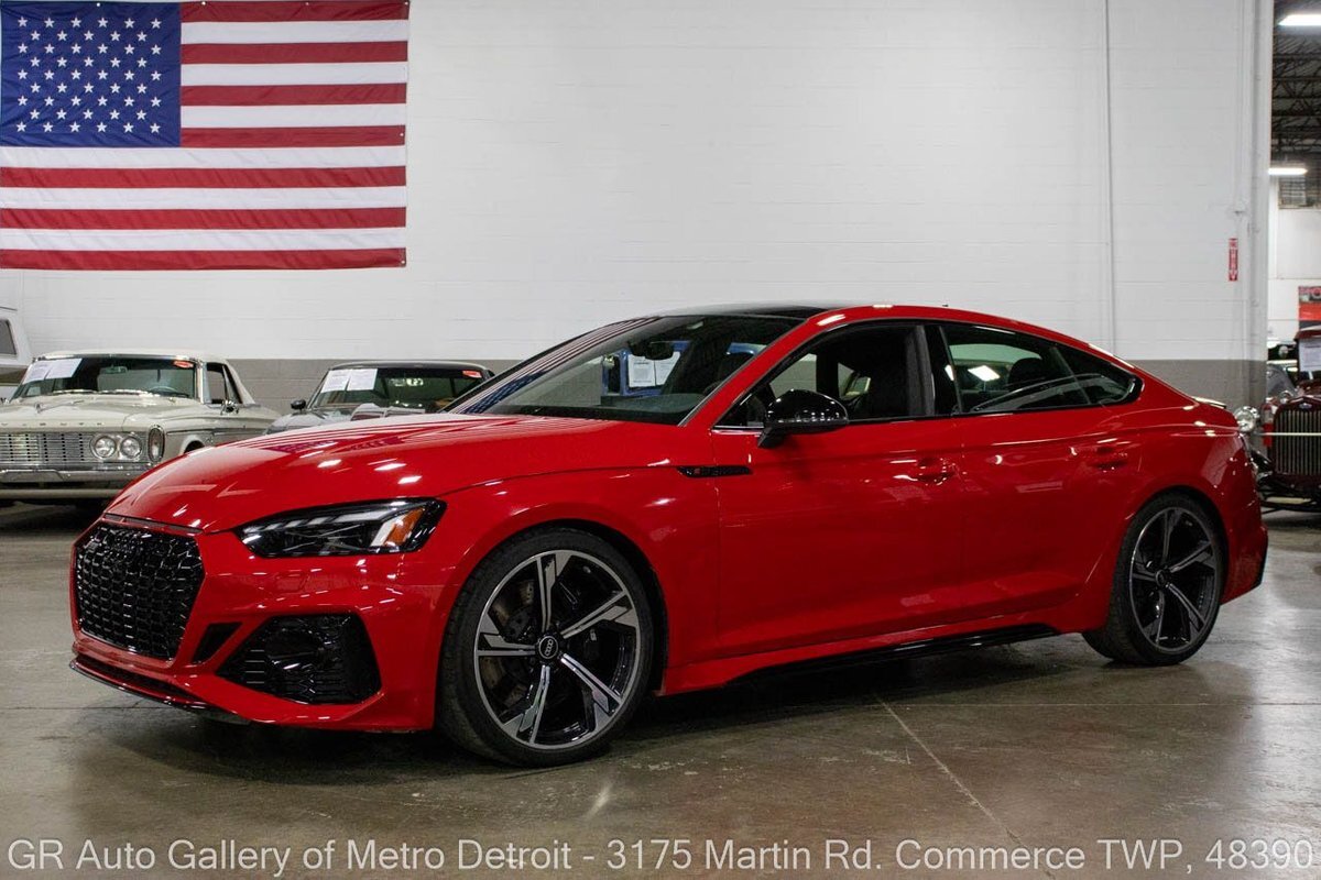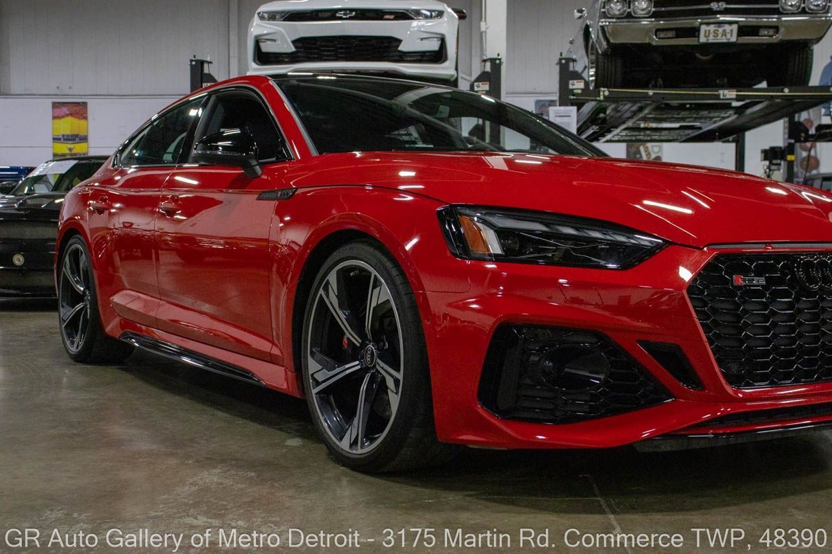 GR Auto Gallery is thrilled to present this 2022 Audi RS 5 Sportback for your consideration. Dressed in an eye-catching Tango Red Metallic with a sleek black and red interior, this vehicle boasts a powerful 2.9-liter twin-turbo V6 engine that delivers an exhilarating 444 horsepower. The performance is expertly managed by an eight-speed Tiptronic automatic transmission, ensuring a smooth and responsive driving experience. With only 8,935 miles on the clock, this one-owner vehicle has been meticulously maintained and comes packed with an impressive array of features, including RS sport suspension, a Quattro sport rear differential, an Audi virtual cockpit, power sunroof that tilts and slides, power tailgate, RS carbon inlays, S sport front seats with power side bolsters and massage function, three-zone climate control, heated seats throughout, top view camera system, active lane assist, Audi navigation, and much more. Drive this one out of our showroom or have us assist with shipping it to you anywhere in the United States! Don't hesitate to call us with any questions or for more information.