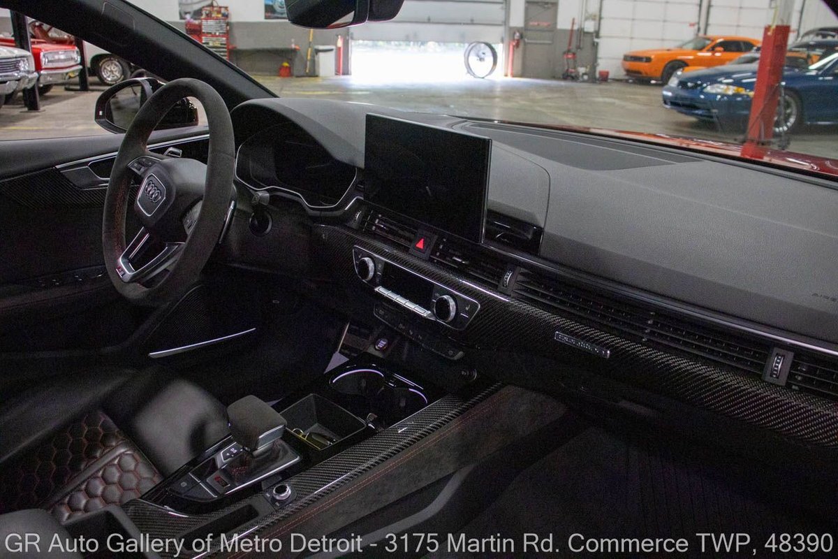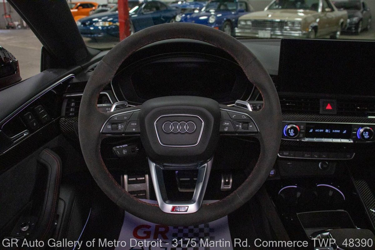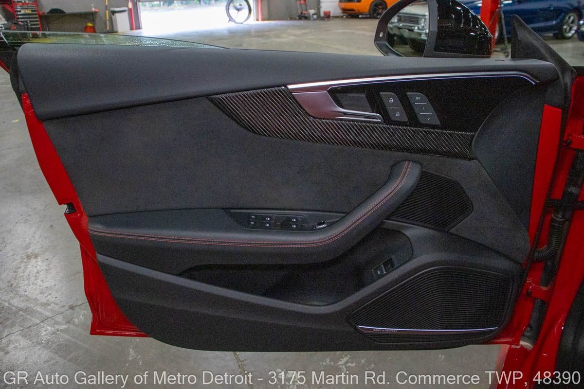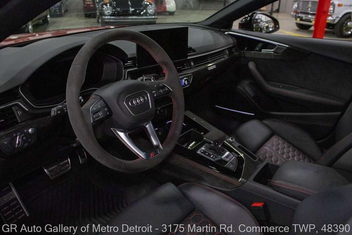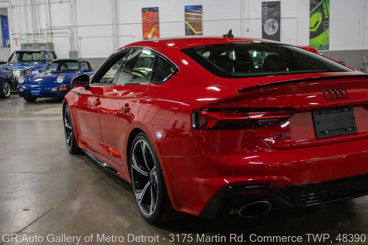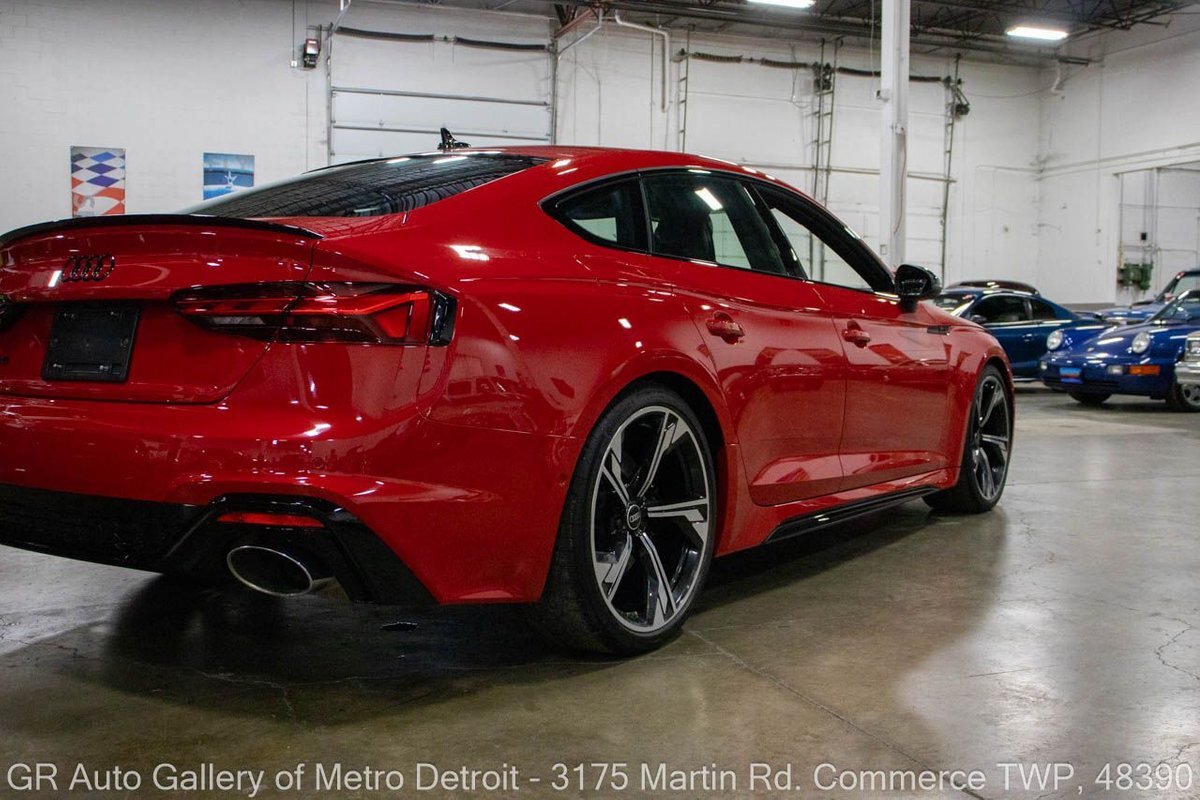 GR Auto Gallery is thrilled to present this 2022 Audi RS 5 Sportback for your consideration. Dressed in an eye-catching Tango Red Metallic with a sleek black and red interior, this vehicle boasts a powerful 2.9-liter twin-turbo V6 engine that delivers an exhilarating 444 horsepower. The performance is expertly managed by an eight-speed Tiptronic automatic transmission, ensuring a smooth and responsive driving experience. With only 8,935 miles on the clock, this one-owner vehicle has been meticulously maintained and comes packed with an impressive array of features, including RS sport suspension, a Quattro sport rear differential, an Audi virtual cockpit, power sunroof that tilts and slides, power tailgate, RS carbon inlays, S sport front seats with power side bolsters and massage function, three-zone climate control, heated seats throughout, top view camera system, active lane assist, Audi navigation, and much more. Drive this one out of our showroom or have us assist with shipping it to you anywhere in the United States! Don't hesitate to call us with any questions or for more information.