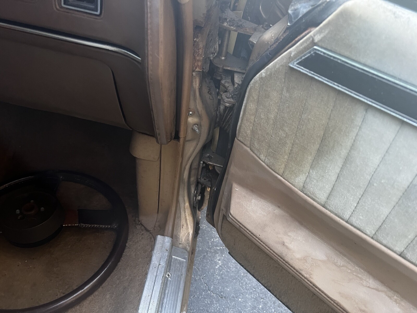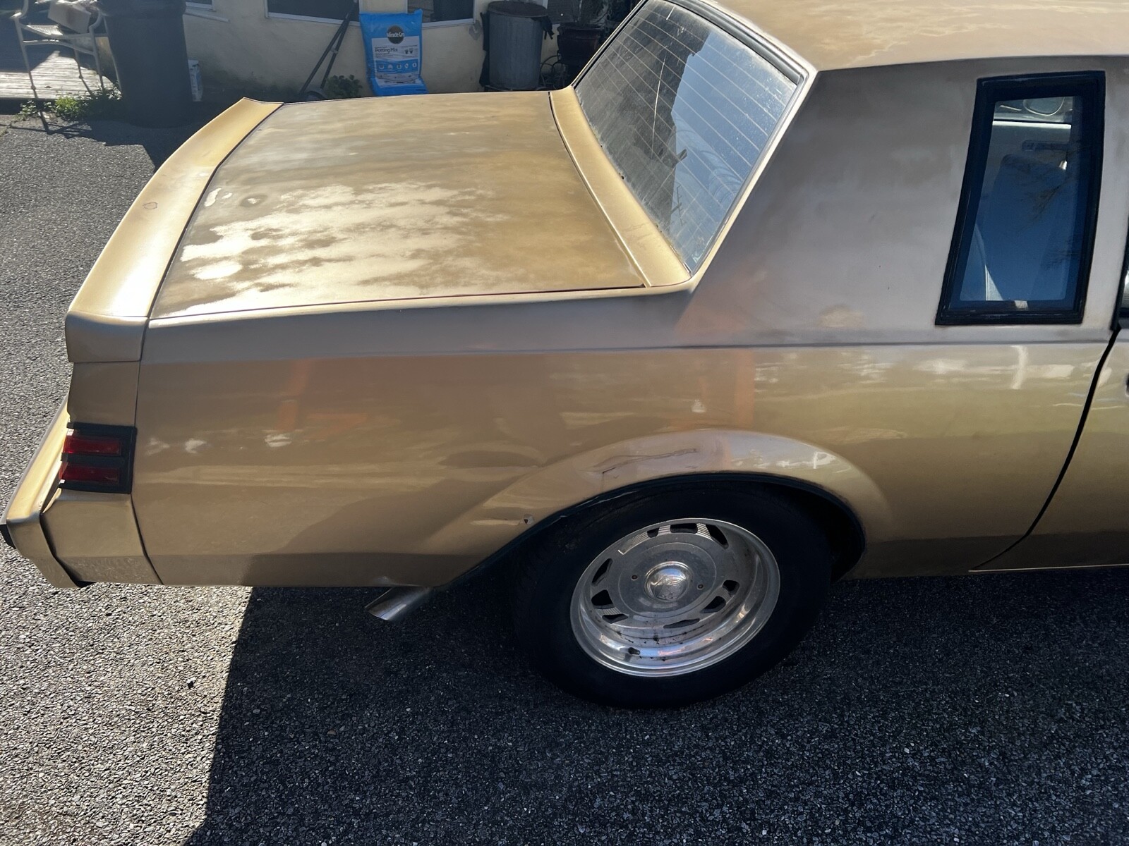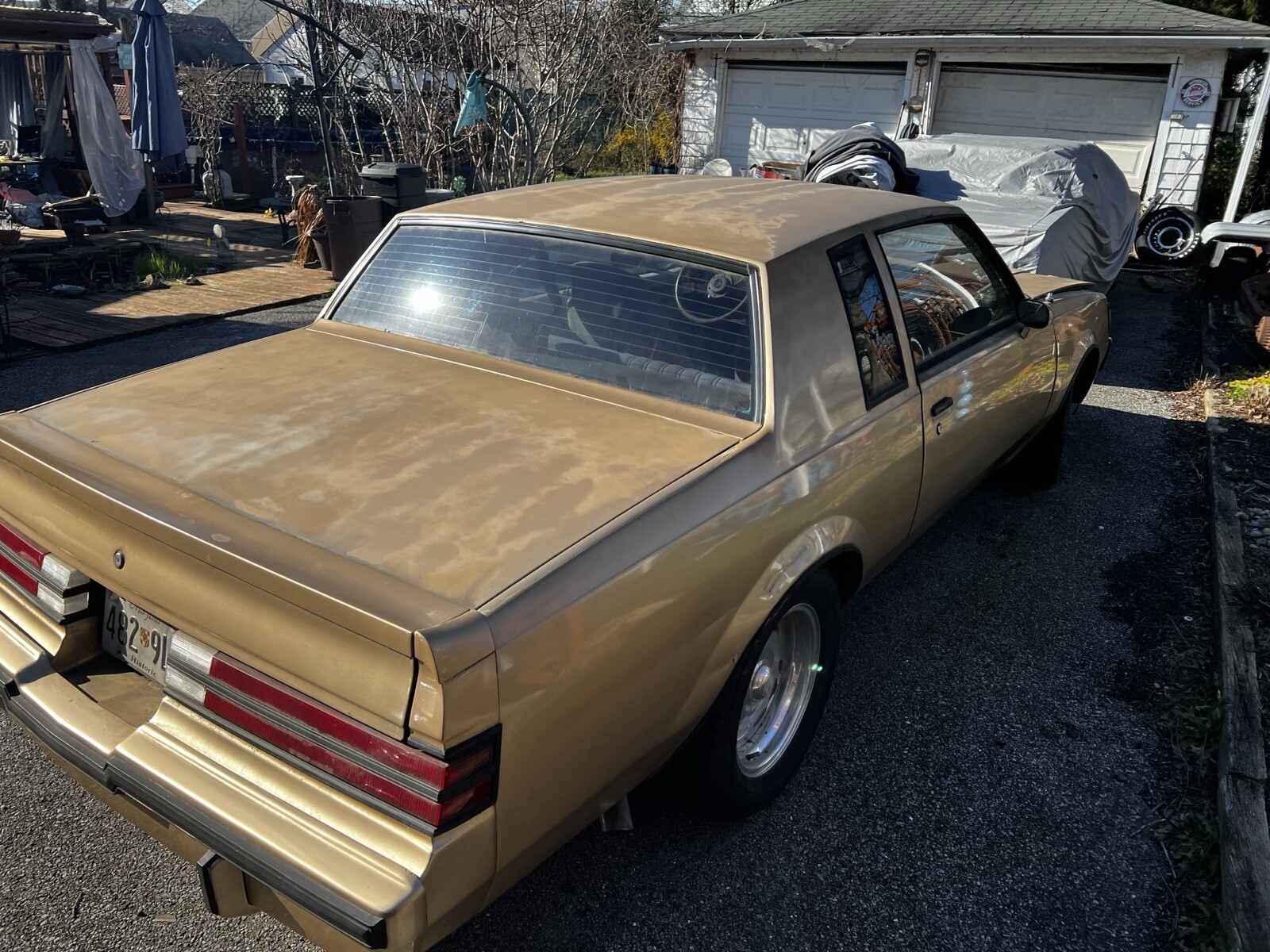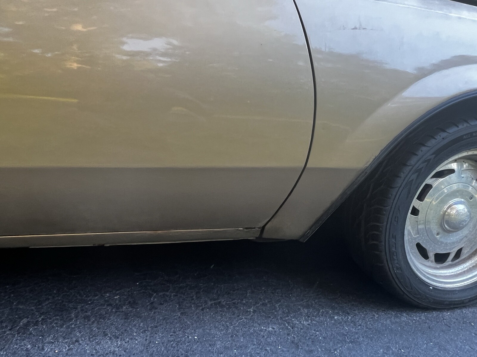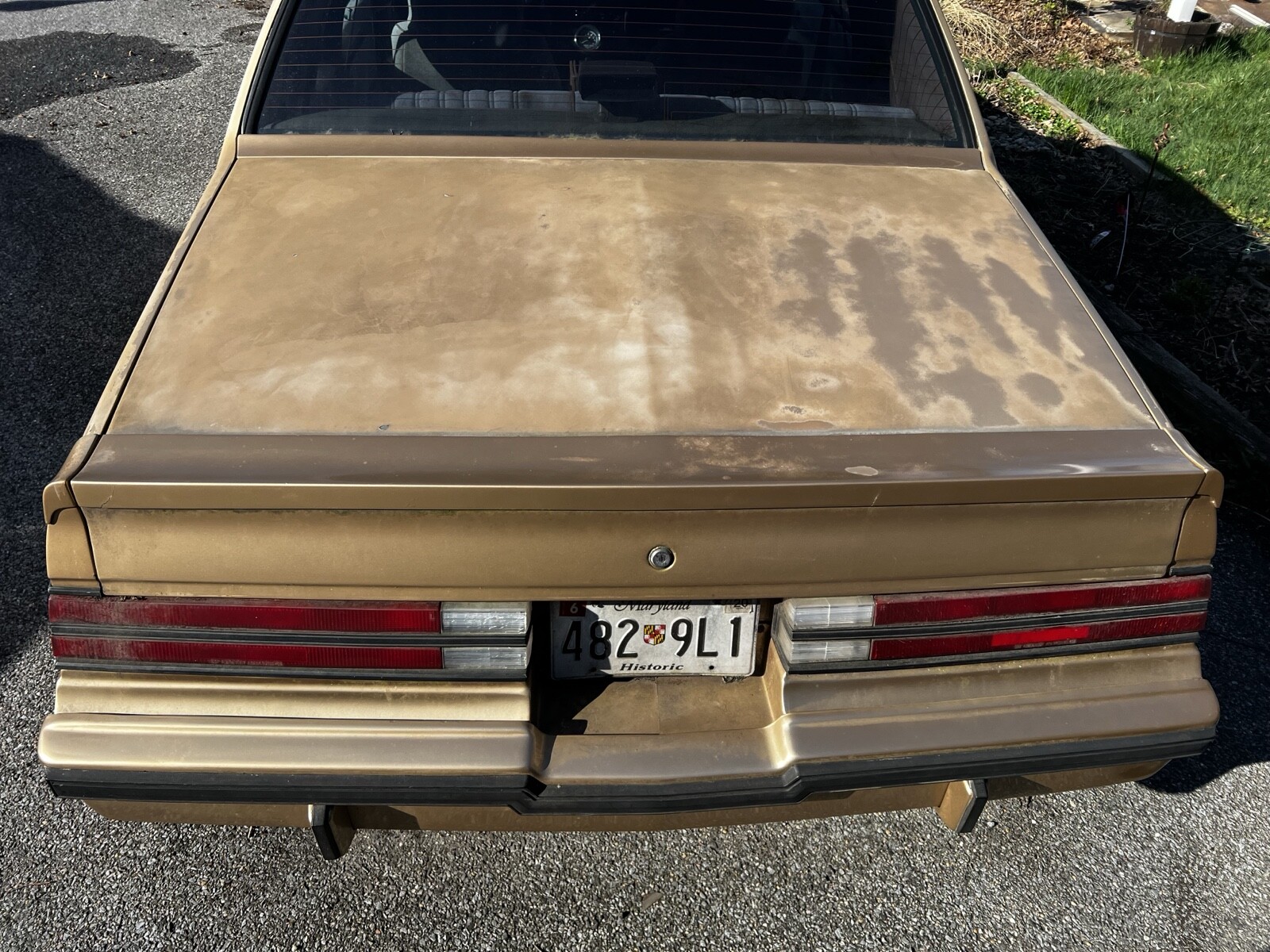 This is a one owner, “T” sport package, NON-turbo, G-body purchased by my Father new with a 307, velour interior, bench seat and digital dash. He restored it as a T-Type replacing the flat hood with the bubble hood, replaced the 307 with a worked 400 small block (78 trans am), added headers with full exhaust, and swapped the interior out with the bucket seats and center console as pictured. The car sat for several years under a cover so the paint suffered. The headliner is falling down, the dash is cracked, the digital dash doesn’t light up and the steering wheel spokes are rusted. I also noticed softness in the driver floor pan when I changed the oil. I pulled a plug and scoped the cylinder (pictured) before starting. The car was started on an external fuel supply as the tank has old gas in it. I drove the car around my neighborhood on the external fuel supply but wouldn’t suggest driving it any distance. My Father passed last June and I’m listing this to help my Mother sell the car. All the information provided is to the best of my knowledge. I believe the current engine has less than 10,000 miles since being rebuilt. The odometer shows 64,105 and there’s another 100k on the body. The car is currently located in Millsboro DE for pick up. Thank you.Seller's Notes